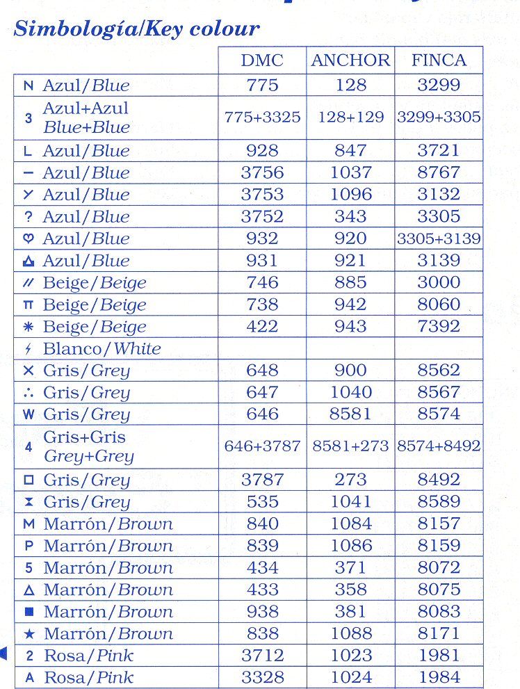 Посмотрела для интереса - в совсем первых номерах Cuadros-а ключ дан еще в мулине Coats (плюс ДМС и Финка), а вот Анкора нет... хотя Coats как-то вроде с Анкором чем-то связано... не помню точно... но номера там свои.