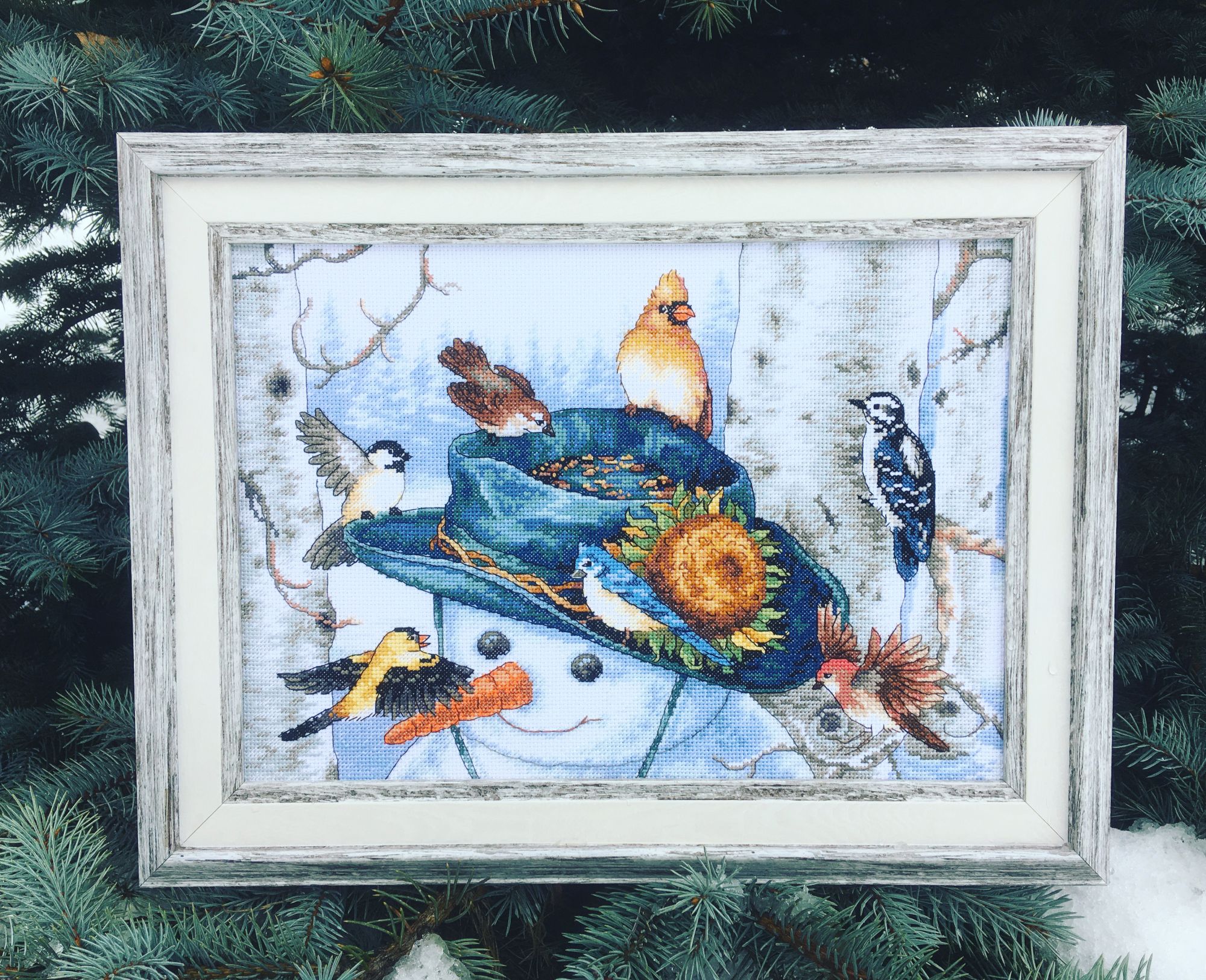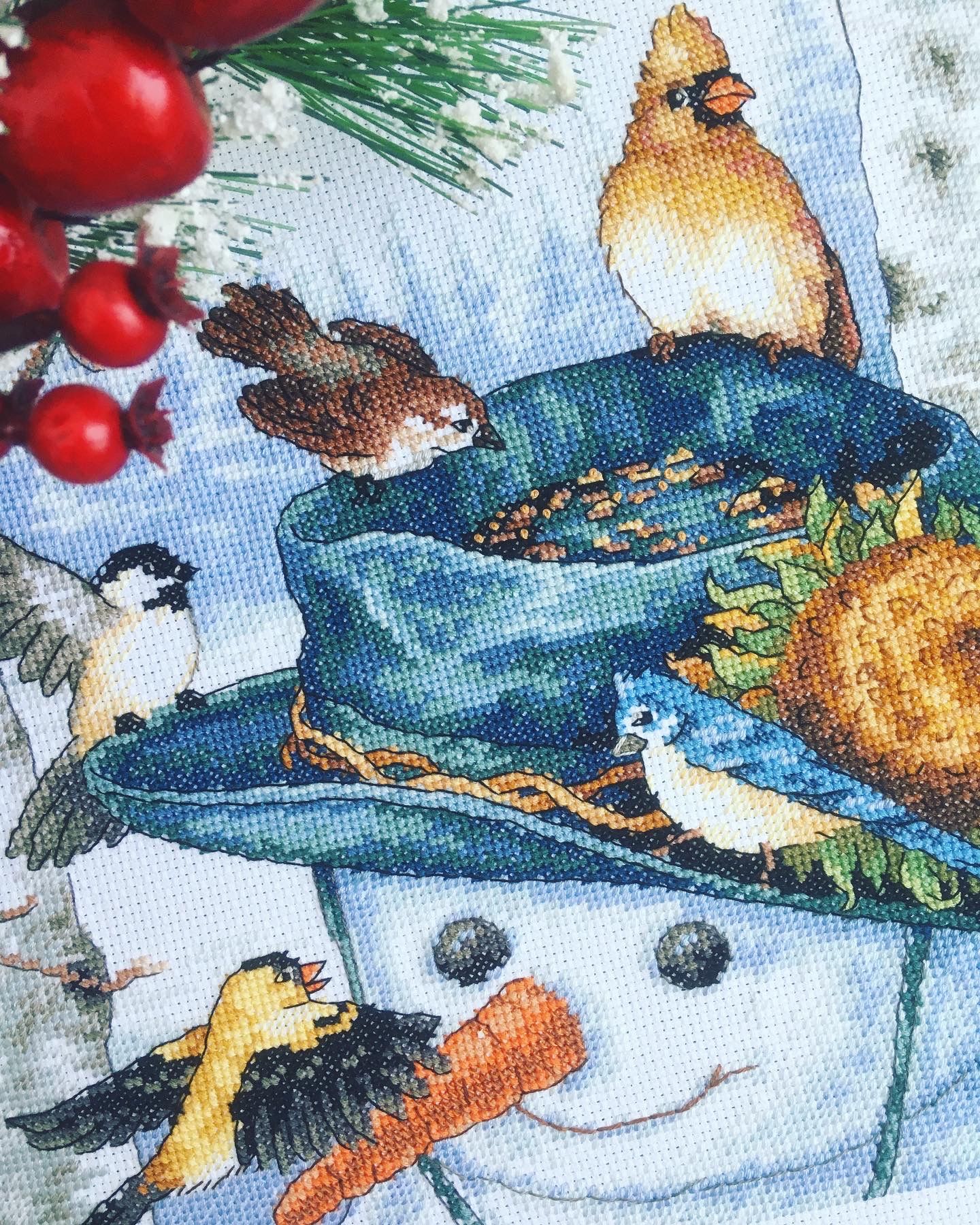 28 января 2020 Всем привет) Покажу сегодня процессы свои) Снеговик. Закрыла третий уголок и появилась шестая птичка. хочется поскорее уже закончить) Сова. Тут нежножко она подросла, вышиваю на работе, из за этого медленнее растёт, но тоже дизайн легкий) много фона полукрестом) Вот так подросли процессы) irinka-mandarinka, Океан, Гало4ка и 12 других сказали спасибо Поделиться сообщением Ссылка на сообщение