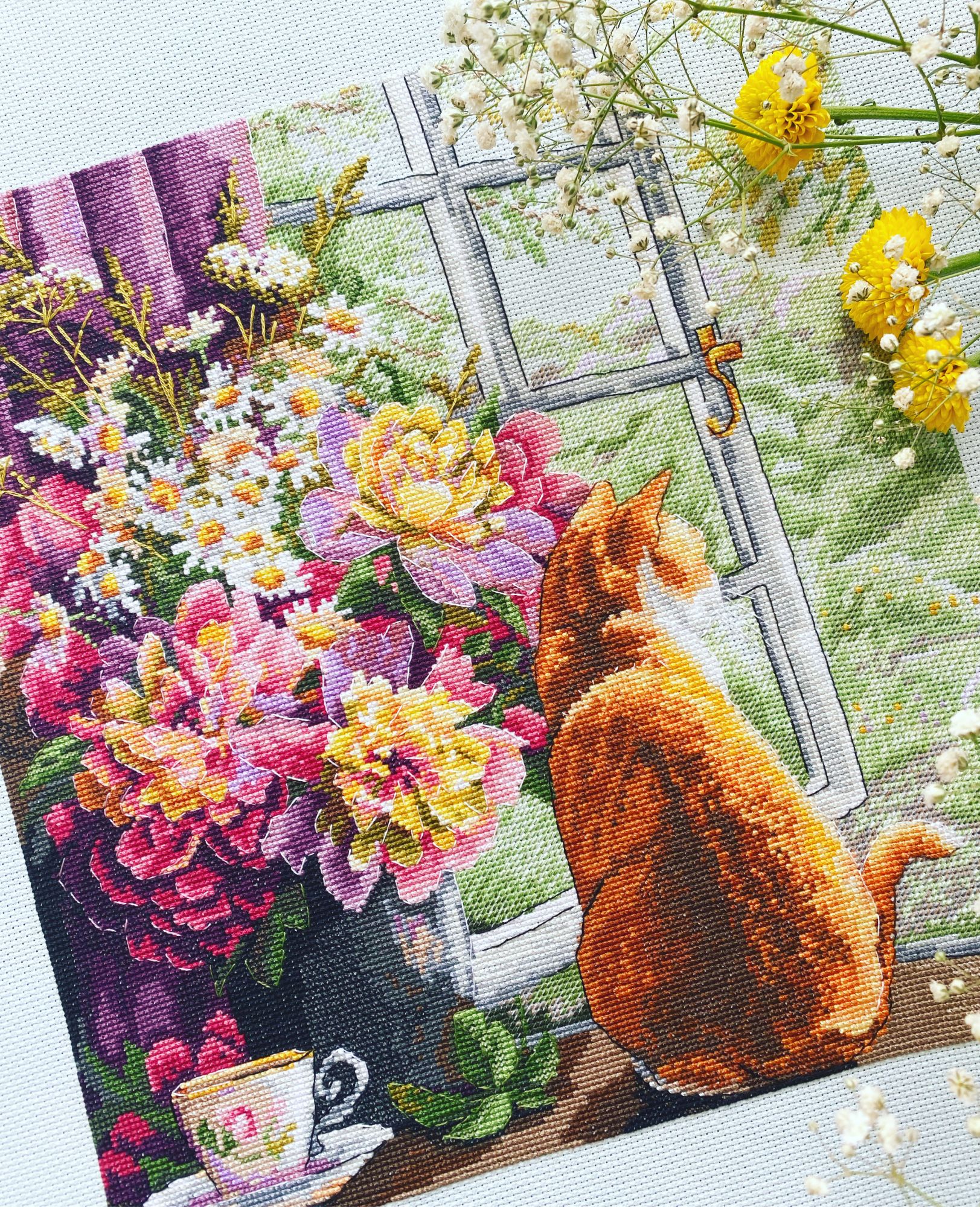 15 октября 2022 Перебирая вышитые работы в рулоне, я наткнулась на этого красавчика и вспомнила что фото финишные тогда сделала по быстрому и без подробностей. Буду закрывать «гештальт» ну и напомню вам об этом котике, это был мой первый набор от @merejkatm Это рыжее чудо и сам букет до сих пор поражают своей красотой и яркими красками zuzichek, Гало4ка, Tanelia и 6 других сказали спасибо Поделиться сообщением Ссылка на сообщение