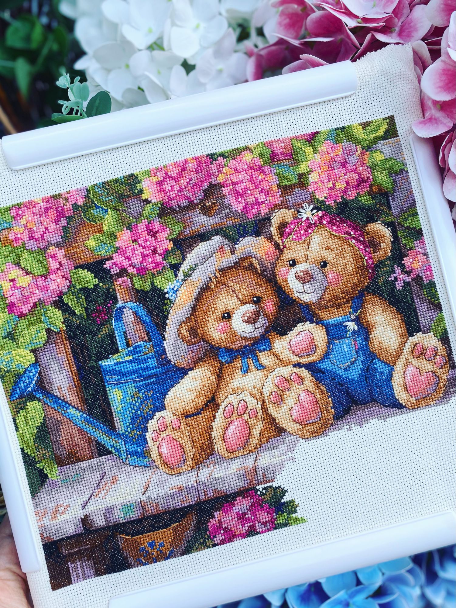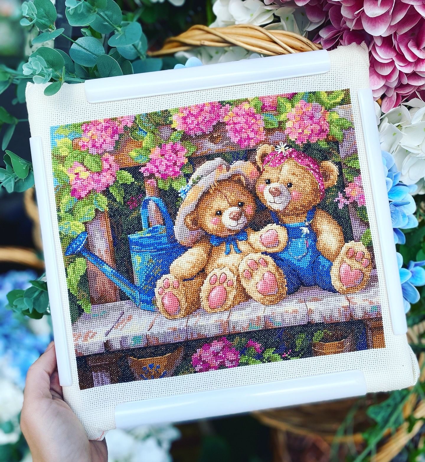 17 июня Мои садовые товарищи плавно подбираются к финишу, осталось вышить снизу скамейку. Любуюсь ими, даже не хочется расставаться В нашем городе торговые компании участвуют в конкурсе по оформлению витрин и видели бы вы мою реакцию когда я увидела корзины с гортензиями, это же идеальный фон для моего процесса подумала я и побежала фоткать. Зрителей было много, а мне было без разницы, главное сделать красивое фото, согласны? relax_cross_stitch, MolliE, Гало4ка и 4 других сказали спасибо Поделиться сообщением Ссылка на сообщение