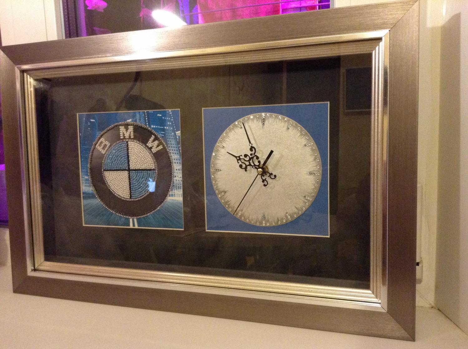 22 февраля 2015 Женя, поздравляю с оформлением чашки! Только вот я не вижу косяков никаких... Задумка и воплощение с картиной БМВ, просто класс! А циферблат где взяла? Часы разобрала подходящие? Спасибо Наталечек они мне зажевали верхние крестики , причем не ровно, на фото не видно, а в живую очень заметно по поводу BMW: все думала как же сделать, чтобы получилось необычно! И вот пришла мне мысль сделать часы! Для начала попросила в багетке вырезать два окна, поехала в магазин купила часовой механизм, стрелки, и цифры. Цифры хотела покрасить в серебро, купила краски серебряные, но как не старалась краска ложилась отвратительно, сидела и думала как же поступить) и пришла в голову идея купить стразы сваровски, и ими выложить циферблат (кстати выкладывала я их три часа) и ездила за ними четыре раза! Затем когда я приложила стрелки они оказались совсем не по размеру( я отрезала , но получилось не ровно, поехала в магазин часов, там купила стрелки и попросила подпилить для нужного размера! А когда ездила четвертый раз за стразами, нашла стрелки красивее и купила их, подпилила сама пилкой для ногтей))) когда приклеила стразы выяснилось что где то заехала за края!!!! И о Боже!!!! Клей то не оттирается!!!! Думала это конец!!! Вырезать заново окна в багетке, клеить стразы !!!(( жесть! Но тут я вспомнила , что моя подруга ведь хорошо рисует! Еле дождалась утра! Позвонила Лесечке, и попросила помочь! Так и появился этот рисунок вокруг циферблата! Ну а дальше все составляющие отдала на оформление, и вот получилось такие часы!!! Надеюсь моему братишке понравится) и кстати для меня была целая проблема, сделать правильный циферблат! Никак не получались одинаковые расстояния при пересечении прямых(( обратилась к папе, и он подсказал, как сделать циферблат с помощью циркуля! А то, я бы так и чертила эти прямые до посинения))))) вот и вся история появления этих часиков) Поделиться сообщением Ссылка на сообщение