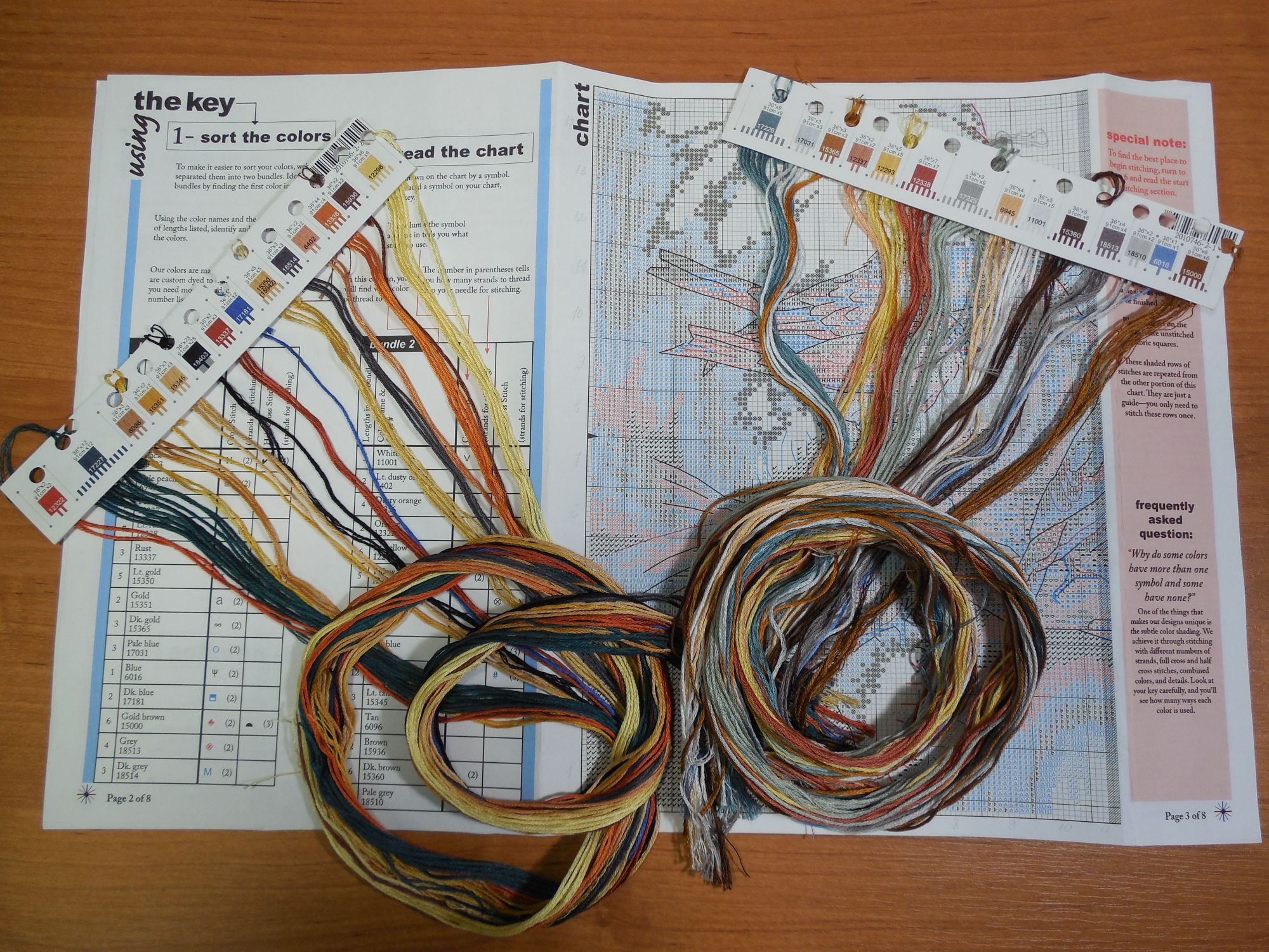 2 октября 2018 Доброго вечерочка всем Вышиваем набор Дименшенс "В его руках". 28 цветов, схема цветная символьная (мелкие значки, что не очень удобно). Схема и ключ на одном листе и это тоже неудобно, пришлось сделать цветную копию. Есть крест (в 1 и 2 нити), полукрест (в 1,2,3,4 нити), бэкстич, коучинг и французики Зашивается не вся канва, есть пустые участочки. Канва, кстати, 18 каунта, цвет ивори. Начало - левый нижний угол - хвостик желтой птички и часть рукава. Фотограф из меня никудышный: в реале всё шелковистое, переливается, на фото не очень Fascinata, Tata44, AngelN и 10 других сказали спасибо Поделиться сообщением Ссылка на сообщение