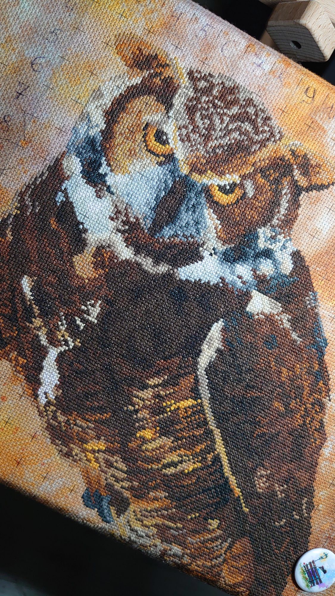 28 августа 2022 А я вышивала полярную сову. Выбор пал на неё из-за любви к пернатому персонажу Гарри Поттера Букле. В честь героически погибшей птицы подписалась на серо-белый процесс, хотя вообще люблю яркие цвета. Схема мне очень понравилась, продумана до мелочей. Не понравился крупный каунт и молочный цвет канвы, с которым сова слилась. Мечтаю перевышивать её на равномерке серо-бежевого или серо-коричневого цвета. Вот это будет огонь. Видела ещё у девочек вариант отшива на чёрной канве. Интересно, но мрачновато. WhiteMoth, shustri4ka, kreolka и 17 других сказали спасибо Поделиться сообщением Ссылка на сообщение