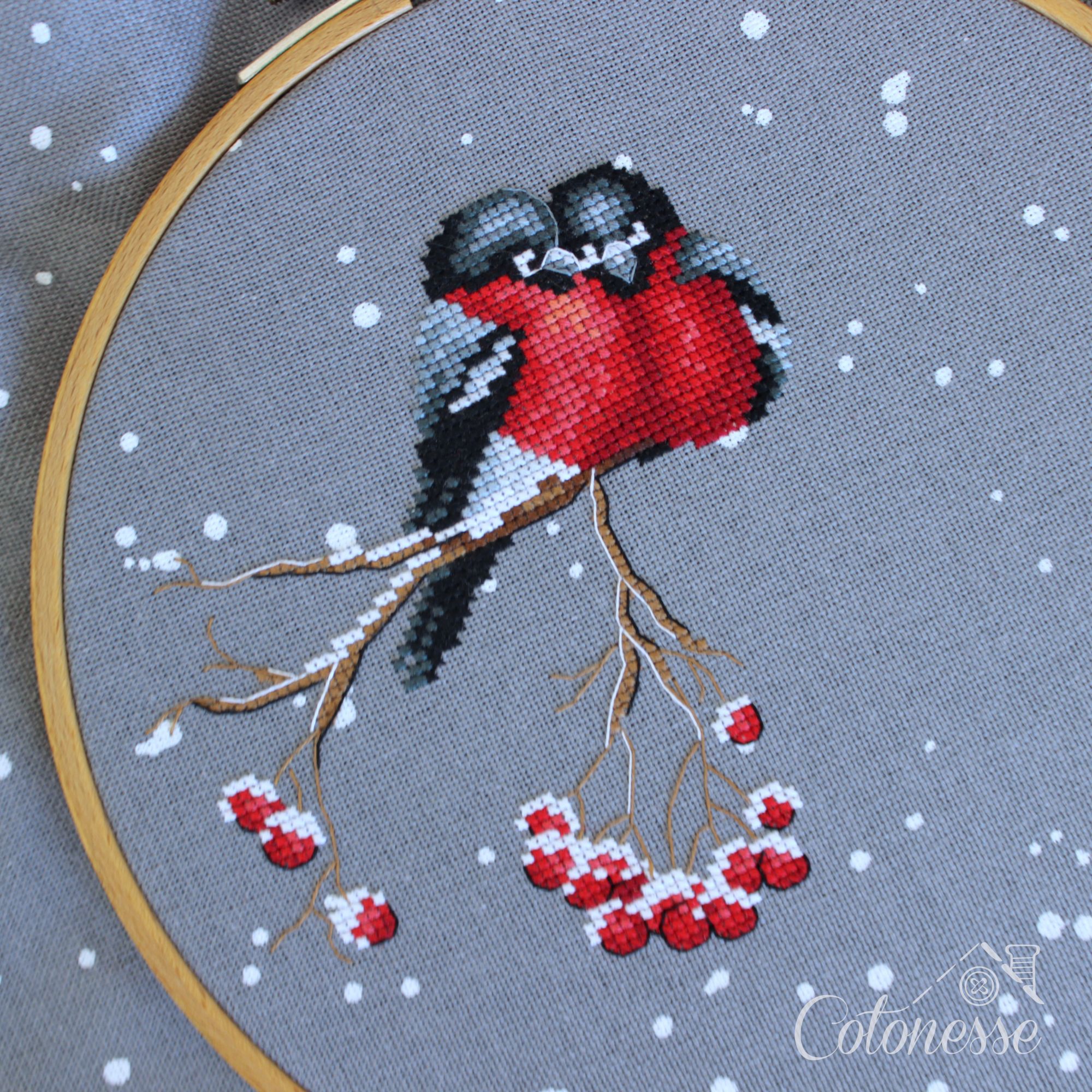 7 января 2023 Принесу-ка сюда своих птичек) Не в гаечку Зимняя малютка от Кларт. Набор подарила одна хорошая знакомая. Мне сразу захотелось заменить там основу на мурано с пятнышками. Посмотрела галерею, увидела, что не первая до этого додумалась и убедилась, что идея хорошая) Этой мой первый набор от Кларт. Ниточки Гамма проблем не доставляли, инструкция четкая и удобная. Не знаю, как с большими наборами, а от маленького точно хорошие впечатления) "Вместе теплее" Кларт 8-297 18х18, аида 16 (заменена не серый мурано сплэш) Замена ткани мне тут очень нравится. Родная с коричневым оттенком, а тут чистый серый и он лучше гармонирует с ниточками в наборе. И вместо одинаковых одиночных крестиков, изображающих снег, получились более убедительные снежинки разного размера) Оформить хочу в шкатулочку. Но пока не придумала, в какую именно, так что лежит ждёт) Sobol, lunamitara, soln33 и 26 других сказали спасибо Поделиться сообщением Ссылка на сообщение