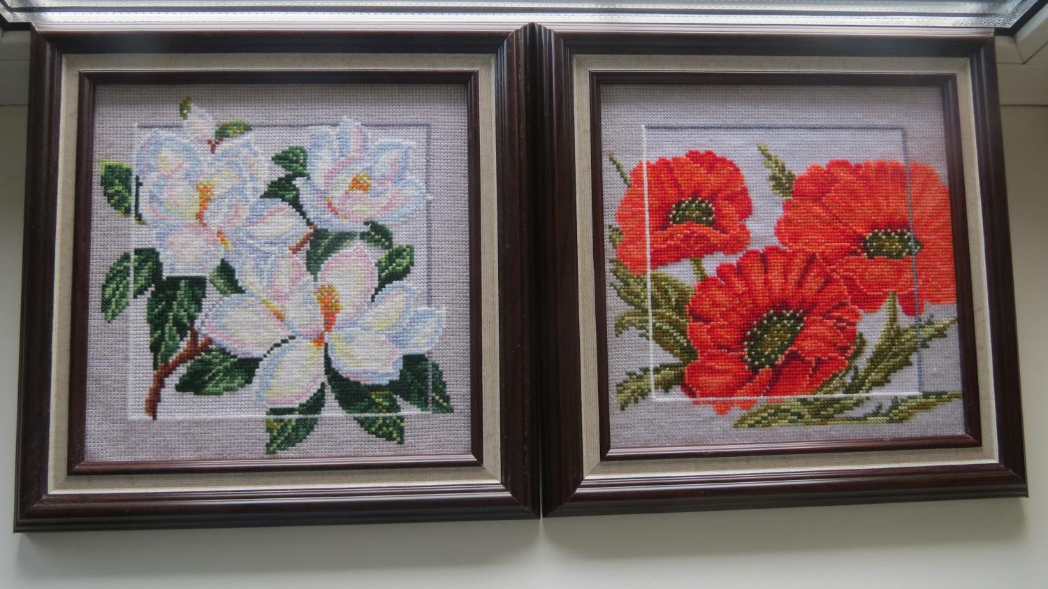 4 октября 2015 Ура! Всего неделя прошла с моего последнего отчета и я пришла! Правда вышивальная часть моего отчета будет почти целиком из работ моей мамы, но, думаю, что это не так страшно. Главное - есть, что показать! Во-первых, как обещала, я сшила тюльпановую подушку! Довольна очень! Она теперь у меня любимая Во-вторых, оформились мамины вышитые работы. Маки и Магнолия от "Сделай своими руками": Багет мы с мастером вытащили чуть ли не из-под стола, она все переживала, что он совсем непопулярный, мол, хорошо, что одна палка есть, а то совсем уж собиралась чуть ли не выбрасывать. А, когда я пришла забирать работы, она мне рассказала, что при виде этих картинок сразу несколько человек запросили именно этот багет и ей пришлось его срочно заказывать. По моему убеждению, эти незамысловатые вышивки в оформлении заиграли всеми красками. А эту работу я сама оформила в готовую раму (это исключительно мамино желание, она "оченно уважает" оформление побюджетнее): И в-третьих, мой ожидаемый выход "из сумрака". Обрадовавшись завершению одной работы, я, конечно, не удержалась и начала сразу две (даешь борьбу с размножением!). В руку прыгнули два крестиково-бисерных наборчика. Итак, представляю: Вторая чашечка от Милл Хилл. Напомню, что вышиваю по остаточкам от оригинального набора, которые мне подарила Яна (belyasik), за что ей очередное большое спасибо! Ниточки СХС, бисер МиллХилл, перфорированная бумага. То есть почти все "по-настоящему". Второй процесс надкусан на один зубок, поэтому показываю только подготовительный этап: Я уже упоминала как-то о задумке вышить именные обереги родителям ко дню свадьбы (23 декабря). Вот начала с Владимира. В перспективе еще будет Наталья. На этом вышивально-показательную часть разрешите считать закрытой. veravas, Человек, Nat717 и 21 других сказали спасибо Поделиться сообщением Ссылка на сообщение