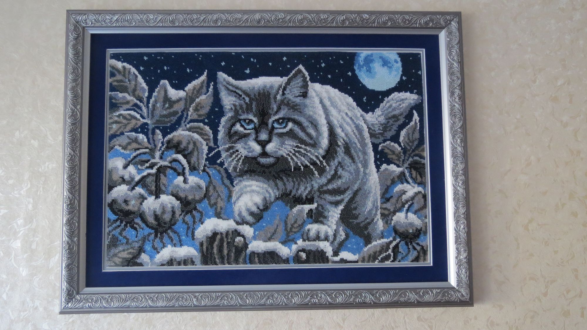 2 января 2016 Итак, КОТ! Представляю вашему вниманию оформленного красавца. Оформлением не просто довольна, а очарована, восхищена, обмираю от восторга. Ну, чего там говорить - судите сами! Паспарту, как я и хотела, бархатное. Кот вышагивает из глубины ночи. Багет стального цвета - прямой отсыл к серой переливающейся кошачьей шерстке. Смотрится все это не как картина в оформлении, а как единое целое. ivk_, Selinta, bukina88 и 27 других сказали спасибо Поделиться сообщением Ссылка на сообщение
