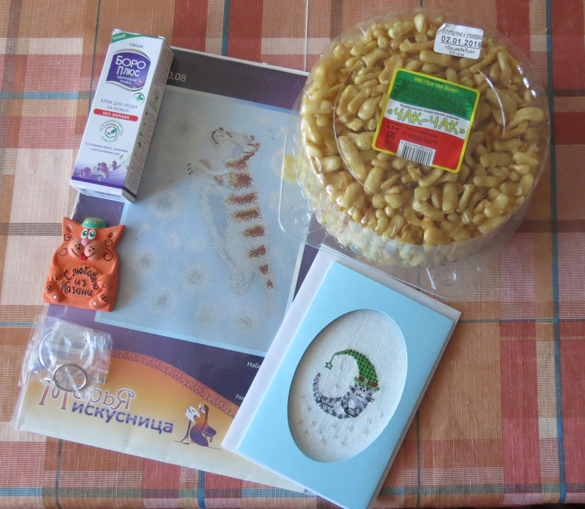 27 января 2016 А я готова поделиться с вами радостью от полученных рукодельных и не только подарочков. Первой моей огромной радостью стала посылочка, полученная от обожаемой МарСанны! Вот она, моя прелесть! Чудная открытка с вышитым котом! Он такой милый! А это рыжее чудо, как мне сказала МарСанна, зовется Кот Казанский. Он поселился на холодильнике, и мы с ним перемигиваемся, когда я нахожусь на кухне Трогательный наборчик от МИ навел меня на мысль о нежнейшей детской подушечке, в кружавчиках. Учитывая, что сразу несколько моих друзей-приятелей сейчас "в ожидании", думаю, что в закромах он не залежится. А какой вкусный "чак-чак"! Вчера мы с друзьями тааак душевно попили чай, он затмил даже мой пирог с яблоками, который всегда уходил "на ура!" МарСанночка, я очередной раз благодарю тебя за прекрасное настроение и ощущения счастья! Еще я получила рукодельный подарочек от мамы, которая вышила для меня часы с Домовенком. Тем самым положив начало моей Домовячьей серии для кухни (следующими будут "Венок изобилия" и "Помощник по хозяйству"). Вот вышивка поближе (бэк мой ): вот и готовые часики: На этом пока все . Вышивальный отчет будет не раньше следующей недели, ибо времени на вышивку катастрофически не хватает... А я таки шью Планетариусопол meduzza, Евгения Чичкова, Lusha73 и 19 других сказали спасибо Поделиться сообщением Ссылка на сообщение