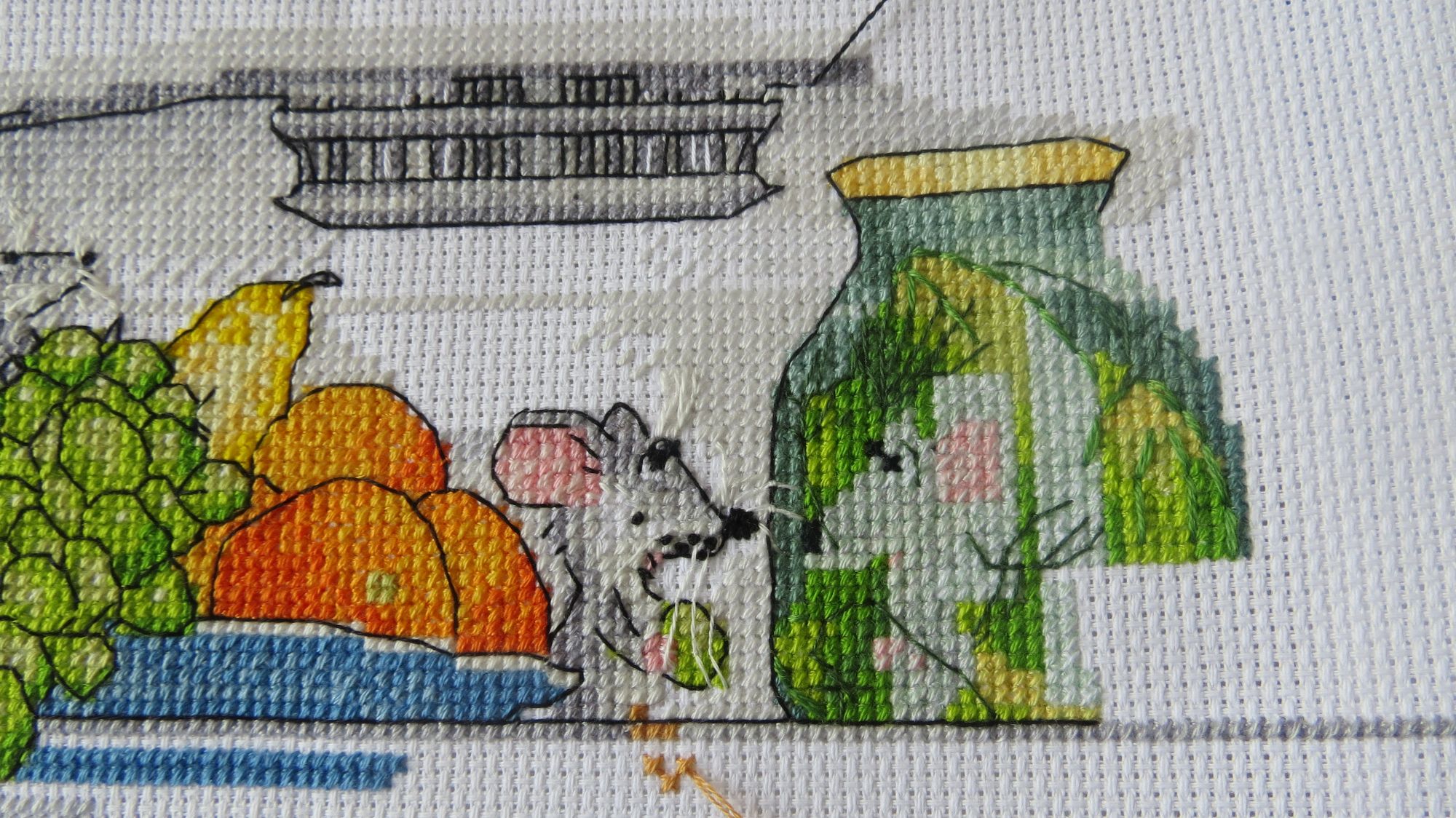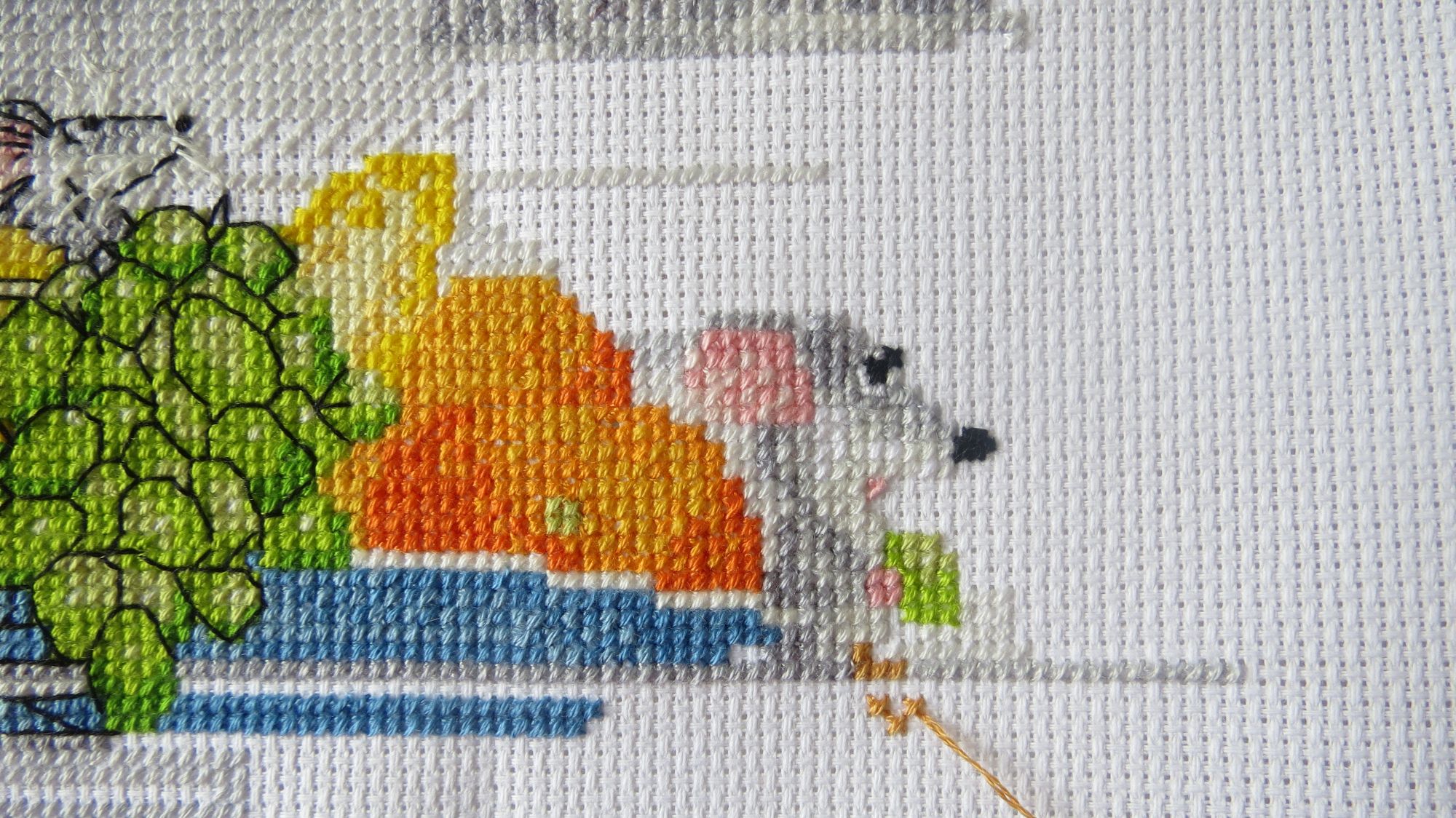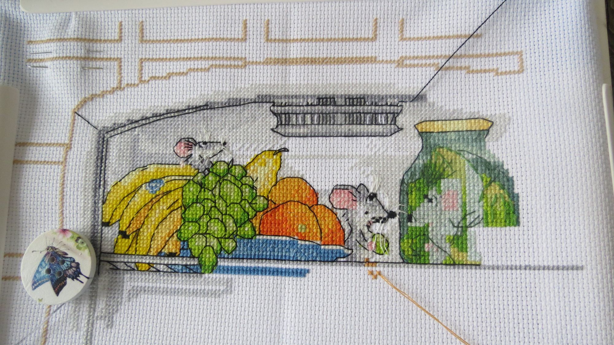 16 февраля 2016 Ну вот, я и дозрела до отчета. Коли уж все ждут Покровку - начну с нее родимой. Сначала проходные моменты. По-прежнему мощу мостовую. Появившейся слева луже - обрадовалась как родной, какое-никакое, а разнообразие! Вот, что имеем на текущий момент, в общем масштабе бедствия: Специально для Светланки (Krelina) макросьемка чудесатых крестиков. Надо признаться, что так я и не оценила их великой миссии. По-моему, легко могли обойтись родными и привычными блендами. Но шью честно, все как положено по схеме! Второй мой процесс, от которого сегодня насилу себя оторвала в пользу Покровки - Кот (хотя пока только Мыши) в холодильнике. У меня появилась полная тарелка восхитительно ярких фруктов и еще одна Мыша, с очаровательным отражением в банке огурцов. Не удержалась - нафотографировала от души: Если обратите внимание, под лапой у мыши несколько рыжих крестиков. Это мааааленький кусочек кошачьего уха! Рабочие ежики подрастают, если можно так сказать о вышивке с неполной зашивкой, то - появился верхний левый угол: Признаюсь в стрррашном (но пока не покажу). Насмотревшись у МарСанны бисера,. вытащила я таки свою Кошку Грету (а в миру Леди Мяу) и нашила уже в ней два ряда бисеринок . Когда случится пошить хотя бы до пяти рядков - покажу! Сегодня у меня случилась приятная приятность - я получила посылочку с остатками от МиллХиллок о Оленьки (Хельга). Конечно, не обошлось без приятнейших подарочков - магнитика в коллекцию и любимейшего блокнотика от В. Кирдий. Оля, большое-большое спасибо за доставленную радость! И в заключение, за окном -20, а у меня продолжается весна! Анютка-незабудка, Хозяйка смешных зверей, Пикусёнок и 23 других сказали спасибо Поделиться сообщением Ссылка на сообщение