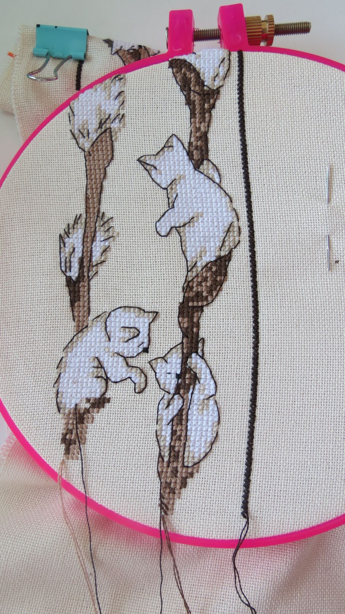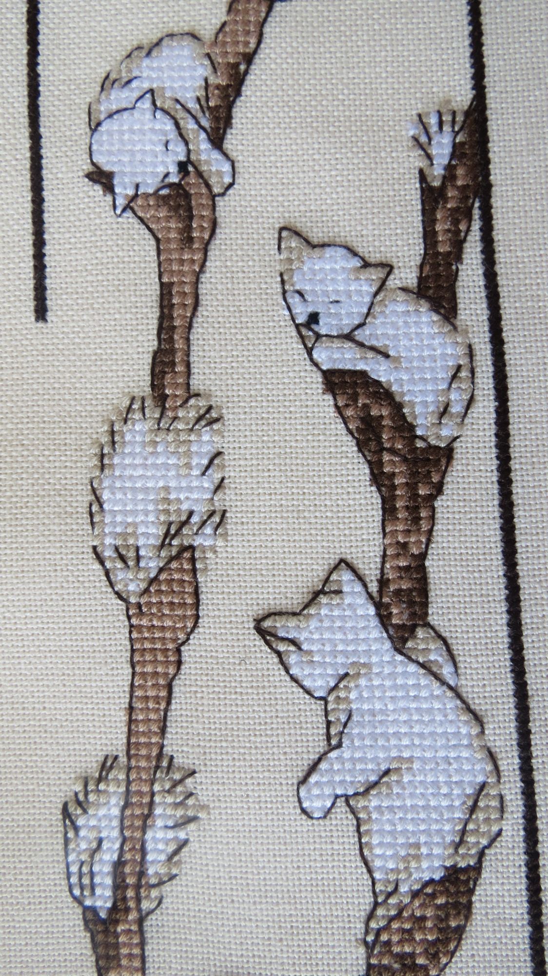 14 марта 2016 Разбудив свою сладко спящую совесть, я пришла! Однако... Почти три недели я много работала, немного отдыхала и праздновала, активно боролась с невышиванцем и совсем чуть-чуть вышивала. Для начала покажу свое лекарственное средство, которое загнало невышиванца в далекий угол. Когда я очередной раз окинула взором свои необъятные полотна процессы, мне стало очевидно, что совершенно необходимо вышить что-то быстрое, трогательно-пушистое и непременно весеннее. Итак, знакомьтесь! Вербные котики от Татьяны Марчуковой: Чудеса преображения: легким движением руки шорты вербы превращаются... И промежуточные фото для гаечки: Что с ними делать дальше, я, честно говоря. не знаю. Размерчик довольно некультяпистый: для рамки они маловаты, а для открытки великоваты. Буду думать... Самое главное, что они успешно выполнили возложенную на них задачу - прогнали лентяя-невышиванца прочь. Продвижения по Покровке, на первый взгляд, всего-ничего, а вот в крестиках - вполне убедительно, порядка 800 крестиков. Зато я вплотную приблизилась к лошадиным копыткам! Есть искушение не двигаться рядами, а пошить лошадку. Наверное, поддамся искушению! Добавился десяток рядочков и у Кошки Греты: Поймала хороший дневной свет, поэтому покажу немного макриков: Ежикам на работе тоже внимания было уделено гораздо меньше, чем хотелось бы. Но все же третий угол готов! Боюсь загадывать, но очень хочется верить, что следующий показ будет уже финальным. На 8-е марта я получила чудеснейший подарок от мамы. Наборчик от Алисы с розами и васильками мне подарила в прошлом году на встрече Женечка (Lapyshok). Мама сразу положила на него глаз и в качестве компромиссного варианта было решено, что она вышьет его для меня. А к празднику родители еще и оформили вышивку: И теперь мою стенку украшает очаровательная цветочная компания: Много места под картинами оставлено не случайно - в перспективе пустота будет заполнена цветочными композициями, которые мне уже не терпится вышить. И в завершение - немного фото нашей "зимней весны". Наш, уже ставший любимым, каток украсили снежные скульптуры, возле которых нам захотелось запечатлеться: ирония, Lusha73, Евгения Чичкова и 30 других сказали спасибо Поделиться сообщением Ссылка на сообщение