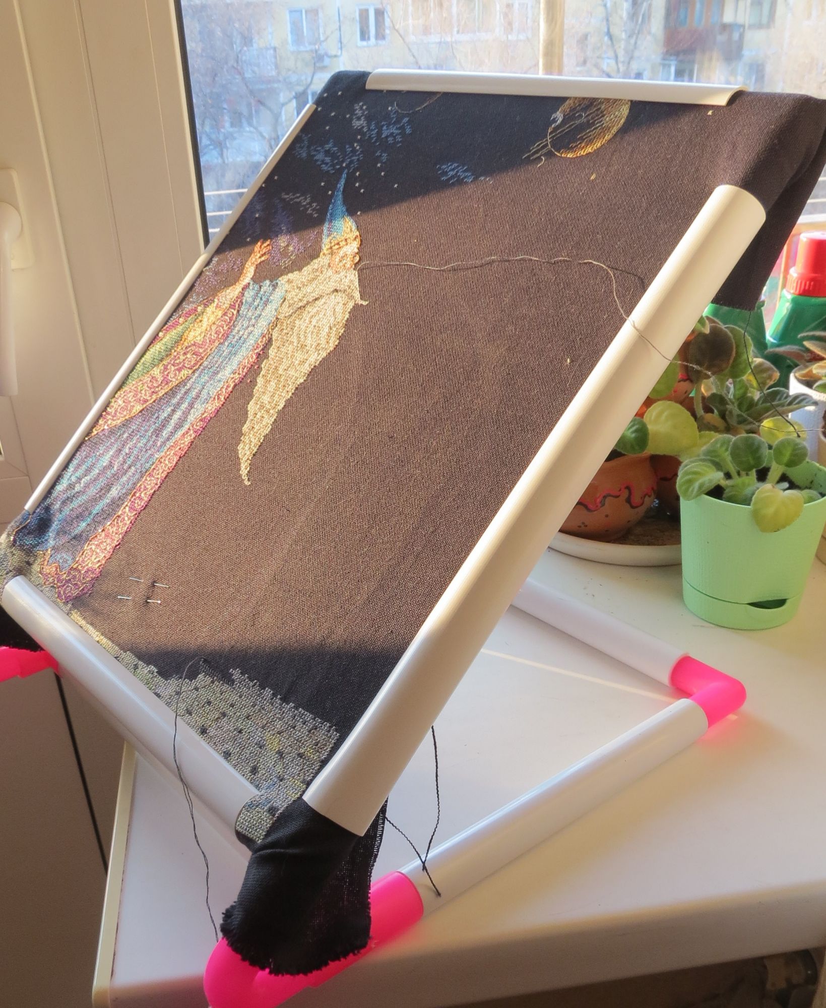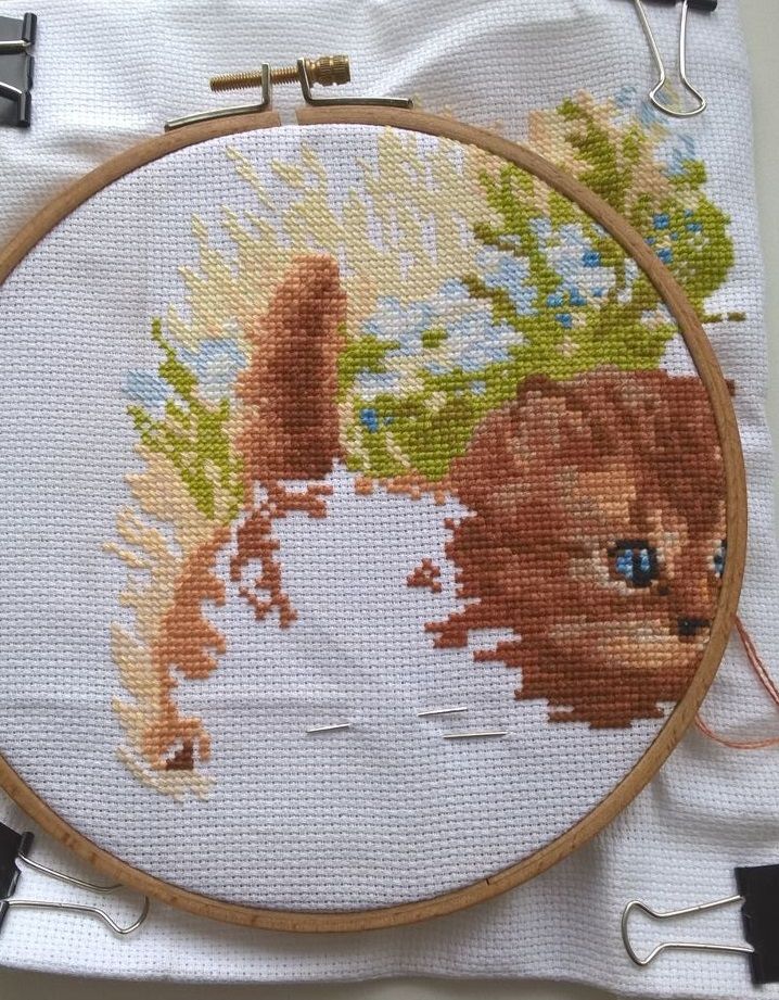 20 апреля 2016 Уф! Не прошло и ста лет, как я нашла что "вынести в свет". Мелочь - а приятно! Сегодня совсем "коротенечко"... Закончилась крестиково-вышивальная часть в пасхальном яичке: С бэком, бисеринками и блестюшками получилось очень нарядно! А на фото поближе видны все ляпы (крестики пляшут вприсядку), но все равно покажу - уж больно хочется бисеринками и золотинками полюбоваться: Бисерную часть буду доделывать позже, пока чего-то я подутомилась. Появился внезапный и уже слегка подзабытый персонаж: У кошки сейчас будет много-много спины. так что детали показывать уж не так интересно, если только растительность вокруг нее... На работе по мере возможности вышивается котенок: Очень уж мне нравятся фотографии с контуром хвостика и последняя с бодро торчащим шкодным хвостиком. С завтрашнего дня планирую повторить марафонский забег с Планетариусом. Отчитываться буду в соответствующей теме, а итог непременно принесу показать здесь. На минуточку прихвастну, какую симпатичную и удобную (уже опробовала!) агрегатину заказала себе из Китая: Вышивальная поверхность довольно большая, а в руках держать не нужно: можно опереть на коленки или приспособить на стол. Еще и обе руки свободны получаются. На этом все! Кому будет интересно понаблюдать за марафоном, прошу СЮДА. Хозяйка смешных зверей, masha-vyshivasha, monstrochka и 31 других сказали спасибо Поделиться сообщением Ссылка на сообщение