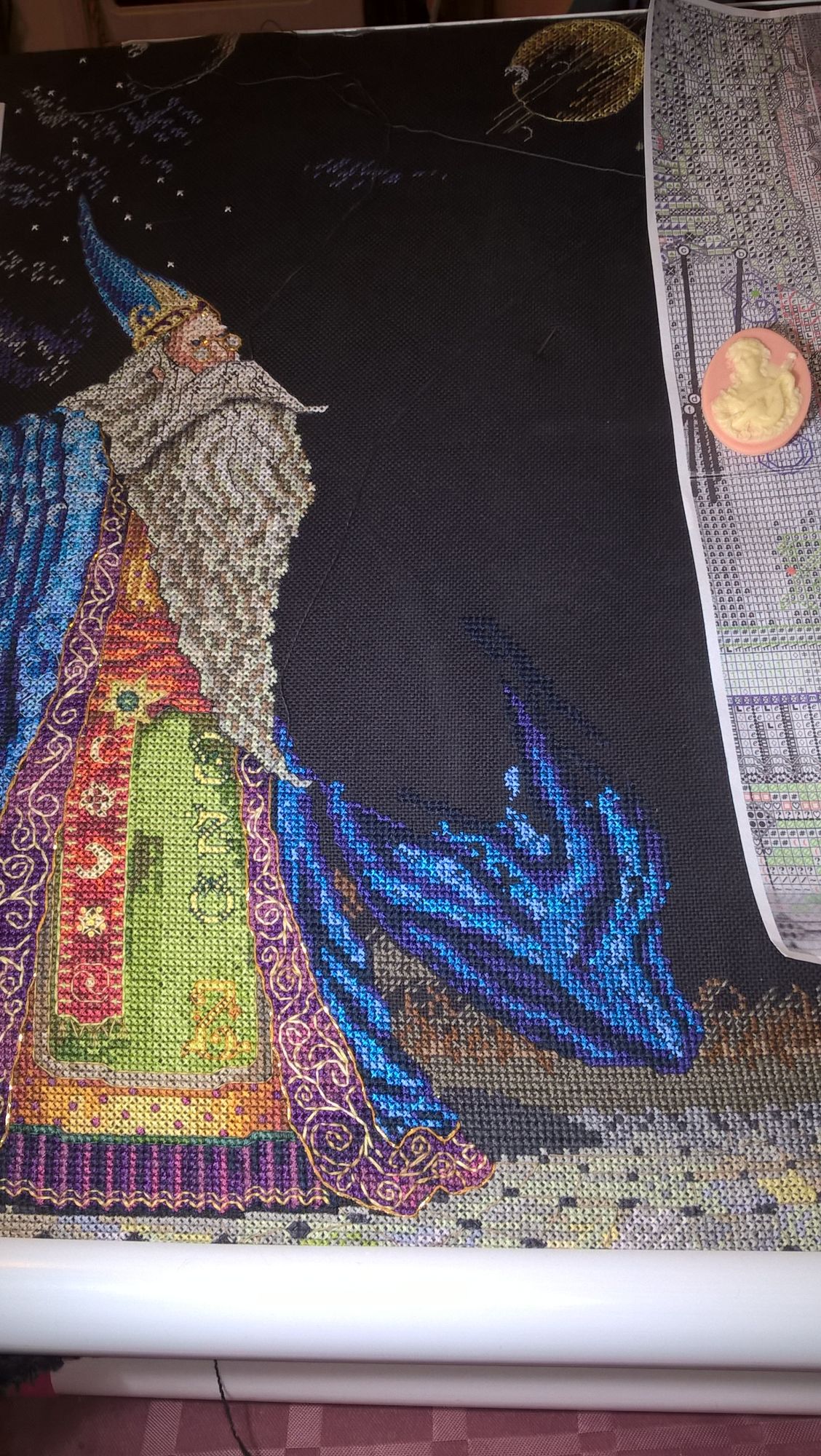 20 мая 2016 Я имею в виду, что результат получается роскошный, но вот процесс не доставляет удовольствия. Шить - в разных участках по-разному: есть удобные куски, которые отлично шьются одной ниткой с минимальными протяжками, а есть - налепленные одиночки, еще и четвертушки (это я вчера вечером такой кусочек рукава шила ) К замороченности схемы надо добавить, что она мелкая, бэк нарисован прямо поверх крестиков, да еще и часть схемы перенесена на оборотную сторону. Про внезапно заканчивающиеся нитки уже много сказано... mamatata, Хозяйка смешных зверей и Юла сказали спасибо Поделиться сообщением Ссылка на сообщение