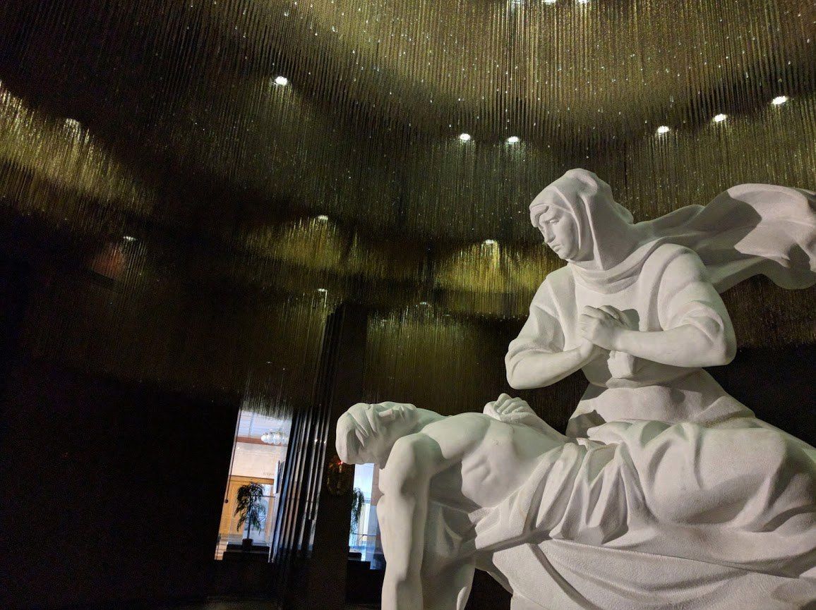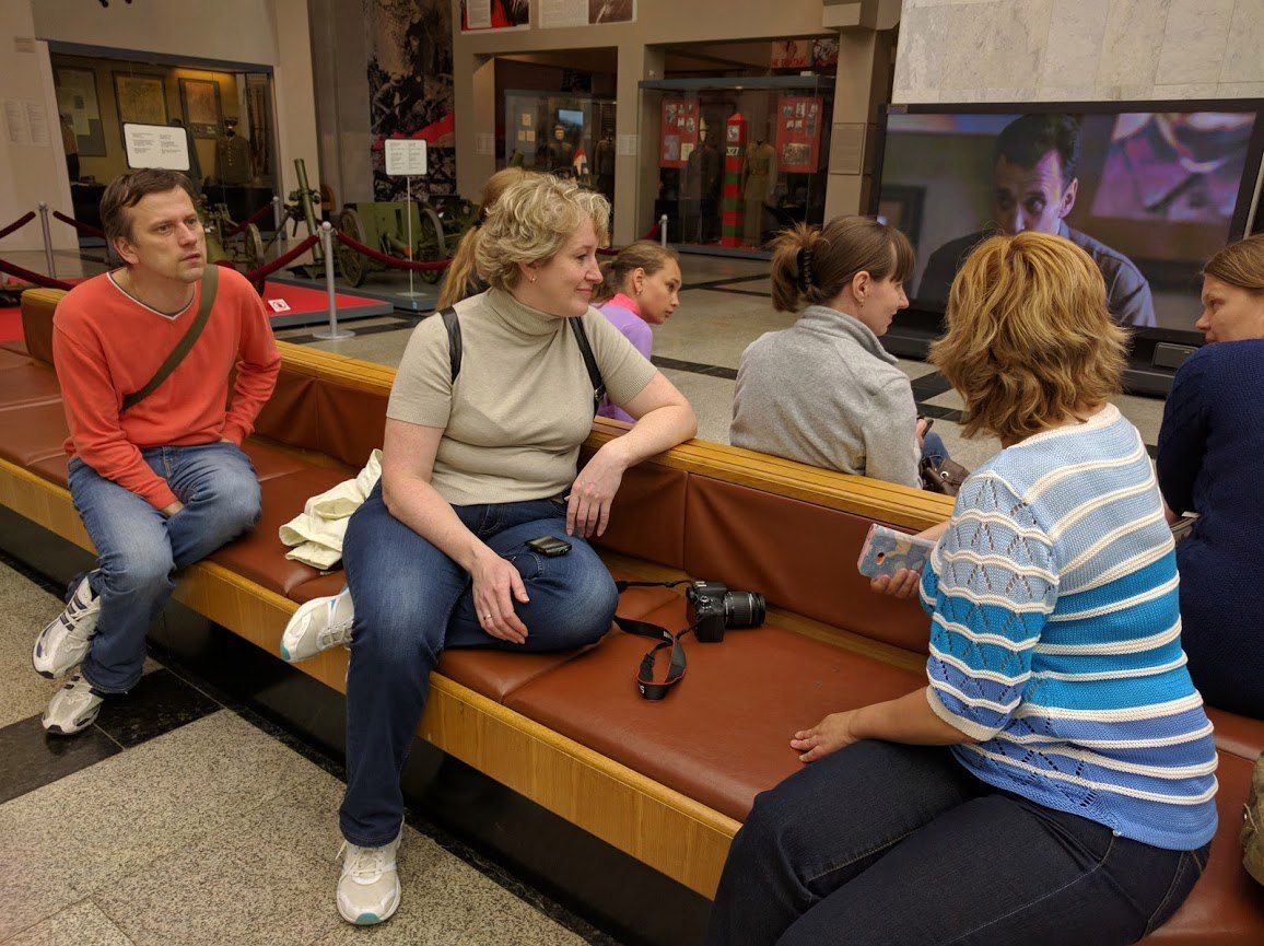 17 июня 2016 А следующего дня в Москве я ждала с особенным нетерпением! У нас была назначена встреча московскими (и окиоломосковскими) друзьями и соратниками. Оля (Путешественница) и Оля (OlkaY) уже поделились своими впечатлениями. Я поленилась брать с собой фотоаппарат, поэтому бессовестно воспользуюсь фотографиями, сделанными Алексеем, мужем Светланки (Krelina). Мы задолго начали предвкушать, готовиться и очень ждать этой встречи. Я впервые встречалась с Иришкой (Дафной), но это не помешало нам почувствовать себя близкими людьми. Компания подобралась изумительно веселая, отважная, готовая к новым открытиям и не страшащаяся капризов погоды. Музей ВОВ произвел на меня огромное впечатление. Да, мы все знаем "как это было", но собранные и показанные в одном месте свидетельства ужаса и кошмара, который довелось пережить людям того времени, даже сейчас в воспоминаниях вызывают мурашки на коже. Потрясающий зал Скорби: Я абсолютно согласна с Олей (Путешественницей), что народные ансамбли значительно снизили впечатление от его монументальности и значимости. Диорама "Блокада Ленинграда" вызвала невероятный накал эмоций. Молодой экскурсовод, проникновенно рассказывающий о страшных событиях того времени, который под конец включил запись сирены и объявления о воздушной тревоги, довел наши чувства до крайней точки, мурашки уже не отпускали. Расслаблялись после столь сильного впечатления мы в кафе, обсуждая вышивки и вообще все "за жизнь". В разговоре участвовали все, включая мужей и детей (то есть Дунька). Пара часов пролетела незаметно! Самые стойкие (обе Оли и моя семья) добрались до Детского мира на Любянке, где мой ребенок угорело метался между полками с игрушками: После расставания восторженное чувство не покидало меня до позднего вечера. Я достала Женю своими причитаниями на тему, какие же все хорошие, и как же нам было здорово! А заключительный наш день в Москве сопровождался вот этой тучей, которая кружила над нашим прощальным маршрутом и пять раз обдала нас проливным дождем: niksi, Путешественница, Selinta и 34 других сказали спасибо Поделиться сообщением Ссылка на сообщение