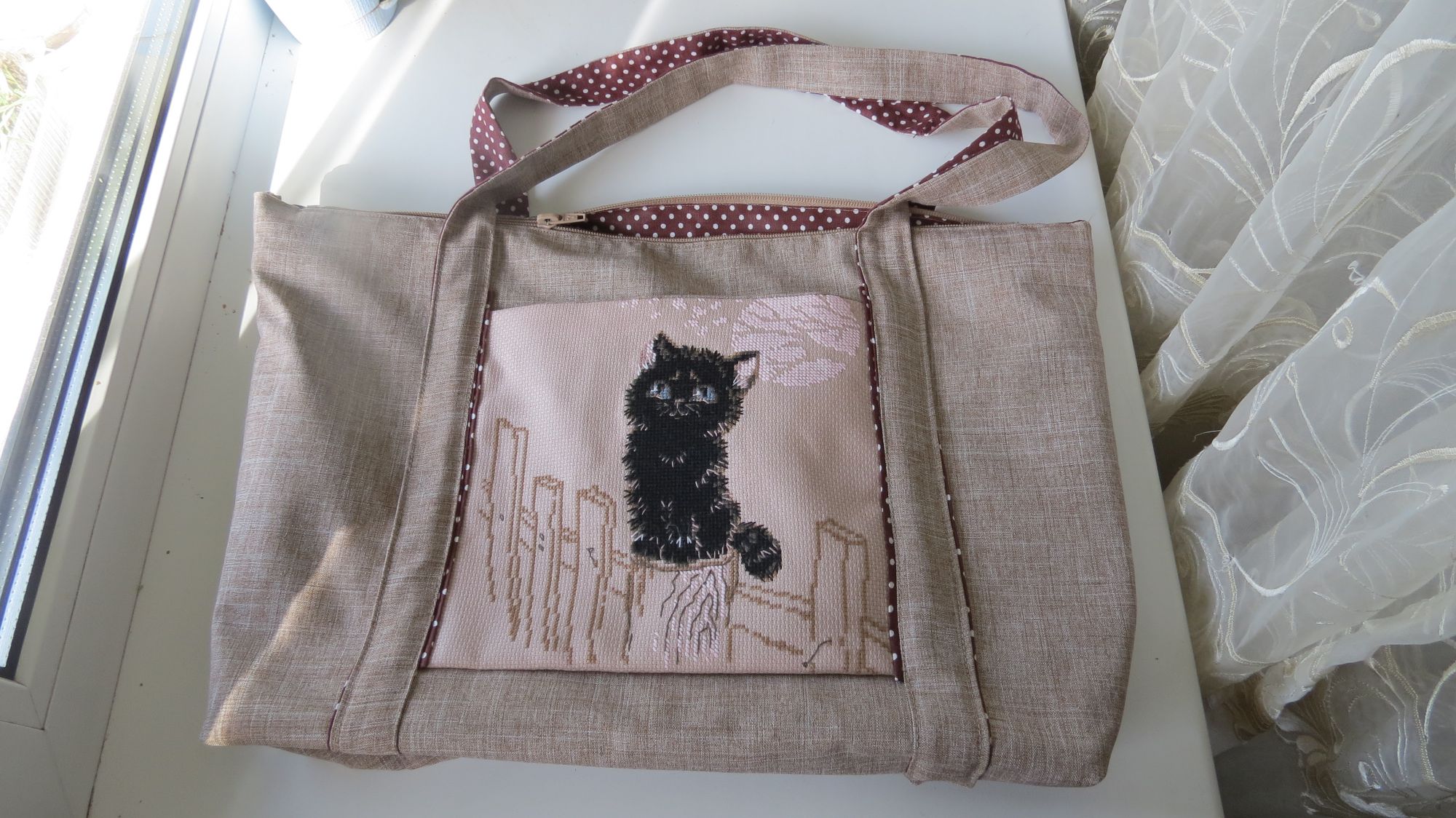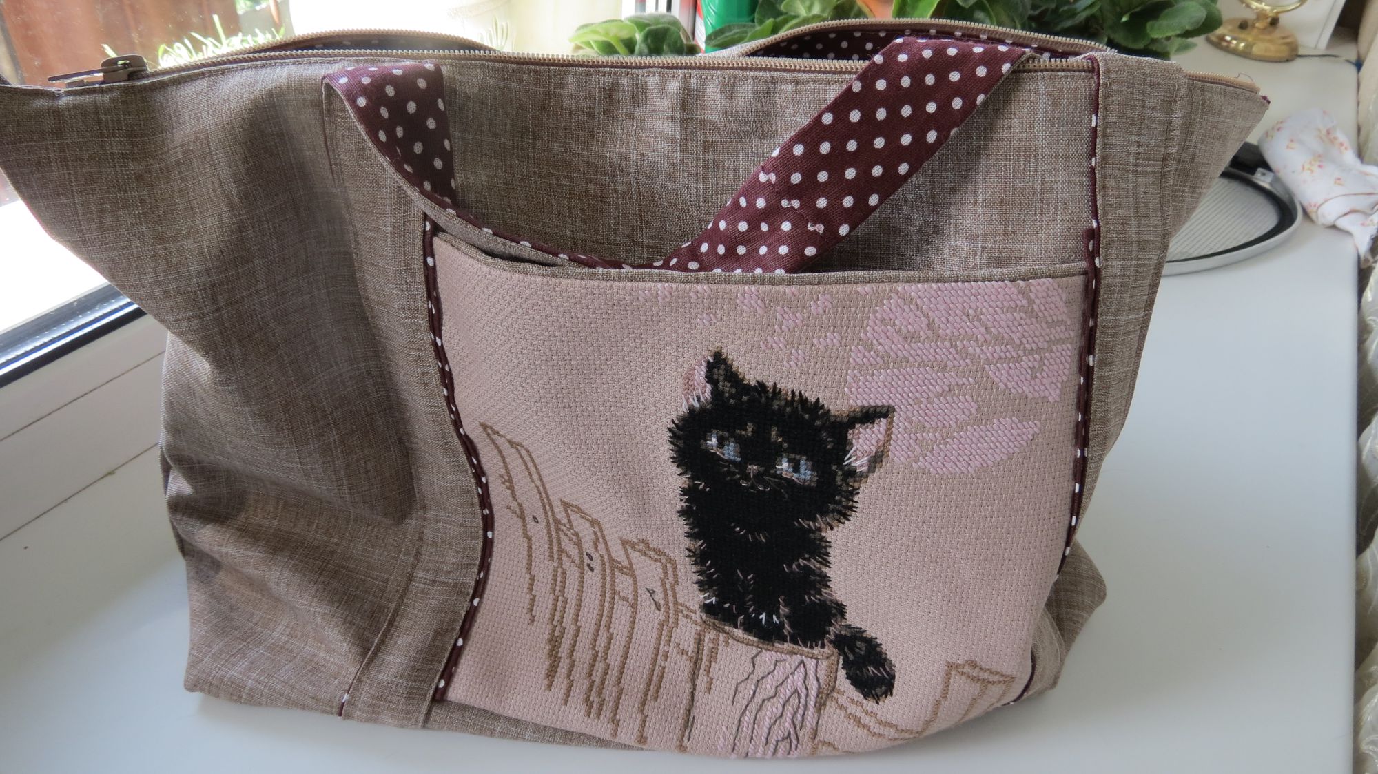 21 июля 2016 Поскольку я приняла на себя обязательство не отступать от еженедельной отчетной практики, то сегодня я по сусекам наскребла хоть на маааахонький, но уж какой получится, отчетик. Вышивалось на неделе непростительно мало. На Хабаровск навалилась нешуточная жара, поэтому мозги плавятся, и даже иголка в руках кажется неподъемным грузом. Как по этому поводу говорит мой ребенок: Справедливости ради нужно сказать, что и дома и на работе есть кондиционеры, но я не люблю кондиционированный воздух, поэтому включаю только когда становится совершенно невыносимо. В итоге из вышивок на отчет прилично прибавил в весе только Муркинсон. Усато-полосатая сладкая котомоська во всей красе: И добавились одуванчики: И чтобы оправдать свое вышивальное бездействие, показываю, что я сотворила или вытворила. Я сшила сумку!!! Показываю, как это выглядело в процессе: И вот, что получилось в результате: Ткани: снаружи - лен, внутри - бязь. Вышивка стала наружным карманом. Внутри тоже большой карман. Лен непного укрепила флизелином, но специально не стала задавать сумке фиксированную форму. Она у меня прогулочно-разгильдяйская (опять же цитируя Дарью: я - художник, я так вижу!). И вот как мое произведение выглядит на модели: Напоследок покажу вам много-много облаков над Большим Уссурийским островом и над Хехциром (к слову, под этими роскошными облаками я в воскресенье сгорела до свекольного цвета и три дня изображала вождя краснокожих): Aries, bukina88, Nat717 и 34 других сказали спасибо Поделиться сообщением Ссылка на сообщение