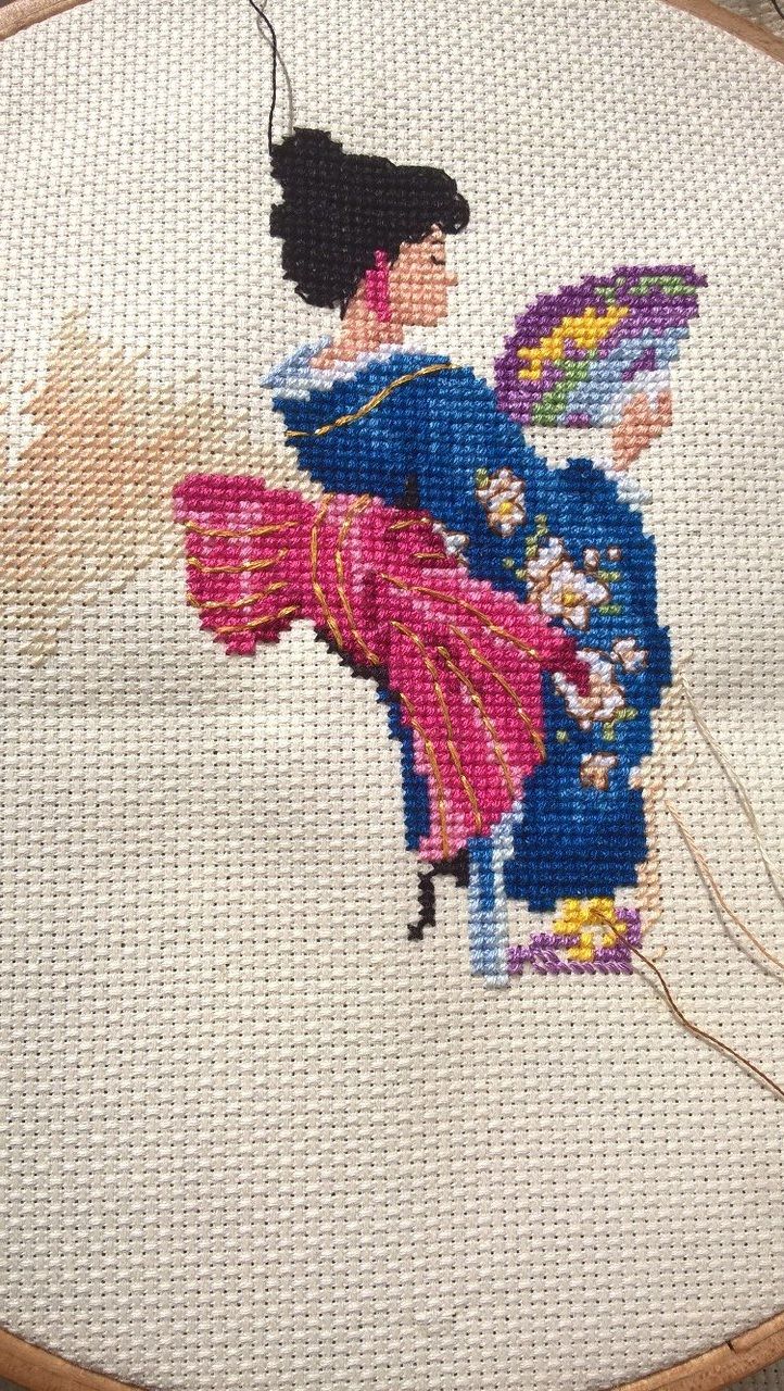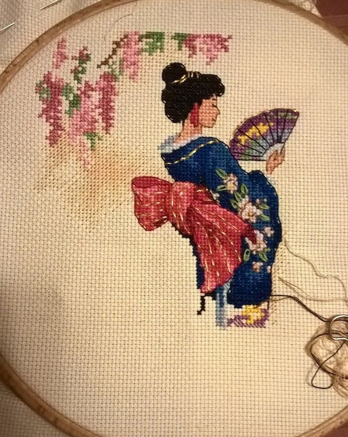 22 августа 2016 Ну и, конечно, как же без вышивальной части. У любимой тетушки я внезапно для себя встретилась с уже подзабытыми вышивками. Одна из первых моих работ - подушка по китайскому набору. Дарила его давно-давно, лет 7 назад, и была приятно удивлена, увидев ее видном месте, использующуюся по назначению на диванчике: Одна из Дашиных первых работ: И мои подарки в интерьере: С собой в поездку я брала только Гейшу. Вышивала за прогулками, встречами и разговорами, конечно, очень немного, но вот что получилось на сегодняшний день: На этом все. Надеюсь, что мои рассказы не показались слишком утомительными. Пикусёнок, Юнона1960, aleksaA и 33 других сказали спасибо Поделиться сообщением Ссылка на сообщение
