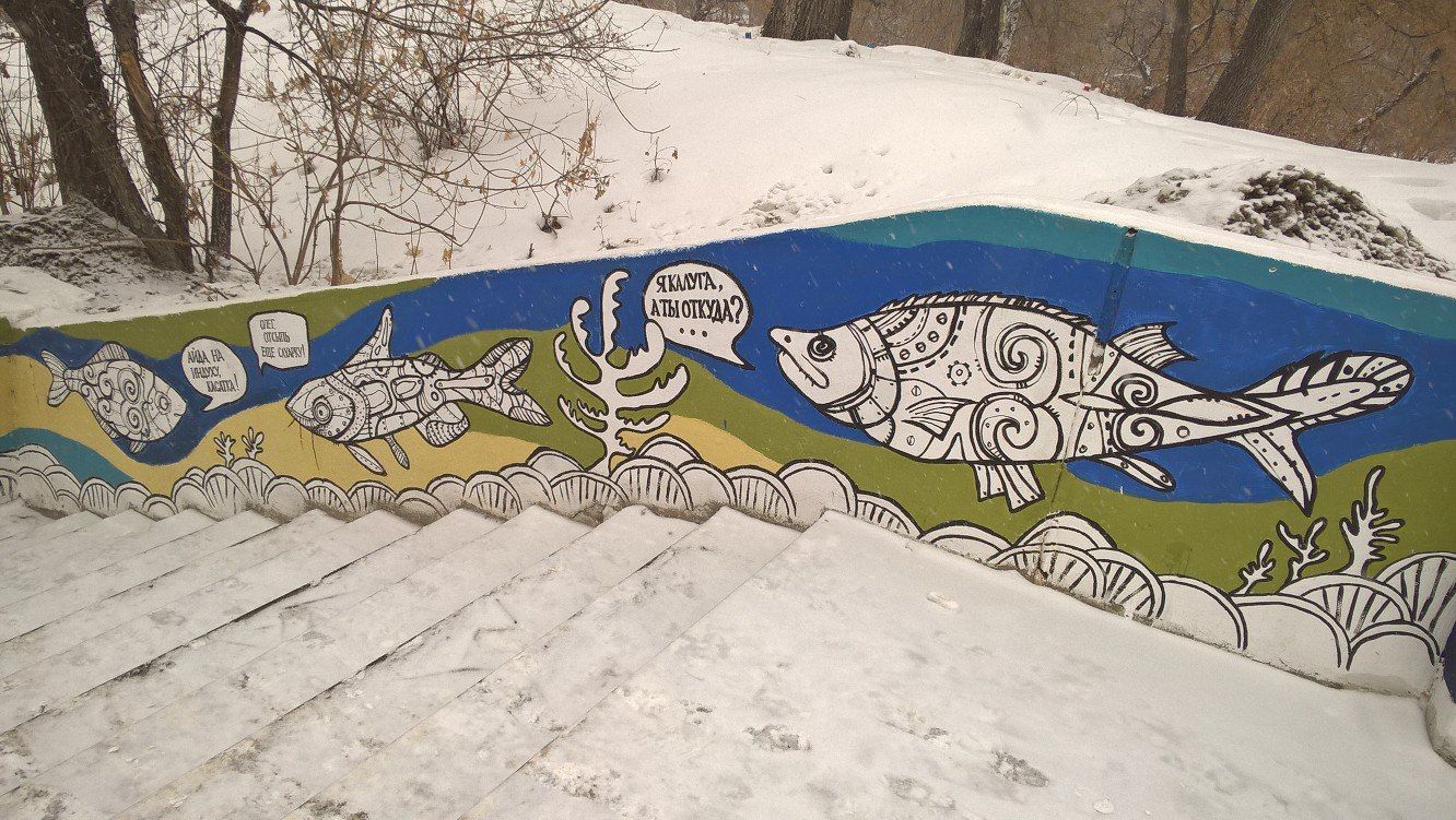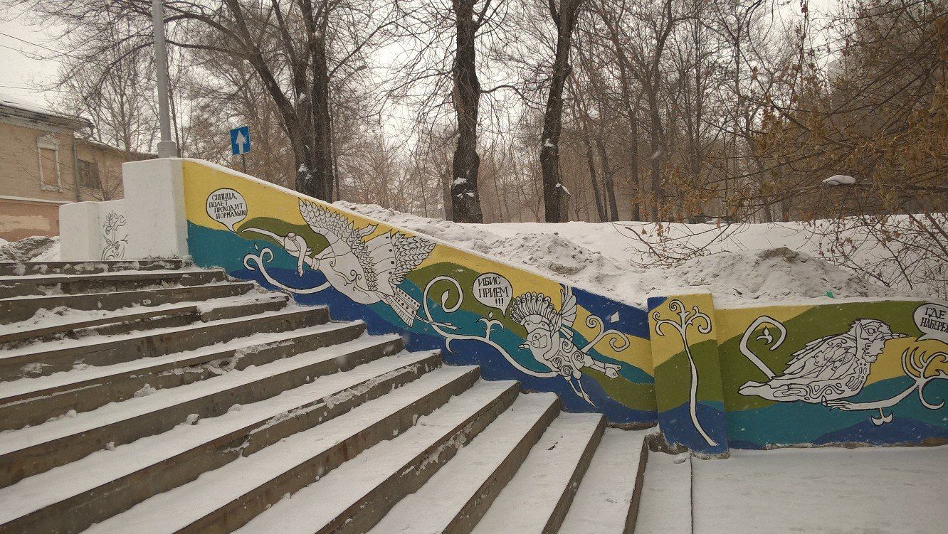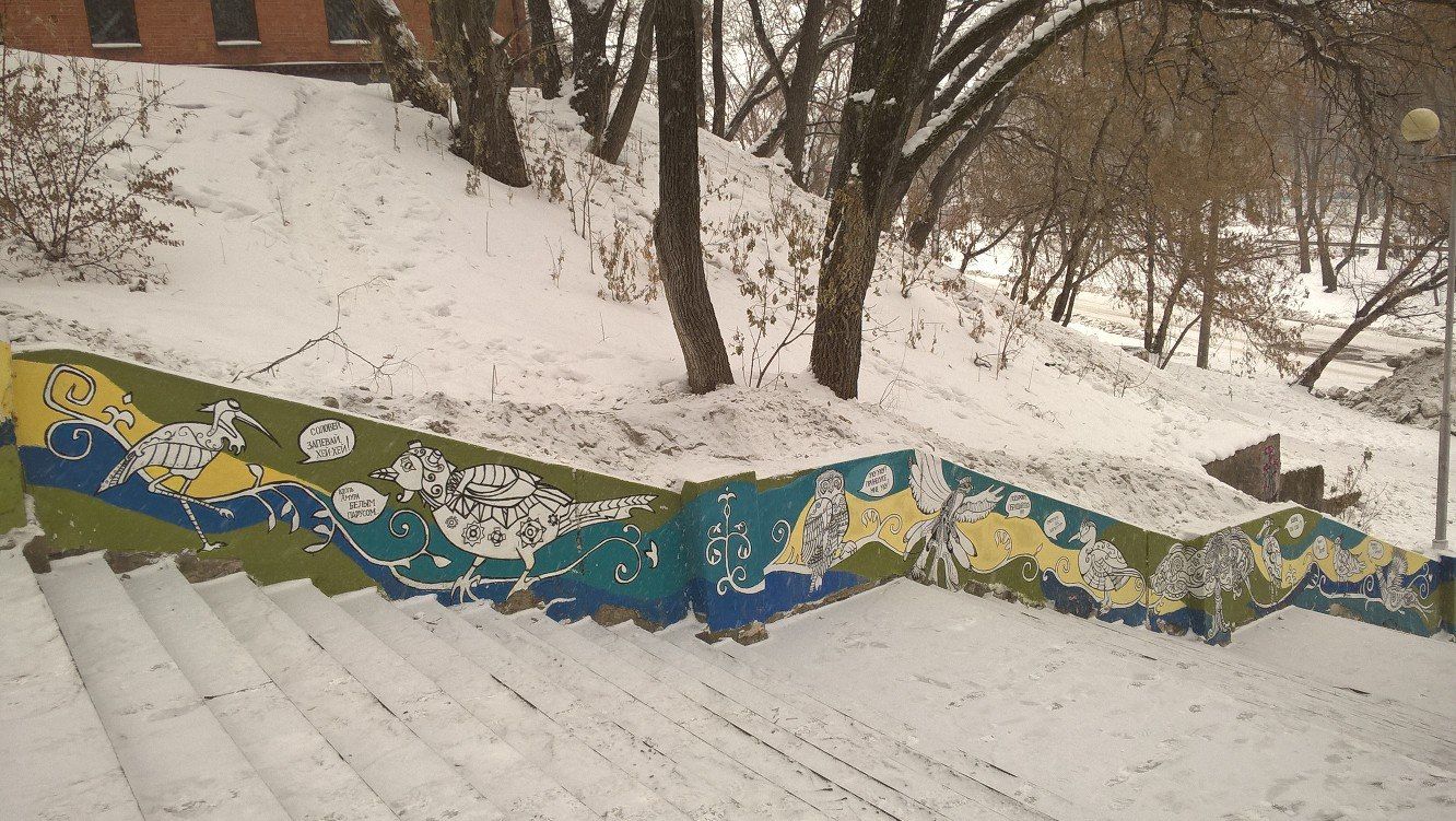12 февраля 2017 Итак, пока по уважительным и не очень причинам некоторые отлынивают от отчетов, я принесла свои новые, старые и даже почти забытые процессы. Дав себе зарок не начинать свои вкуснейшие подарочки пока не закончу хотя бы пару начатых работ, я старательно его выполняю. В связи с этим я старательно шила ежевичку, которая в процессе вышивания уже превратилась в подарок на юбилей любимого свекра (внезапненько так ): Даже с обретением такого предназначения процесс не стал для меня менее приятным, так что время, проведенное с ежевикой, пролетело быстро и с удовольствием! Опять же выполняя данное себе обещание, я честно пять дней шила Покровку. Ура! Я дотянулась до второго уголка. Это достижение меня воодушевляет настолько, что я хочу на неделе опять взгромоздить на стол станочек и домостить уже мостовую. Шьющиеся на работе подсолнухи очевидно показывают, что непосредственное и нелюбимое руководство отбыло в отпуск (а отпуск руководства - лучший отдых для сотрудников ) А вот в этом месте моего отчета к нам приходит неожиданная гостья! Заразившись бисерным энтузиазмом от двух отлынивающих сегодня дам (они себя уже узнали, да?), я вытащила красотку Грету и с огромным удовольствием представляю вам очередные 15 рядочков грациозной котопопы: Снимала с двух разных ракурсов, какой-то из них, надеюсь, удачен. И, наконец, время от времени для отдыха брала в руки пяльцы с будущим Кошкиным домом: Позволю себе похвастаться распустившимся у меня детенышем орхидеи. Наконец-то у меня есть желтенький! И пусть мое фото никого не вводит в заблуждение: он на самом деле реально детеныш - маленький и хиленький. Чтобы было понятно - размер горшочка 8 см. И приглашаю желающих на очередную прогулку по Хабаровску. В это раз мы с вами прогуляемся по так называемой Тургеневской лестнице (по названию улицы Тургенева, на которой она находится). По ней я шесть лет назад почти 8 лет ежедневно ходила на работу или в бассейн. Лестница довольно разрушенная, зимой подъем и спуск зачастую напоминал смертельный цирковой номер. Руководство города уже несколько лет ведет разговор о том, что надо ее разрушить и сделать сквозную автодорогу. Разумеется, жители близлежащих домов и многие другие горожане эту инициативу не поддерживают. А этим летом группа молодых энтузиастов собрались и для привлечения внимания к лестнице на свой вкус разрисовали ее. Героями рисунков стали птицы и рыбы Амура в оригинальной манере, навеянной в том числе известными иллюстрациями Г. Павлишина к "Амурским сказкам". На этом прошу мой почти проветривательный отчет считать завершенным Пикусёнок, Анютка-незабудка, kas_julia и 37 других сказали спасибо Поделиться сообщением Ссылка на сообщение