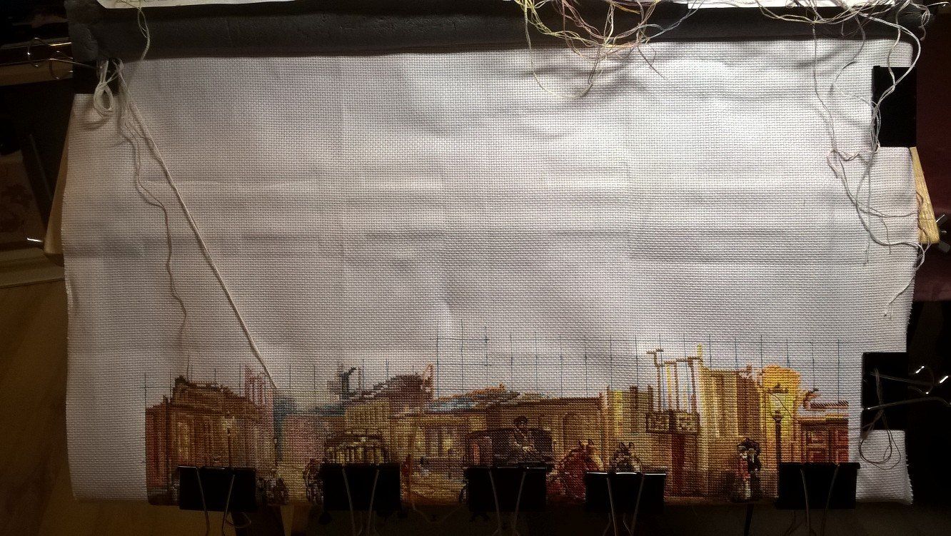 29 апреля 2017 А мне внезапно подумалось, что на праздниках уже точно руки-ноги-глаза не доберутся до компа, поэтому я решила упредить свое пропадание и принести небольшой (по-честному небольшой!) отчет. Выполняя взятые на себя обязательства (признаться честно, не без удовольствия), я делила свое время между двумя работами. Обязательная программа №1: Покровка. После мостовой скорость предсказуемо подросла и за неделю заметно подросли пара зданий: А значит, что же мы имеем?! ЭКВАТОР!!! Вот маленький кусочек, на котором заметны "чудесатые" крестики. Снизу более коричневый цвет, сверху - розоватый. На мой взгляд здесь это вполне уместно - стена буквально светится отраженным светом. Как думаете? Итак, экватор пройден, канва перетянута на раме, и дальше - как с чистого листа: После Покровки все мое внимание всецело и безотрывно отдано Подсолнухам, которые кочуют вместе со мной по маршруту дом-работа-дом. Теперь пока не закончу - ухожу в глухой однопроцессинг и не выпущу их из рук, пока не закончу (типа, торжественно клянусь ): Ну вот, собственно, и все. Больше показать мне нечего. Чтобы не заканчивать отчет на такой тоскливой ноте, я вам принесла невероятно рясно цветущую фиалку. А просто для настроения! Хозяйка смешных зверей, Lusha73, Анютка-незабудка и 32 других сказали спасибо Поделиться сообщением Ссылка на сообщение