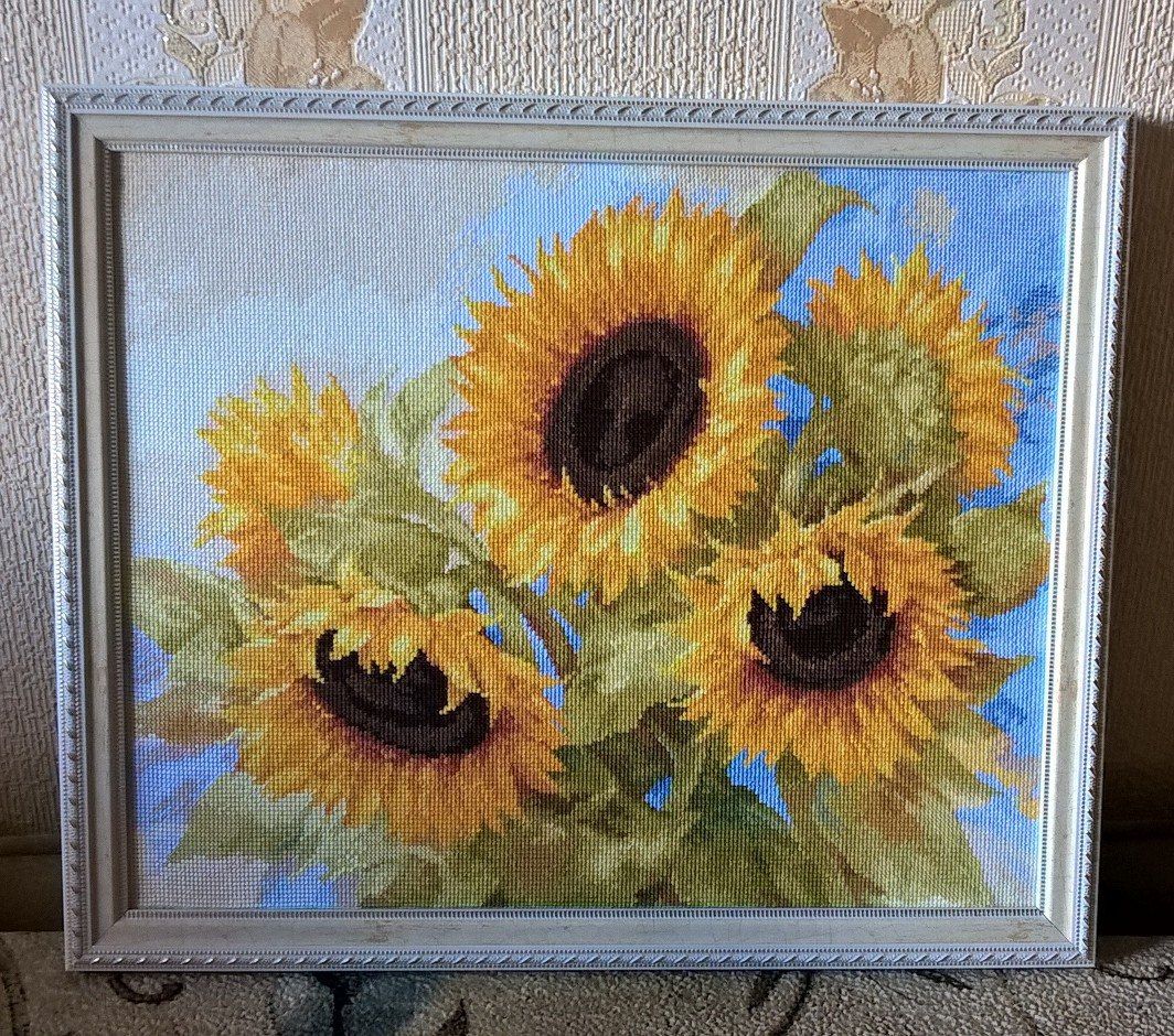 31 мая 2017 А я внезапно с хвастательным отчетом! Вчера забрала из багетки свои оформляшки. Очень довольна! Итак, начну с подарочных подсолнухов. Была поставлена цель не увеличить размер, так как вышивка планируется в ограниченное пространство, и при этом не задавить светлую солнечную картину. Считаю, что цель достигнута - светло, ярко, нарядно! Другой мой оформленный подарок - Ежевика. Вот тут удалось "порезвиться" на славу! Нижнее паспарту перекликается с внешней частью рамы, верхнее - с внутренней частью рамы и льняной основой. Рама как будто двойная, за счет этого создается ощущение, будто смотришь в окошко, все такое объемное. Чтобы не ходить два раза, покажу незначительные продвижения Кошкиного дома. На вышитом участке победила весь бэк! Переставила пяльцы, надеюсь, что следующий отчет уже станет финальным. И напоследок, покажу вам кота-охотника. Тихон запустил в квартиру какого-то мотылька и со своего пьедестала прицеливается - готовится к прыжку. Глаза горят, усы навострил - охотничек! musya, pellbell, Цыпа и 32 других сказали спасибо Поделиться сообщением Ссылка на сообщение