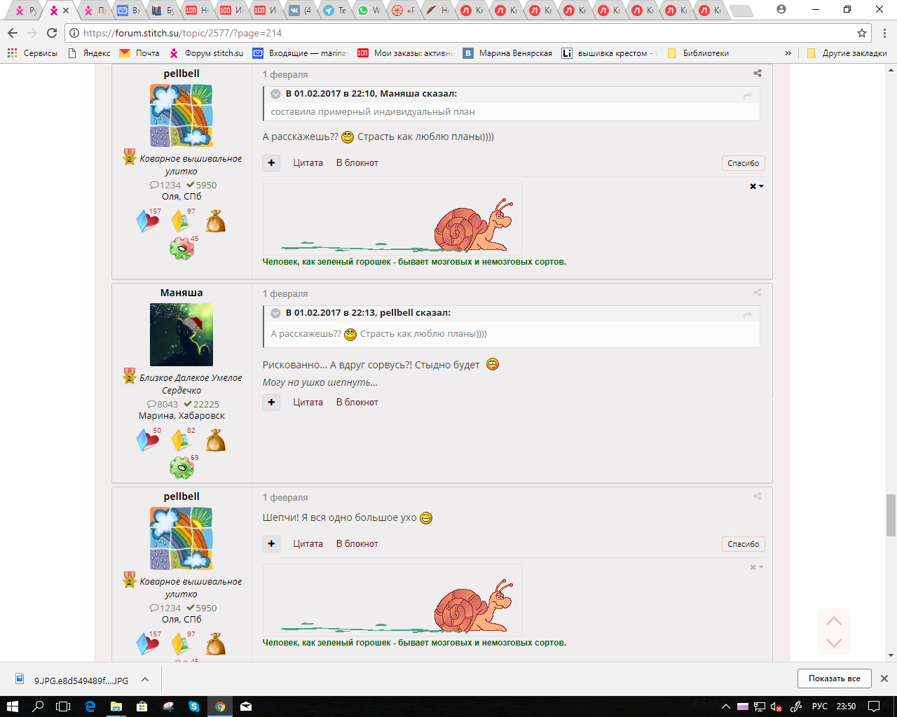 1 января 2018 Слушай, а не сказать, что ты сильно план запорола. Кое-что даже выполнила, я вот вообще ничего из того, что хотела. Маняшик, давай в праздники одолевай дерево в Покровке, глядишь и все сложные места уже позади останутся Хозяйка смешных зверей и Маняша сказали спасибо Поделиться сообщением Ссылка на сообщение