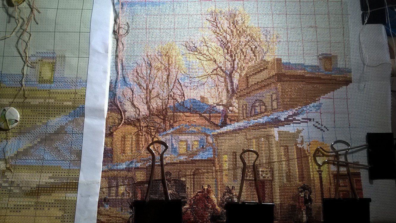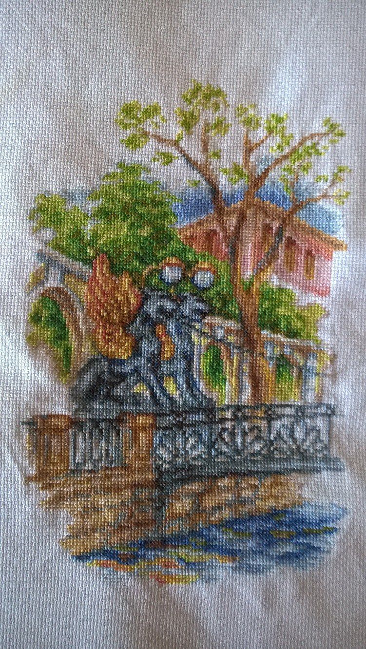 3 марта 2018 Привет всем! Я принесла ожидаемо завершенную Покровку! И оформленный Бокал с ягодками! И еще кое что симпатичное и приятное! Уф, первый восторг высказала, теперь по порядку. Непросто было прорваться через хитросплетение деревьев, но когда близка цель, то трудности приобретают характер незначительных помех и с упорным пыхтением преодолеваются: а дальше-то уже легкотня, бежим к цели быстрее паровоза! И вот она - моя обожаемая Покровка, кусочек душевной старой Москвы Что можно сказать по завершении? Я поняла, что люблю дизайны "на преодоление". Конечно, безусловно, приятно, когда небольшими усилиями достигается прекрасный результат, но если к достижению цели приходится продираться "через тернии к звездам", то это добавляет значимости победе, уважения к себе, как к вышивальщице и осознание своего "всемогущества" (нескромно, да?). Пройдя через Панновскую Бабу Ягу, Весну от Екатерины Волковой, Планетариуса и Покровку, я готова к следующим вышивальным подвигам, и на станок уже взгромождена Панновская Старинная карта, которая подарит новые "незабываемые" ощущения, будет то шиться с упоением и невозможностью оторваться, то убираться в дальний угол с негодованием и раздражением, но в итоге пополнит список побед и достижений. Я в это верю! Второй пункт моего восхищения - оформленный бокальчик с ягодами. Поскольку вышивке уготована подарочная судьба, оформила вопреки себе со стеклом. Фотографировать практически невозможно, из 100500 фото эти два, пожалуй самые удачные. Но в целом работа смотрится восхитительно, светлая, ясная, очень летняя и солнечная. Вышив Зеленую деревеньку, мама совершила набег на мои закрома. В качестве добычи к ней попали небольшие пейзажи от РТО с моим любимым Петербургом. И вот две работы уже готовы! Очаровательные акварельки, очень просятся в оформление и на стенку, но увы, придется ждать третью, а до нее мамины руки дойдут не скоро, ибо у нее кардинально поменялись вышивальные планы. Но не поделиться красотой, я, конечно, не могу. Очень приятным событием прошедшей недели было получение вкусной и красивой конфетки от Леночки aleksaA, Шоколадка мгновенно попала в цепкие руки моего детеныша, а интересная тонированная канва и очаровательная Смородинка (ой, а у меня последние конфеты сплошь ягодные ) вызвали у меня прилив хомячьего счастья. Решив почувствовать себя законченной мазохисткой, я прикупила (спасибо за содействие Асе Каори ) лен Edinburgh 36 ct. Заодно и посмотрим, как быстро мои глаза на лоб полезут . А уж процесс точно не заставит себя долго ждать! И, наконец, на отвлеченные темы... На неделе театр-студия, в которой занимается Дарья давал спектакль. Кстати, очень интересно, как их режиссер из небольшой агитки про подростков сделал полноценный спектакль в двух действиях о животрепещущих для шестнадцатилетних проблемах непонимания всем миром. Дарья играла небольшую, но яркую роль Чертенка. Смотрите, какая шкодная Чертеняка получилась. И в завершение моего большого и пространного отчета еще один Чертенок с пушистым хвостом. Тихон почувствовал интерес к чуть сдувшимся воздушным шарикам, с удовольствием с ними играет и не боится прокусывать и прокалывать когтями (на самом деле, полусдувшиеся шары не взрываются с грохотом, а с тихим шипением сдуваются, так что даже "храбрым" котам не страшно ) Цыпа, Ирина-Катерина, Naduh и 38