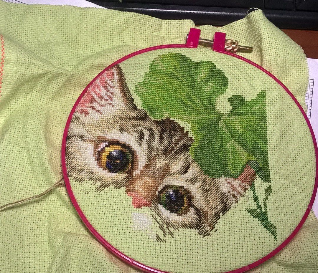 1 мая 2018 Всем привет! Праздник Весны и Труда я отмечаю торжественным выходом на работу из краткосрочного отпуска. Причем отпуск у меня получился такой, что на работе я практически отдыхаю (даже смогла повышивать ). Дома же я разгребала зимние завалы, отмывала, отстирывала и вычищала. Вышивка, увы, ушла даже не на второй, а гораздо более дальний план. Но я же не отказываюсь от поставленных задач, поэтому, выхватывая редкое время досуга, я таки дошила кокетливую красотку Леди Мяу (она же Кошка Грета)! Дамочка получилась крайне капризная, фотографироваться отказалась напрочь. На солнышке - явно светит канва (хотя вживую этого совершенно не заметно), а без солнышка - откровенно перевраны цвета. Истина, как водится, где-то рядом. Надеюсь, что в оформлении она станет сговорчивее и позволит запечатлеть себя во всей красе. Перед отпуском, выполняя поставленные перед собой цели, я завершила очерердной лист схемы в Осеннем кресле. Появилось искушение не выпускать его из рук и дошить до угла, тем более, что лист схемы там неполный, но... нет-нет-нет, надоело Так что креслу суждено полежать до очередного приступа вдохновения в таком виде: Опять же до отпуска котенок на работе прирос ушком и границей большого листа: Ну и, конечно, прибавление в компании Котиков на удачу - притаившийся Черныш и восхитительно гордый сиамский профиль: До полного котячьего комплекта не хватает одной котомордочки, надеюсь, что она не заставит себя ждать (вроде уборочной страды осталось буквально на один-два дня ). Теперь о душевнейшей приятности! Леночка Rezavy меня порадовала чудесным сюрпризом! Посмотрите, какие кото-сокровища оказались в неожиданной и очень приятной посылочке: дивная стереооткрытка с кошками и книгами и давно желанный набор! Ну что тут скажешь... Размножению быть! И под занавес моего отчета - небольшой квест из серии "Найди кота!" (это мы зимние вещи из шкафа убирали): Несправившиеся с заданием, могут заглянуть в подсказку Скрытый текст Дикая белочка, Selinta, kas_julia и 32 других сказали спасибо Поделиться сообщением Ссылка на сообщение