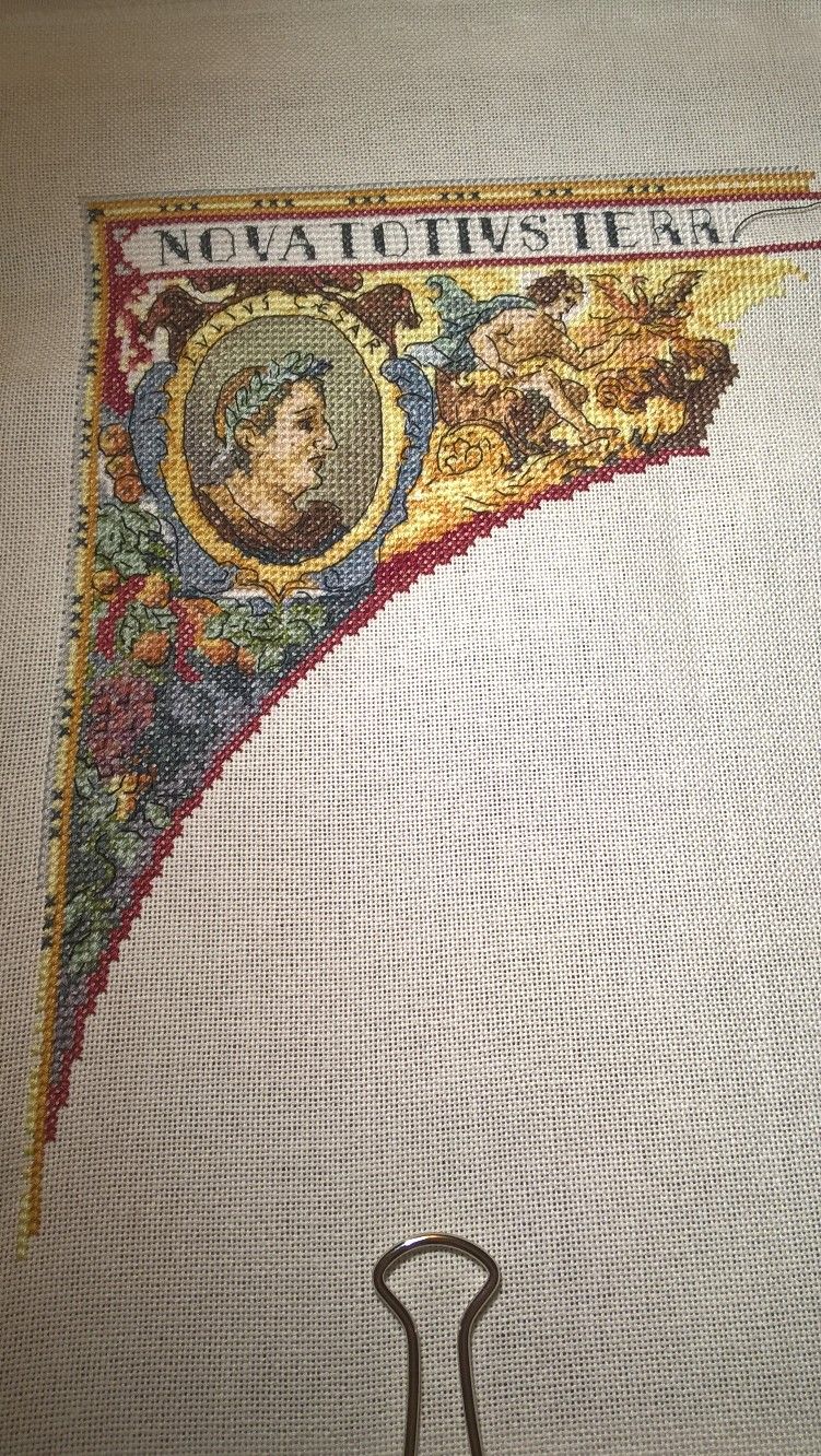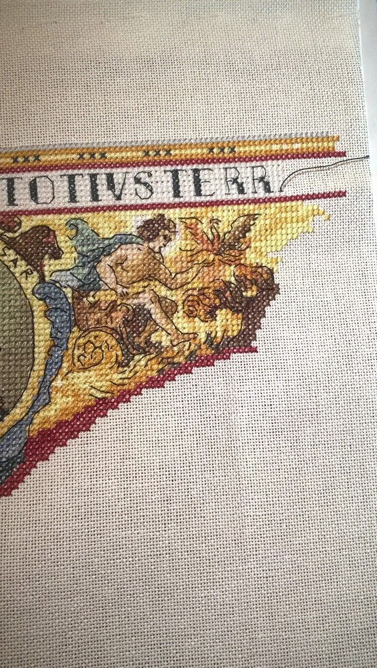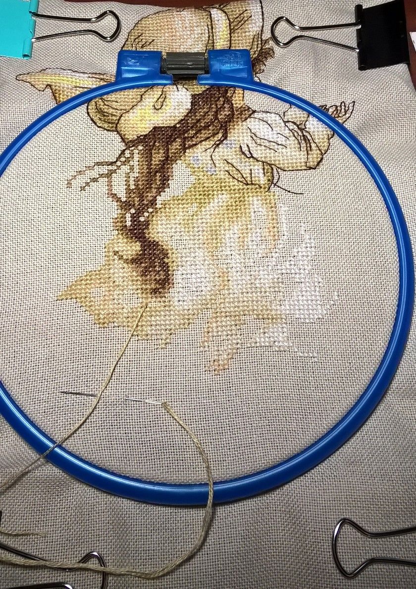 6 ноября 2018 Ночь... Внезапное затишье на работе (тьфу-тьфу-тьфу!)... Совершенно случайно оказавшиеся в телефоне фото текущих работ - чем не повод организовать небольшой вышивальный отчетик? А, собственно, почему же небольшой? Кто мне помешает сотворить отчет в любимом формате "полного цикла"? А поскольку ночью мысли роятся в беспорядке, не желая становиться ровным строем, позволю себе отступить от традиционной последовательности начинание-продолжение-завершение-оформление и начну от обратного. Оформление ЕвгенСаныч активно собирался на ноябрьских праздниках посетить своих родных в Амурске, в связи с чем было срочно организовано оформление подарочного Шиповника. Мудрствовать не пришлось - Шиповник изначально был предназначен составить пару Ежевике, поэтому оформление практически идентичное: тот же багет, такое же верхнее паспарту и только нижнее паспарту создает солнечное настроение своим ярким оранжевым отсветом. А Женя пособирался-пособирался... и никуда не поехал Так что шиповник стоит и радует глаз у меня дома! Продолжение Два моих "простеньких" процесса, несмотря ни на что подрастают. Тадж-Махал обрел уже практически полное отражение (за бэк пока боюсь даже браться - коплю решительность!) Удивительное дело - днем удалось поймать солнышко, так хотелось максимально достоверно передать невероятный объем изображения, видимый в тончайших переходах максимально близких голубых оттенков, а на фото все равно получилась довольно плоская сероватая картинка. Лукасина девочка на работе принарядилась в шляпку. Позволю себе пожаловаться на Лука-С. Похоже схему в части бэка создавали враги - белые линии, которые обозначают дождевые потоки я просто не вижу Они слегка угадываются по словно непропечатанным клеточкам. Ну вот как тут разглядеть?! Глазки на лоб лезут Начинание Бей-не бей себя по рукам, а они так и тянутся вытащить из закромов что-то новенькое. А уж если это новенькое вот уж полгода как на станок натянуто и стоит в уголке раздражает своим призывным видом, то как же не поддаться соблазну! А во всем виноват опять-таки муж (хорошо, когда есть на кого спихнуть вину ) Проходя мимо давно уже заправленного станка, ЕвгенСаныч словно бы невзначай поинтересовался, когда я уже наконец начну вышивать карту. А я что? Я ж уже давно готова! И вот, представляю вашему вниманию: Panna ПЗ-1842, Географическая карта мира Ожидаемый размер 63.5 х 44.5 см. Вышивается на Линде. Удовольствие начала получать уже с первых крестиков - как же, оказывается, кайфово для глаз, рук и всего прочего организма шить по несложной, хорошо читаемой схеме, на равномерке довольно крупного каунта! Процесс обещает быть приятным. Хотя, признаться, размер немного пугает. Вышитая часть рамки - примерно 1/4 часть всей ширины, так что впереди еще "море удовольствия" И, наконец, завершение (оно же начинание, оно же "возьми себя в руки и доведи до ума!") Повертев в руках подарок от Цыпуши, я,разумеется, не удержавшись, распотрошила пакетик с брошкой. Прочитав прилагающиеся инструкции и почесав затылок, я решила чуток попробовать, что же за зверь такой диковинный - гладь. Попробовала немного... Потом еще немного... Потом немного распорола... Потом еще немного пошила... И вот итог пары часов моих "проб и ошибок": Моя Осенняя заводь получилась ярче, чем в оригинале. Но я художник - я так вижу! Сделала вывод, чт