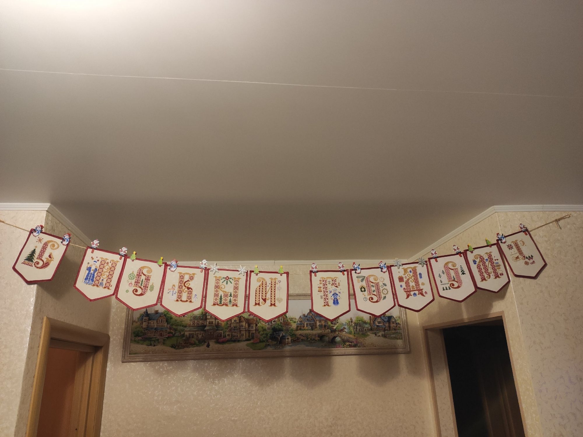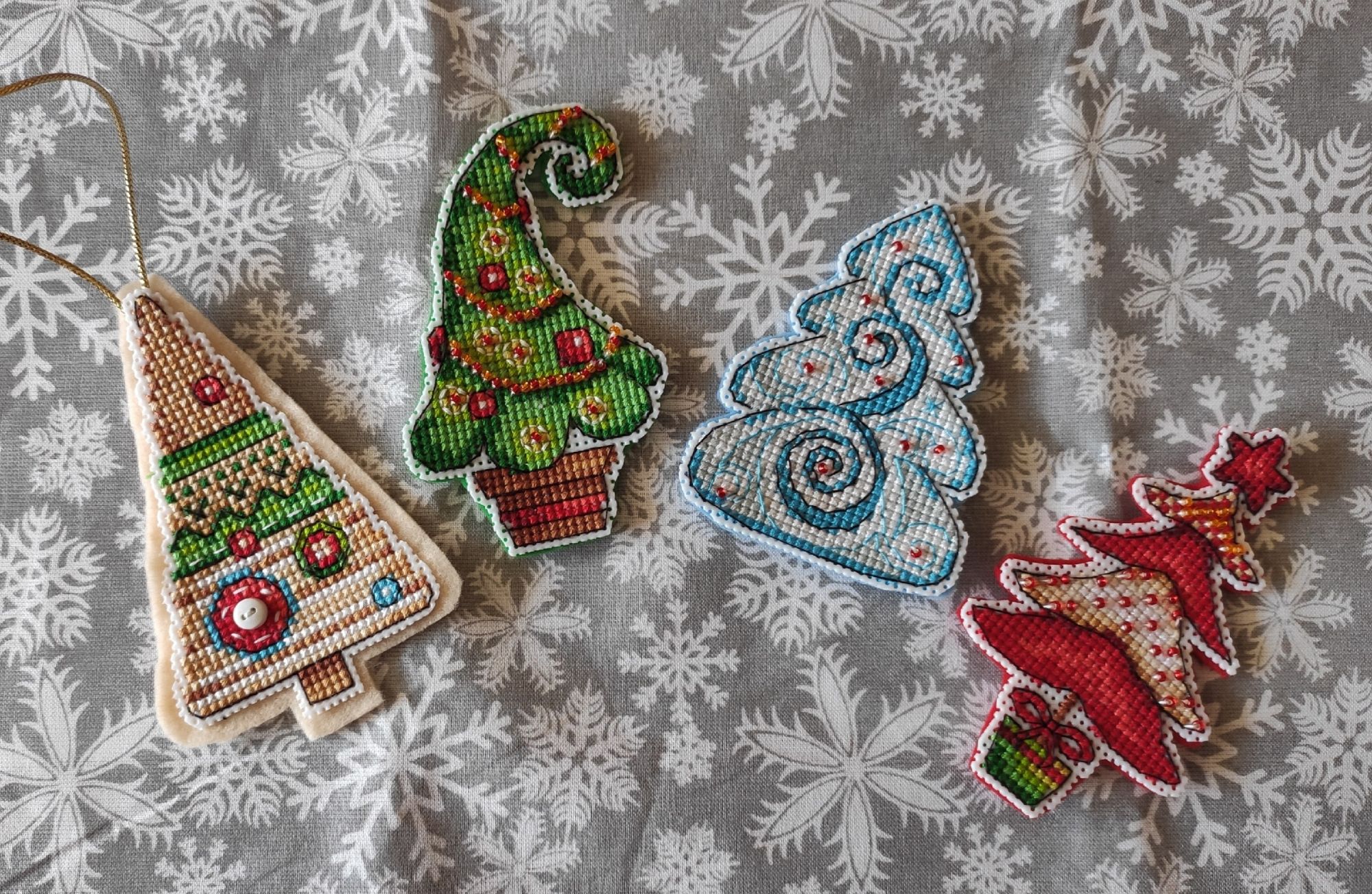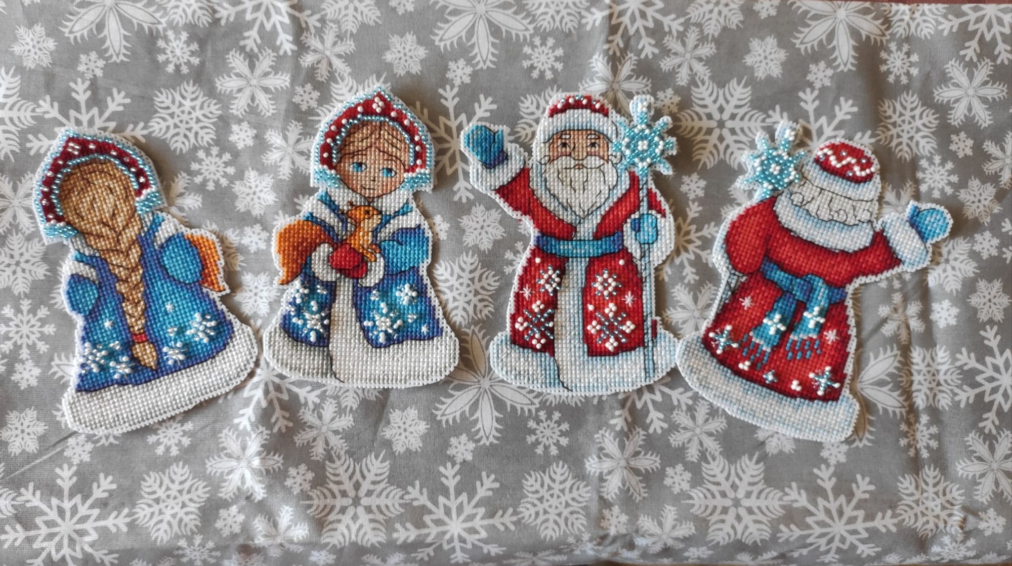 30 декабря 2019 Всем привет! Вот и я дозрела до предновогоднего отчета. Хоть не все мои планы и установки на этот год реализованы, но все же он был насыщенным и интересным во многих проявлениях, в том числе и в вышивке. Начну с приятного завершения. Сказано:"Будет подарок мужу," - сделано! Процесс: И результат: Схема несложная, бэк полностью счетный, размерчик - как раз для футболки. Я довольна как слоник! Процесс и результат - сплошное удовольствие! Флажки от Совиного леса дождались оформления и, как и намечалось, украсили нашу комнату: Мама подготовила для своих приятельниц в подарок милые вышитые елочки от МР-студии (мне досталась бежевая, которая с петелькой для елки, остальные стали магнитиками): Для меня мама вышила Деда Мороза и Снегурочку, но они еще ждут моего участия (сшивания) прежде, чем украсят нашу елочку. На этом вышивальную часть позвольте считать завершенной, а дальше буду создавать новогоднее настроение! Елочка у нас в этом году очаровательная - невысокая, но очень пушистенькая и пахучая! Дарья на подарки друзьям напекла традиционных пряников: Огромный заряд позитива и новогоднего настроения мы с Женей получили на представлении, в котором участвовала Даша. Все было весело, зажигательно и очень празднично! От всей души желаю всем нам прекрасного настроения, веселых праздников и душевного тепла! Пусть наступающий год дарит нам новые вышивки, новые встречи и новые впечатления! Nat717, OlkaY, Путешественница и 23 других сказали спасибо Поделиться сообщением Ссылка на сообщение