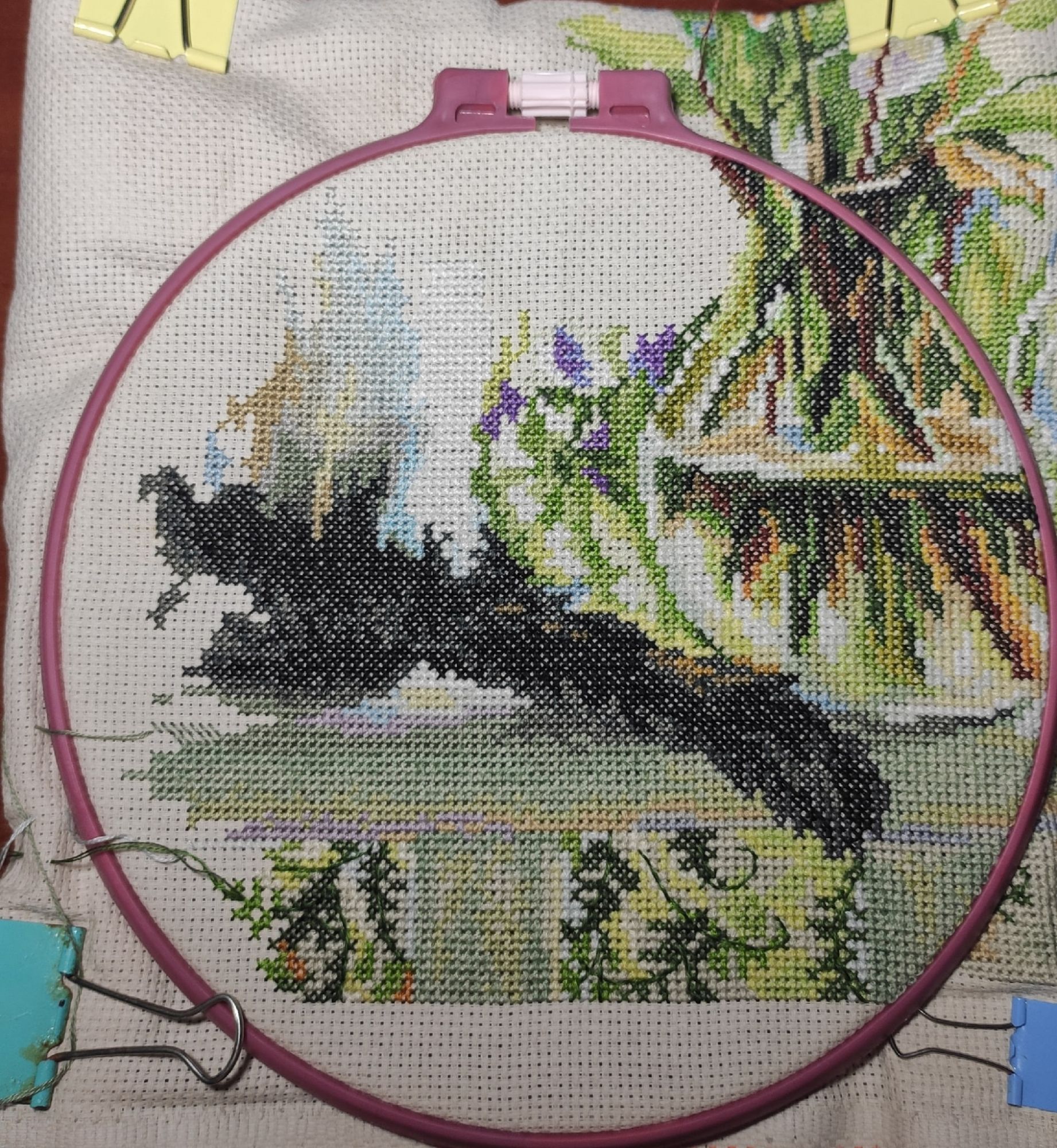 24 января 2020 Всем привет! Я забежала на минуточку с мааааленьким завершательно-начинательным отчетом. Неделя случилась совершенно невышивальная, но я через "нихачу и нимагу" все-таки домучила Тадж-Махал. Довольна! И тем, что я это сделала, и результатом. А вот о наборе мнение у меня далеко не лестное. Для такого известного и, как мне думалось, уважаемого производителя как Анкор, претензий многовато. Итак, во-первых, это крайне неудобные органайзеры. Не сфотографировала, но они неудобно вертикально сориентированы, и номера ниточек визуально не сопоставимы с положением в отверстии органайзера. Нужно либо сильно присматриваться, либо прочерчивать линии от подписи к отверстию. Во-вторых, очень большая претензия к схеме. Части с бэком и без бэка не совпадают!Да-да, я несколько раз "протирала глаза" и проверяла "может я что-то не вижу"?! Но на самом деле все очевидно даже невооруженным глазом: Одна часть схемы на 12 строк меньше другой. Пришлось вышивать по части с бэком, и рассматривать некоторые недостающие строки через линии бэка, которых на куполе весьма немало. И наконец, конечно, покупая Анкор, предполагается понимание, что "легко не будет", но, блин, если бы я не поменяла родную канву на равномерку, а взялась это вышивать строго по набору, то совершенно не факт, что я бы его победила. На равномерке-то глаза периодически в кучку собирались, и иголочка не знала, куда ей приткнуться, а уж на канве - мамадарагая! Ну да ладно, факт победы зафиксирован, и после некоторого перерыва я непременно возьмусь за второй набор этой серии. Так что все, наверное, не так уж плохо! И мое начинание... Ну да,"грехопадение" все-таки случилось Как бы я не зарекалась браться за новое, пока не разберусь с долгостроями, но неудача с принтером, о которой я писала раньше и завлекательные фото от Цыпуши все-таки сподвигли меня вытащить из закромов и "надкусить" новый наборчик. Давненько не брала я в руки шашек... то есть ДИМа. И потому, представляю вам широко известных, но не менее любимых "Котят на заднем дворе" (Котята в амбаре, Barnyard Kitties) картинка-напоминалка и мое начало Здесь никаких неожиданностей, все как обычно: жесткая канва, которую мы с Женей запяливали в нюрки в четыре руки, привычные ниточки, знакомая схема и любимый полукрест в 4-5 ниток На этом все! Всем (и мне тоже) активных вышиванцев и побольше времени для вышивания МарСанна, niksi, Пикусёнок и 26 других сказали спасибо Поделиться сообщением Ссылка на сообщение
