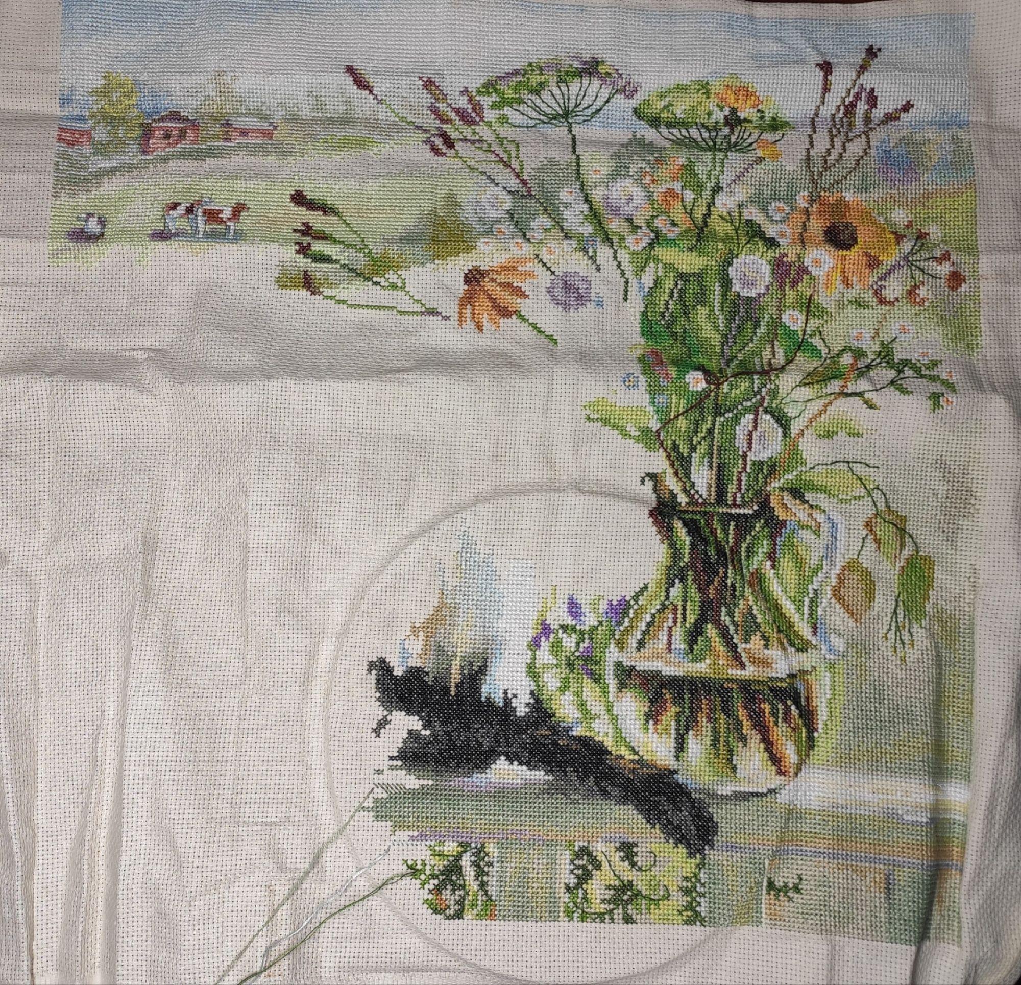 12 января 2020 И небольшой отчет, подводящий скромные вышивальные итоги прошедших каникул. Хотя мне, как сменному сотруднику, понятие каникул неведомо. Зато достаточно времени было уделено рабочему процессу! Наташенька @Nat717 - лови тыльную часть кота! Пока трудно угадывается, что это будет - белая спина с совершенно непредсказуемыми вкраплениями голубых, серых, сиреневых и желтых оттенков Радует, что самая многоцветная часть вышивки побеждена. Дальше уже есть большие одноцветные участки (в том числе на коте ). В связи с постоянным присутствием членов семьи дома(а значит все мое время и внимание должно принадлежать только им), вышивалось весьма немного. Изо всех сил побеждаю очередной долгострой - Тадж-Махал. Уже нашла третий угол и мужественно двигаюсь в направлении четвертого. Уж простите за кривокрестиковое макрофото. Но уж очень хотелось показать трепетную любовь Анкора к усложнению жизни вышивальщицы. И эти цветочки почти не бэкаются, весь контур создается за счет 3/4 крестиков. И напоследок так очаровательно проанонсированные Оленькой @OlkaY нарциссы. Да, мои луковичные никак не хотят ждать весны. Я в этом году пустила их в выгонку максимально поздно (во второй половине ноября), но уже в последние дни декабря вытащила на свет уже высокие ростки с набранными бутонами. И вот они - мои солнышки! На этом позвольте откланяться В ближайшее время постараюсь заглянуть в любимые темы и получить заряд энтузиазма от знакомых и новых ваших процессов. Selinta, Лена1973, monstrochka и 29 других сказали спасибо Поделиться сообщением Ссылка на сообщение