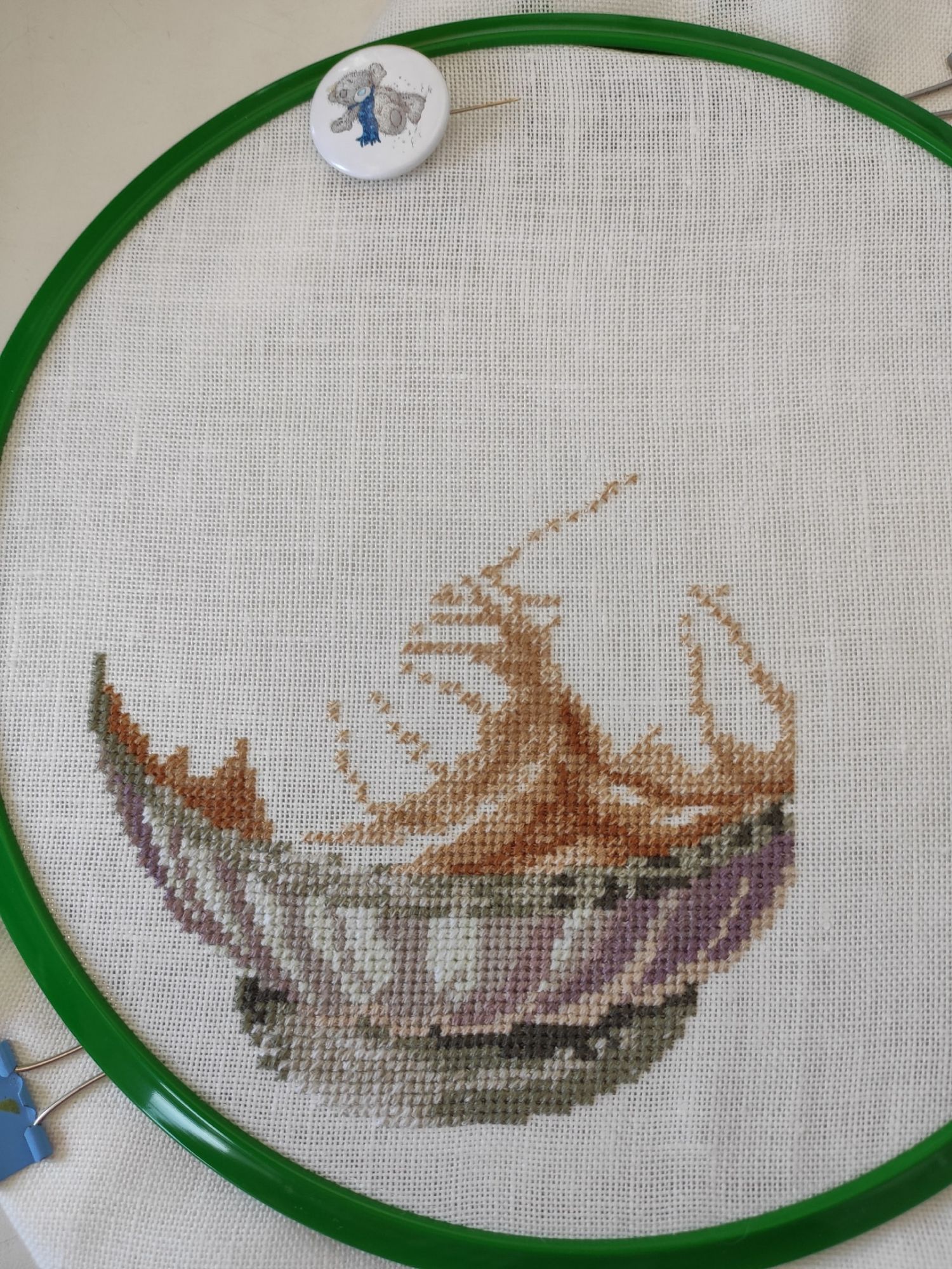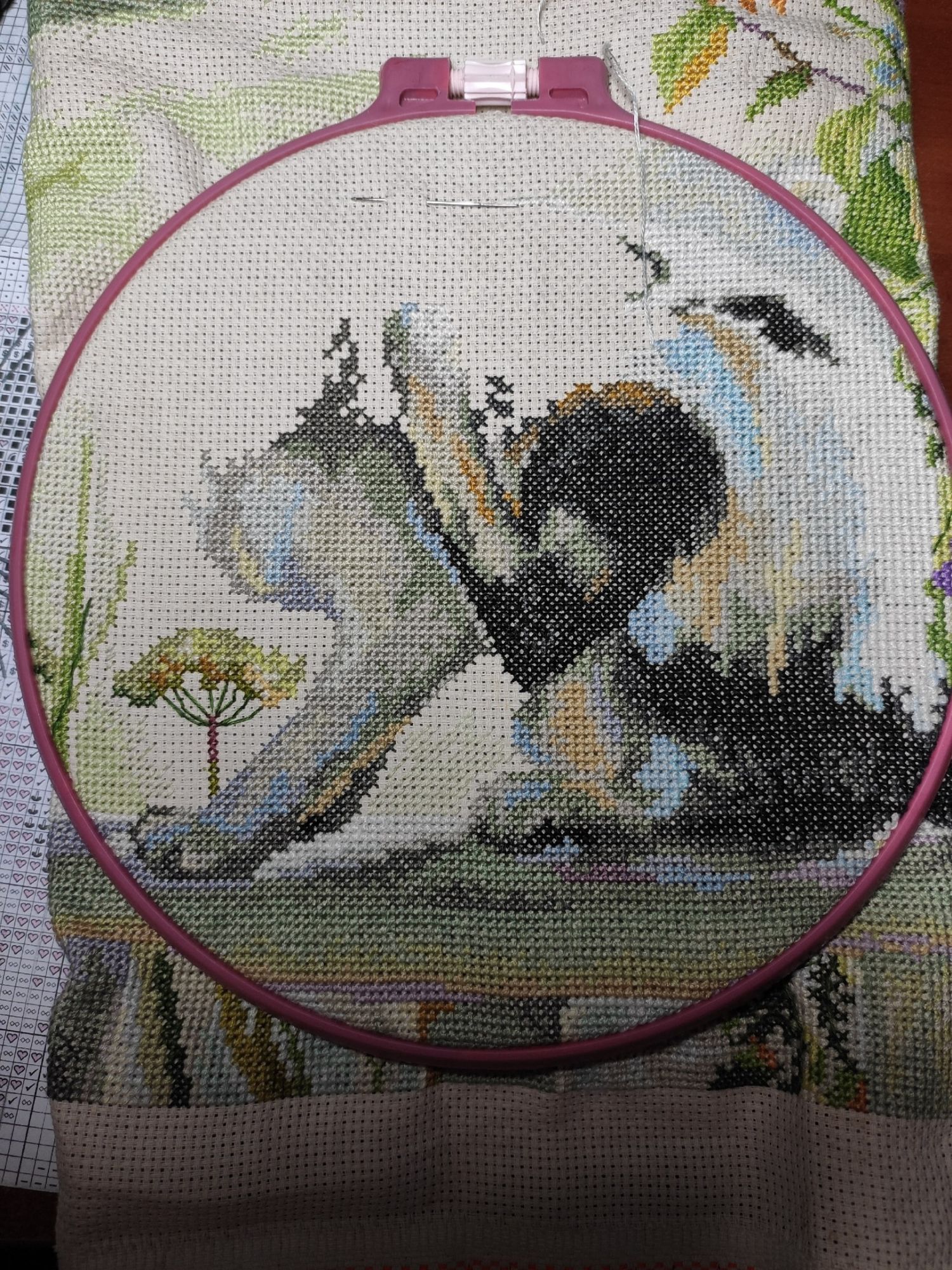 16 апреля 2020 Всем привет! Как-то незаметно для себя я опять потерялась на месяц Ругаю себя, но, видимо, недостаточно, кто бы еще по лбу периодически стучал , чтобы неповадно было лениться . Из-за долгого перерыва отчет будет довольно большой. Да и апрельское размножение меня не миновало . Но в свою пользу могу сказать, что мартовский план я выполнила в полном объеме: закончила рабочего кота и достигла экватора в карте. Кто молодец и заслужил начинания? Я - молодец! Итак, непосредственно к отчету. Начну с самой глобальной работы - с Карты. Как я уже упомянула - экватор! Ну, конечно, это если не вымерять с миллиметрической точностью , но я не стану, потому что перемотать вышивку на раме - это уже однозначно экватор! И далее - с чистого (упс, простите, грязного) листа Следующий процесс - приятное завершение! Ожидаемо закончен рабочий процесс (всего-то год и два месяца ) Красавчик! Пока лежит - я им любуюсь, а позже пойдет в рулончик - ждать сотоварищей, которых я надеюсь вышить в ближайшие 2-3 года (ну а вдруг ). А на работу ненадолго "устроилось" одно из апрельских начинаний. Представляю вам следующую футболку с очаровательным зверем от Жанны Дик ("Ехидность" из серии "Эмоции"). Футболка будет для Дарьи. Зверя она себе выбрала сама (и как мне кажется, абсолютно угадала ). Процесс весьма приятен и обещает стать недолгим (ибо заказчик торопит ). Решив продлить удовольствие от отшива схем Жанны Дик, я напросилась к дизайнеру на первоотшив вкусняшки. И следующий мой апрельский старт "Чай с зефирками". Шью на Белфасте сливочного оттенка. Даже начало отшива вызывает невероятно вкусные карамельно-сливочные ассоциации. Но вдохновленная начинаниями вышивальных подруг (большой привет Асик @Каори и Оля @OlkaY! ), я не могла остановиться всего на двух новых процессах, поэтому продолжаю. Не миновало меня очарование рыжеволосыми милыми девочками Виктории Ивченко. В перспективе подружек будет три, а пока "Зайкина любовь" Шью на молочной Мурано Splash. Запутываюсь в огненной копне кучеряшек Ох, остановиться бы... Но "Остапа понесло...". Радует, что два заключительных начинания обещаю сразу стать завершениями. Хоть я не имею никакого отношения к празднованию Пасхи, но нарядная атрибутика не оставляет меня равнодушной, а потому к празднику вышивается яичко и подставка под него. Мое знакомство с производителем "Волшебная страна" - подставка для пасхальных яиц Курочка Процесс получился практически стремительный и очень приятный (видимо, соскучилась по бисеру ) Осталась сборка, но это очень легко, так что подставка к празднику однозначно будет готова. И яйцо пасхальное "Капучино" от Риолис. Вышивается через одну нитку на Лугане. Надо признаться, что удовольствие сомнительное, поэтому ковырялась я с ним довольно долго для такой малявочки - полных три недели. Но я победила! И здесь тоже осталась сборка. Так что, надеюсь, у меня в воскресенье получится красивая картинка. Ура! Это все. На самом деле просто закончились свободные пяльцы Еще три процесса полностью подготовленные ждут своего часа. Но это уже история для другого отчета Juliay, maui, Путешественница и 32 других сказали спасибо Поделиться сообщением Ссылка на сообщение