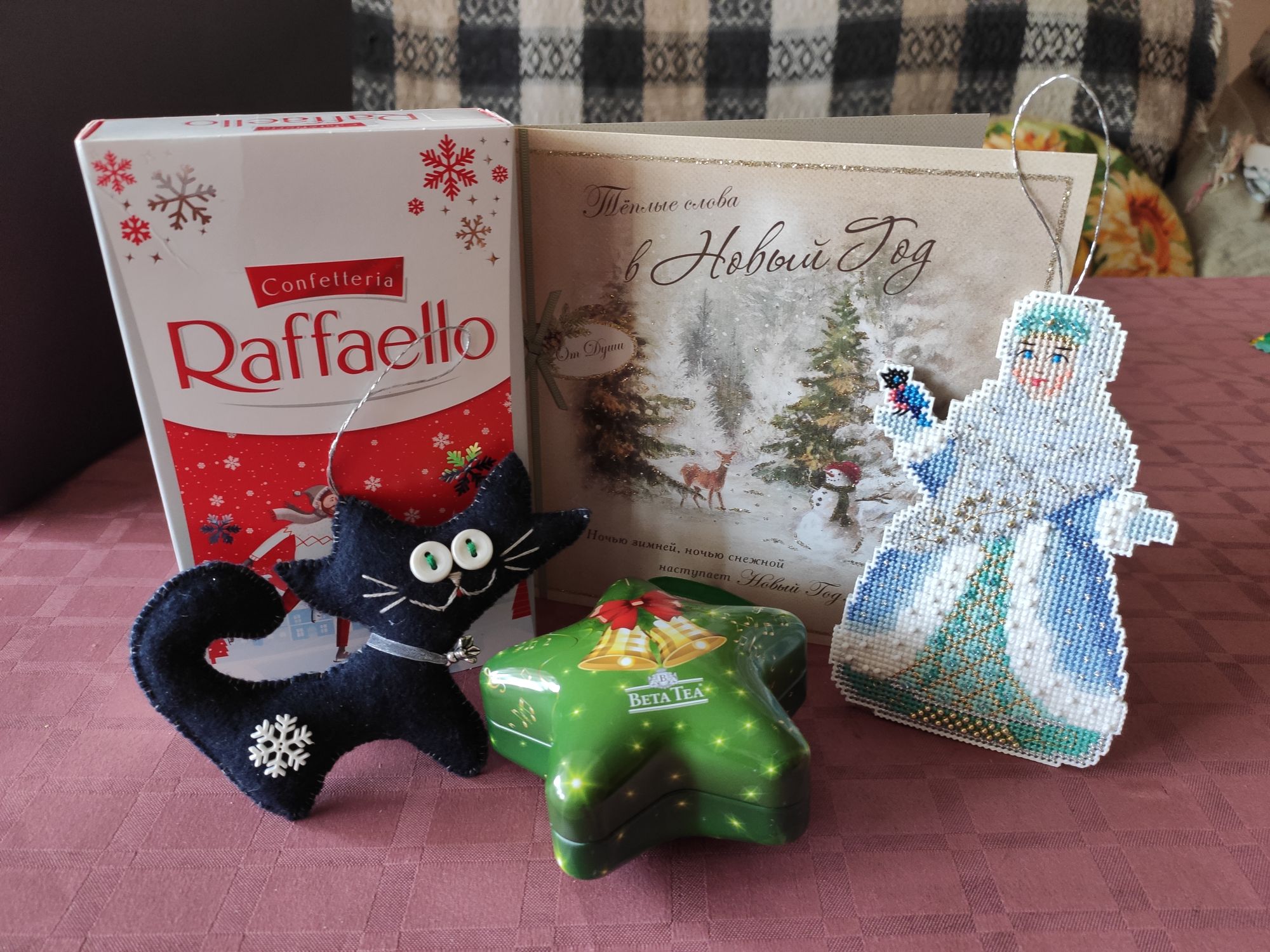 12 декабря 2020 Всем привет! Чтобы не пропадать надолго, я собрала остатки совести в кулачок и села писать отчет . Во-первых, я закончила лилово-грозовой период, дошив закладку с маяком: Процесс несложный, довольно приятный. Поскольку работа небольшая, то почувствовать раздражение от скатывающихся ниток я не успела, а значит осталась всем довольна. Постирать-погладить, каюсь, руки пока не дошли, так как отвлеклась на небольшой секретный процесс, который покажу позже (он же секретный! ). После секретного процесса с удовольствием начала (ну да, опять начала , все текущие процессы, по-прежнему скучают без внимания) веселую зимнюю картинку по схеме Надежды Нагорной Happy Winter. Шью на Мурано Splash цвет 5429 (ну да, ленюсь шить одиночные крестики снежинок ) На настоящий момент готовы два веселых зайчика и сааамый кончик слоновьего хвоста А еще произошло приятное событие - ко мне вернулся мой мышиный робин! Он еще требует доработки, но уже сейчас понятно, что получилось забавно и очень симпатично! Вместе с робином приехали приятные и душевные подарочки (ну конечно же с кошками!) от Оли @OlkaY: Особенно приятно, что листик с ягодами и кофейные зернышки для маячка Оля сделала сама! Не счесть талантов в этих золотых руках. Оленька, я в восхищении! Пользуюсь маячком и магнитиком с особенным удовольствием Вот и вся вышивальная часть на сегодня. О житейском... Ребенок Даша дома. Жизнь течет в привычном русле: мотает нервы, не спит ночами, зато спит почти весь день, гуляет с друзьями-подругами, когда-то в перерывах между сном и прогулками успевает учиться Бабушка с дедом сумели заманить ее в гости на чебуреки, запечатлев этот уникальный момент в фотосессии На этой вкусной ноте заканчиваю отчет. Всем всего самого доброго! Каори, masha-vyshivasha, Хельга и 30 других сказали спасибо Поделиться сообщением Ссылка на сообщение