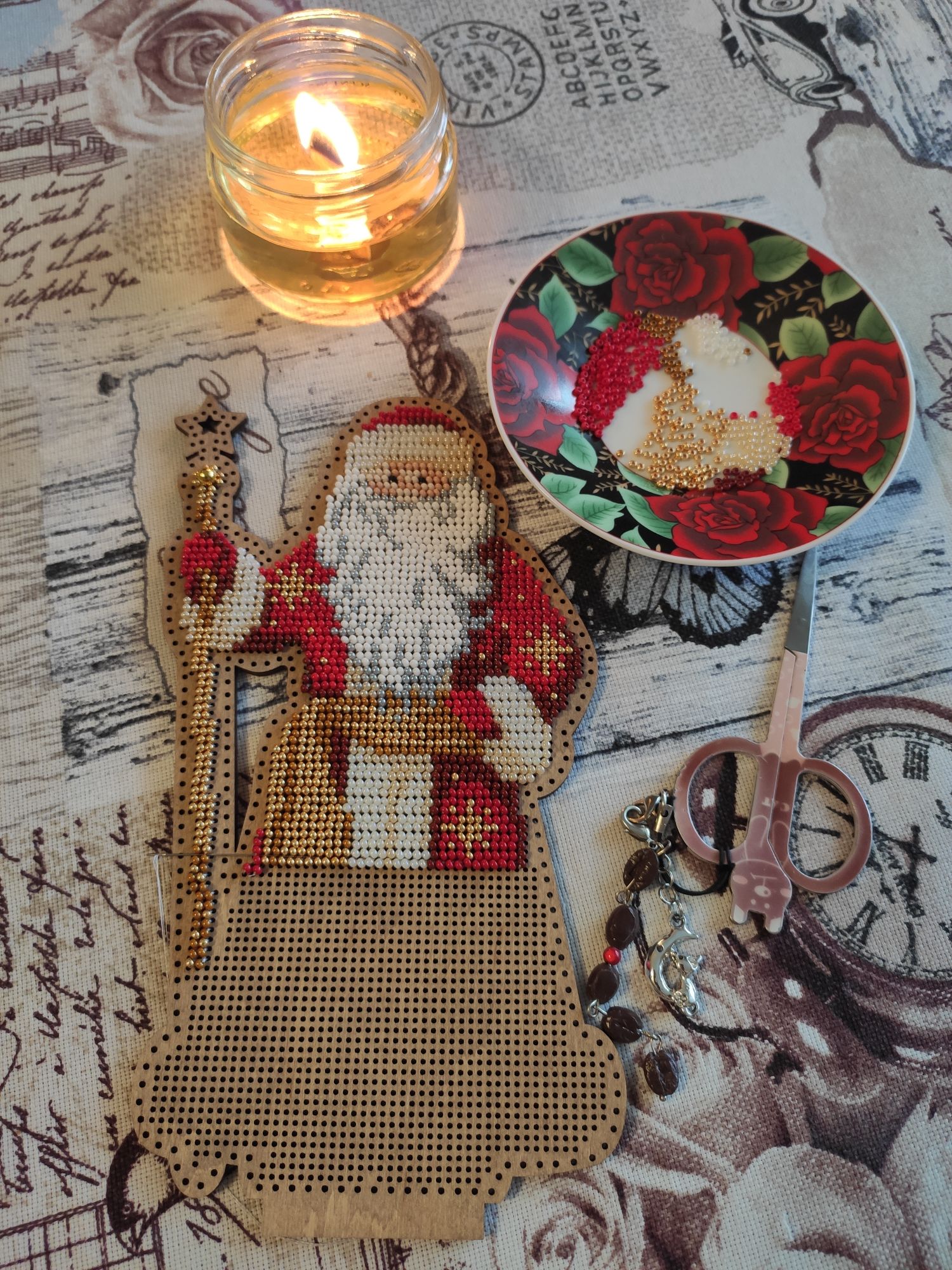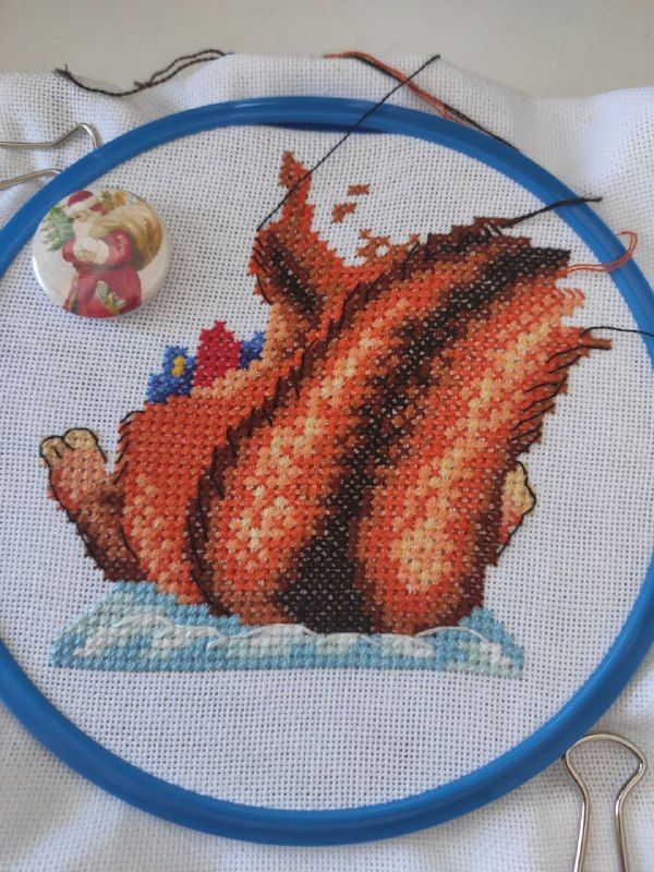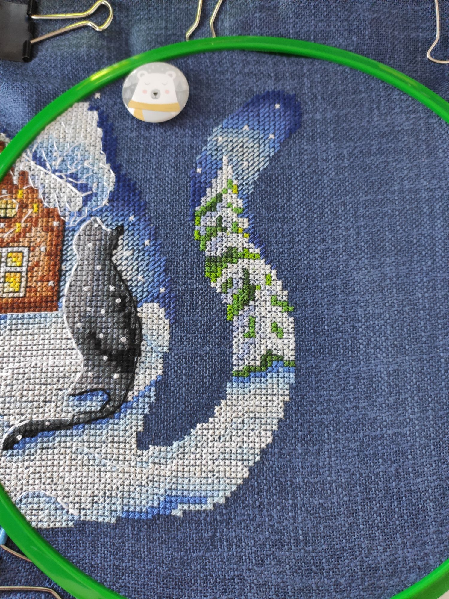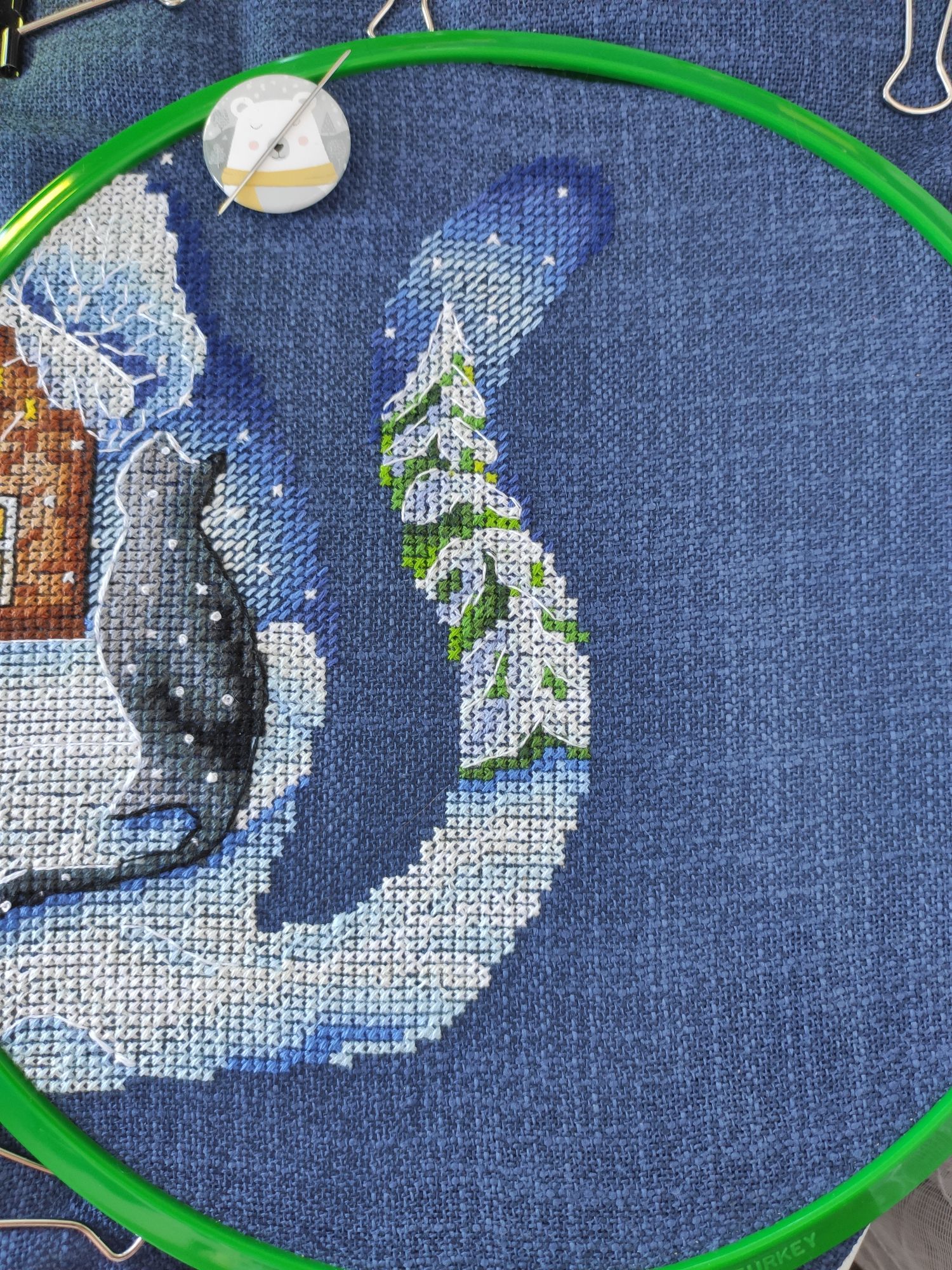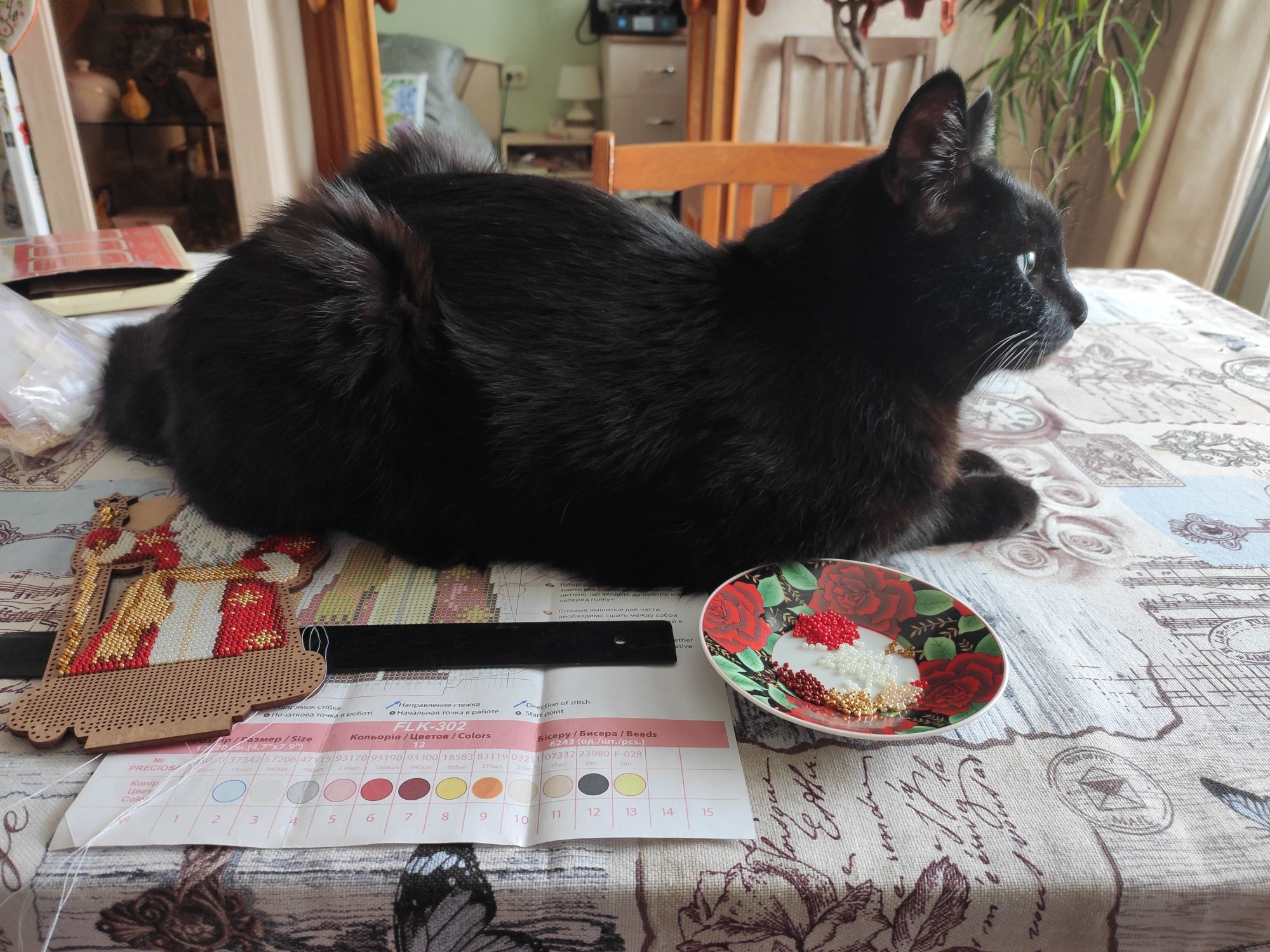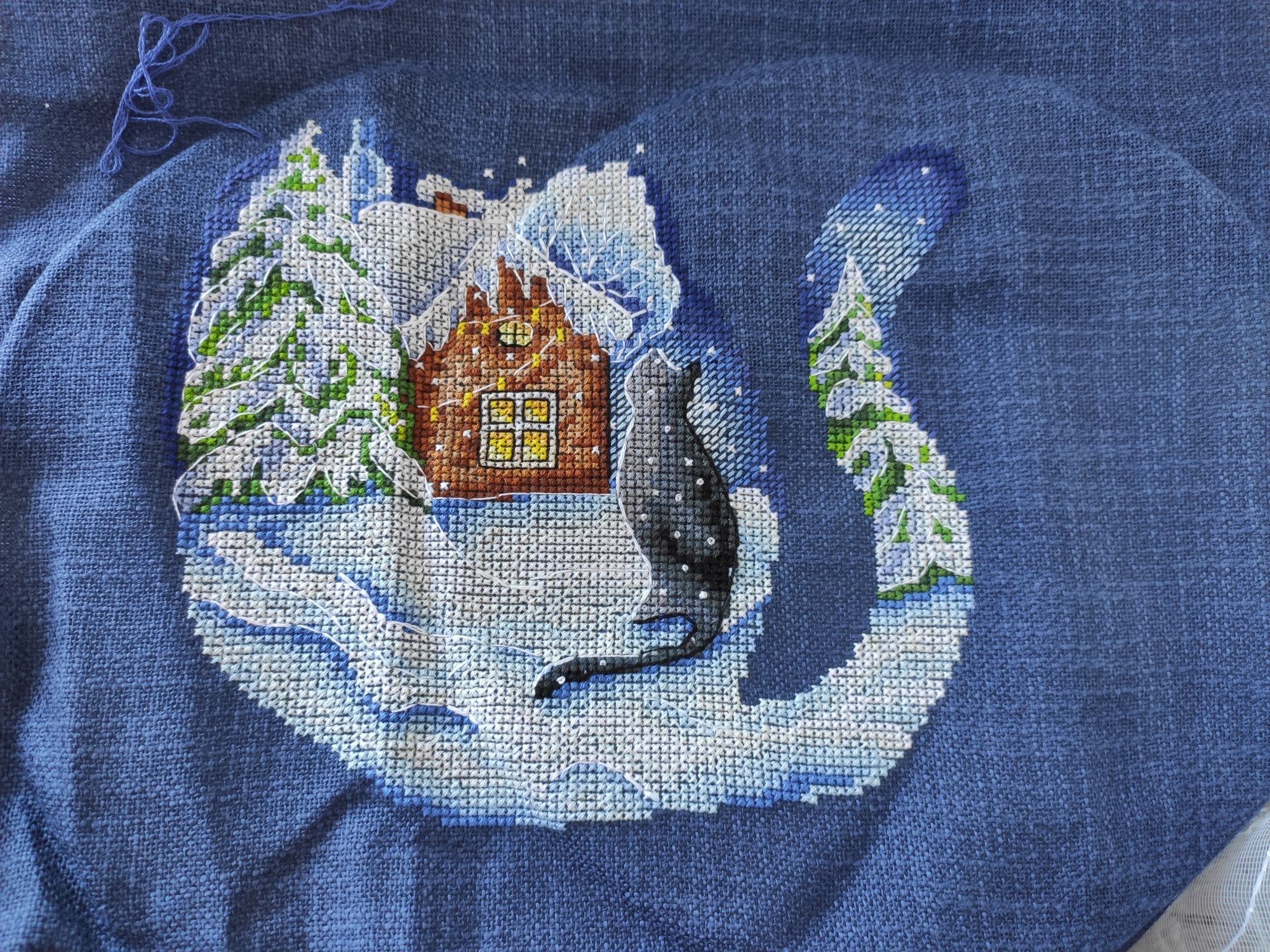 29 января 2022 Всем привет! Я пришла с обещанным отчетом! Последние пару месяцев можно назвать очень вышивальными. Вернулся активный интерес, и, разумеется, сразу появилось время для вышивки. Январские каникулы на работе позволили наконец-то закончить небольшой процесс, начатый летом 2020 Итак, первое завершение 2022 года - Алиса, Октябрь в городе завершающее фото процесса и очаровательный результат С оформлением пока подожду. Не смогли с Женей прийти к согласию насчет места дислокации этого пейзажа в условиях уже изрядно завешеной вышивками квартиры Завершение бисерной лошадки от Волшебной страны не смогло унять бисерный зуд и следом за ней был извлечен из закромов роскошный Дед Мороз (Волшебная страна FLK-302) Так как в "елочной фотосессии" приняла участие только лицевая сторона, сегодня Дед Мороз был выгулян на свежий снежок под настоящие елки. Фотосессия прошла под девизом: "Мороз-воевода дозором обходит владенья свои..." И покажу с какими сложностями мне приходилось сталкиваться при вышивке такого интересного процесса: "Сложность" громоздился на стол и накрывал своей тушкой схему. Приходилось дожидаться, когда его кошачья бессовестность захочет сменить жесткий стол на мягкую подушечку Ну и чтобы мне окончательно насладиться удовольствием от общения с Волшебной страной, следом за Дедушкой в дело пошла Феечка (Волшебная страна FLK-282), украсившая собой подушечку для иголок. Феечка оказалась настолько милой девочкой, что мне захотелось украсить процесс ее появления на свет цветами (благо "оранжерея" позволяет ) Процесс оказался не просто быстрым, а буквально стремительным и теперь это очарование украшает мое вышивальное место: На этом "бисерный шторм" можно считать закрытым Но на волне пылкой любви к бисеру, крестики не остались обделены вниманием. На работу отправился один из моих "старейших" процессов - Окнеас Алиса #12812, Осеннее настроение. В процессах он "числится" с 2016 года, но за это время нисколько не разонравился, а значит, необходимо дать ему шанс завершиться. Чтобы напомнить, что имелось на момент забвения, выкладываю фото было/стало (свежее фото темновато, но это реалии вышивки в ночную смену ) Возобновление вышивки и получение удовольствия от процесса стало возможно во многом благодаря Саге. Не уверена, что смогла бы победить столь многоцветную вышивку со своим нынешним зрением, а электронный формат - ура! - вернул очень красивый процесс из забвения. И конечно, как же без нового процесса! Ну-да, ну-да, начатых не хватает... Я очень люблю котов на картинах Татьяны Хазовой. На глаза довольно давно попала схема по одной из таких картин, созданная дизайнером Инной Байденко (cabrin) Останавливал только весьма внушительный размер вышивки 215х269 крестиков. Но перед новым годом дизайнер в своей группе в ВК собрала совместник с весьма мягкими условиями. Устоять я не смогла, поэтому представляю вам новый процесс: Зимний кот. Зашивка полная, в схеме используются только крестики и бэк, поэтому за основу взята Аида 16 ct. нитки традиционно СХС. Думаю, что процесс будет очень не быстрый, но СО вносит определенные обязательства, которые, надеюсь, будут меня стимулировать. На этом вышивальную часть можно считать закрытой. А теперь поделюсь своими (и не только своими) приятностями. На Новый год от мужа был получен такой приятный сердцу вышивальщицы набор