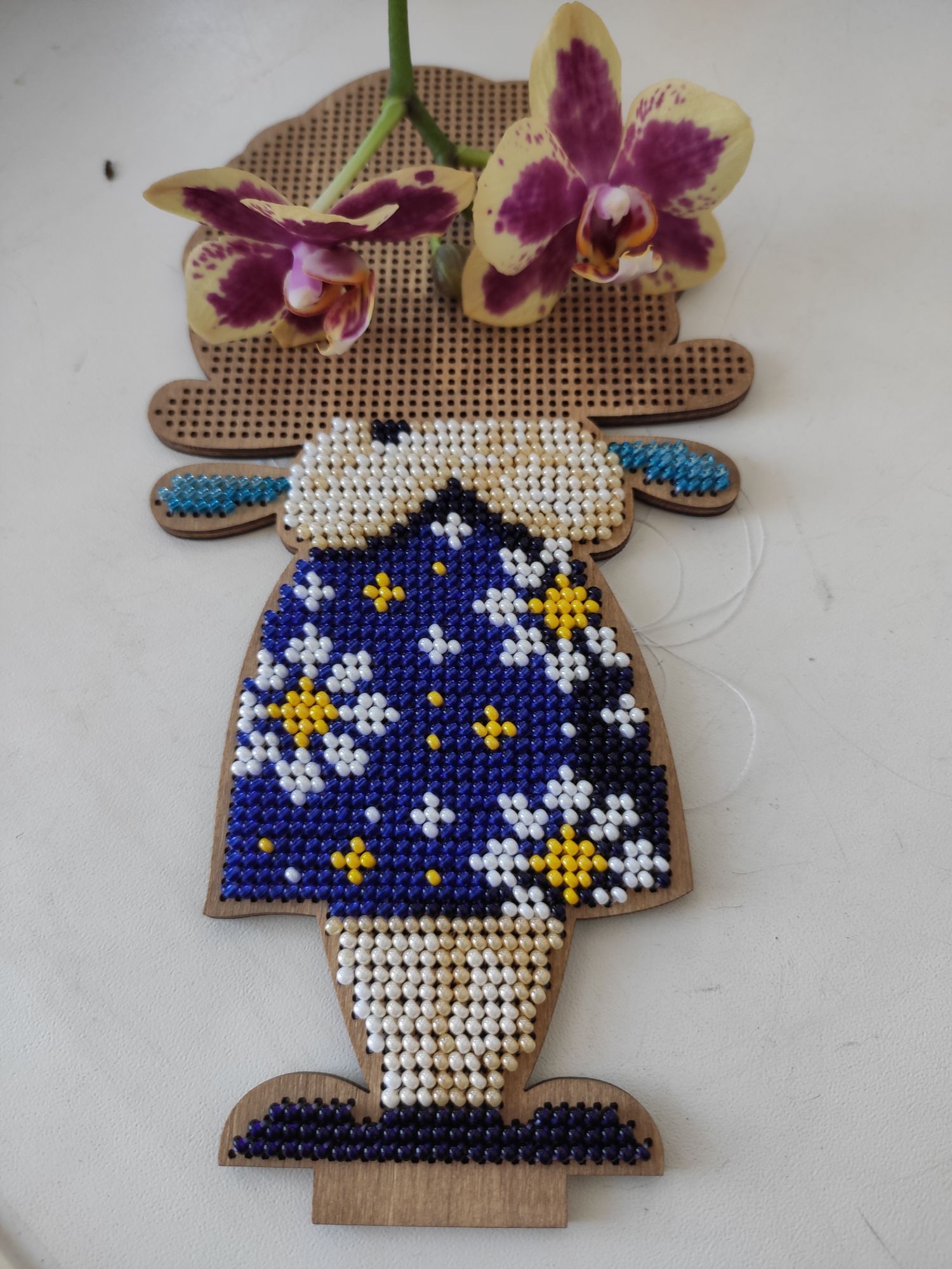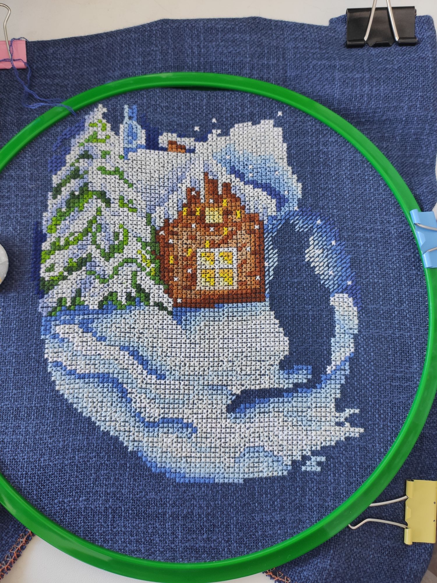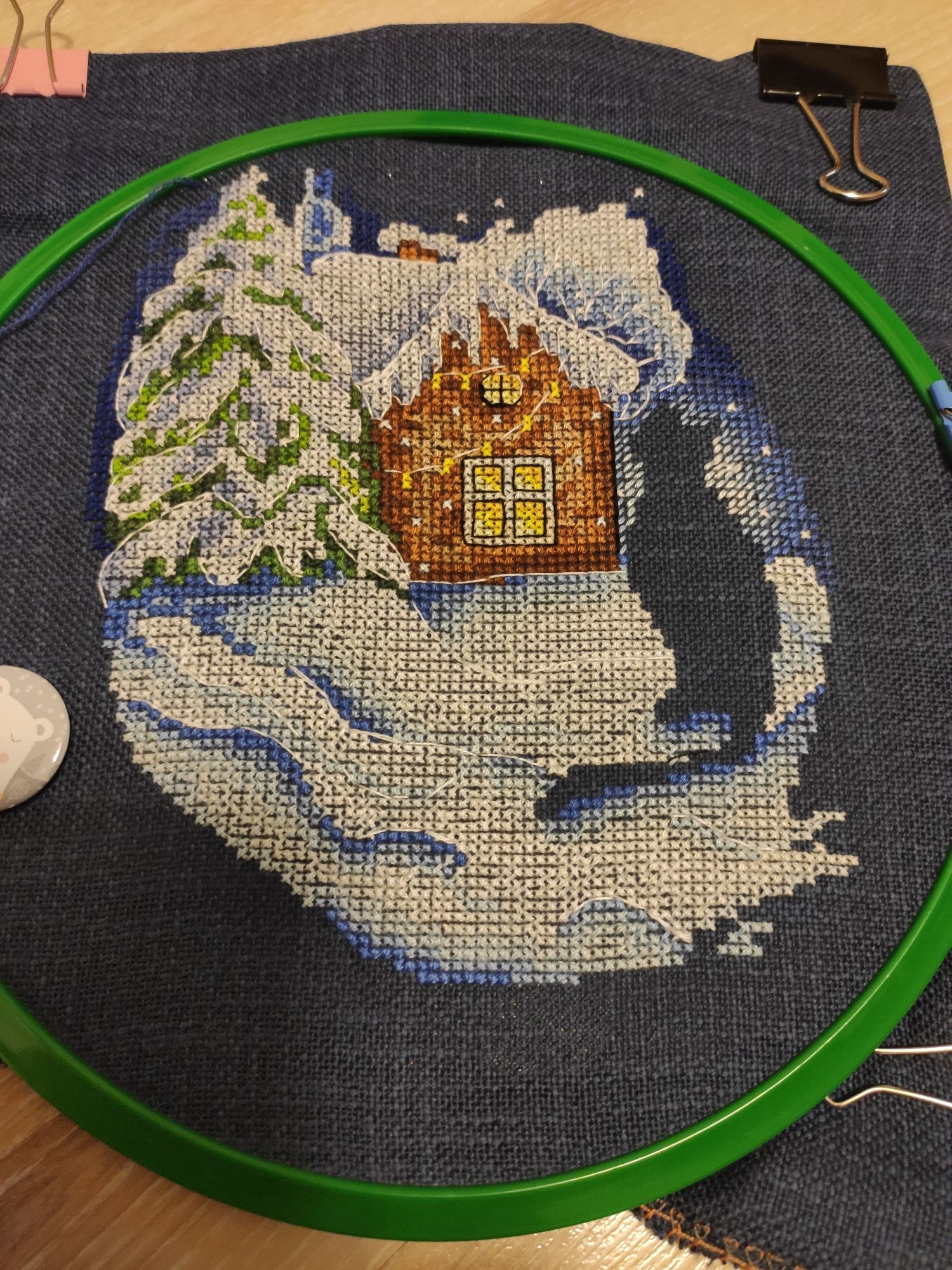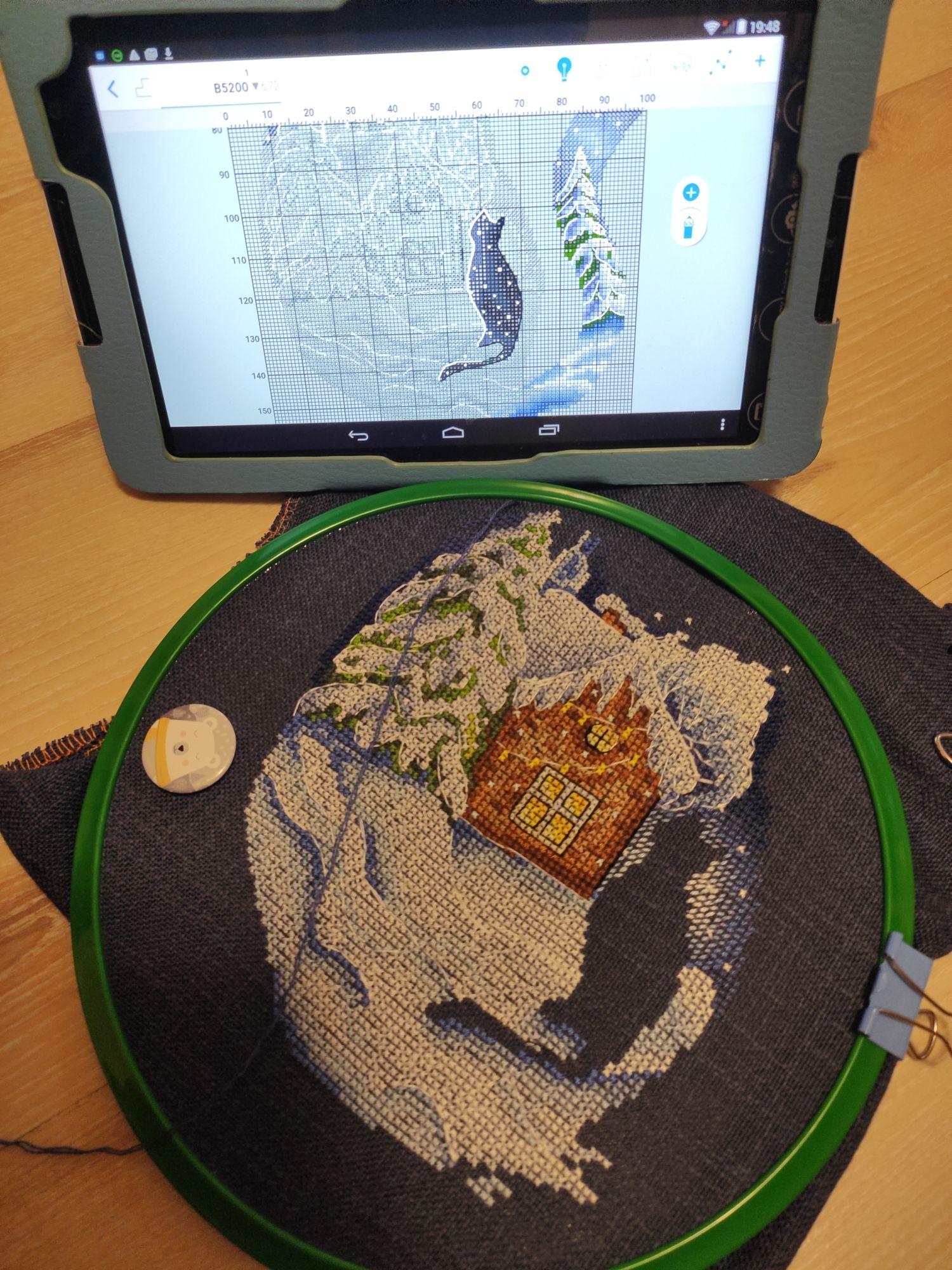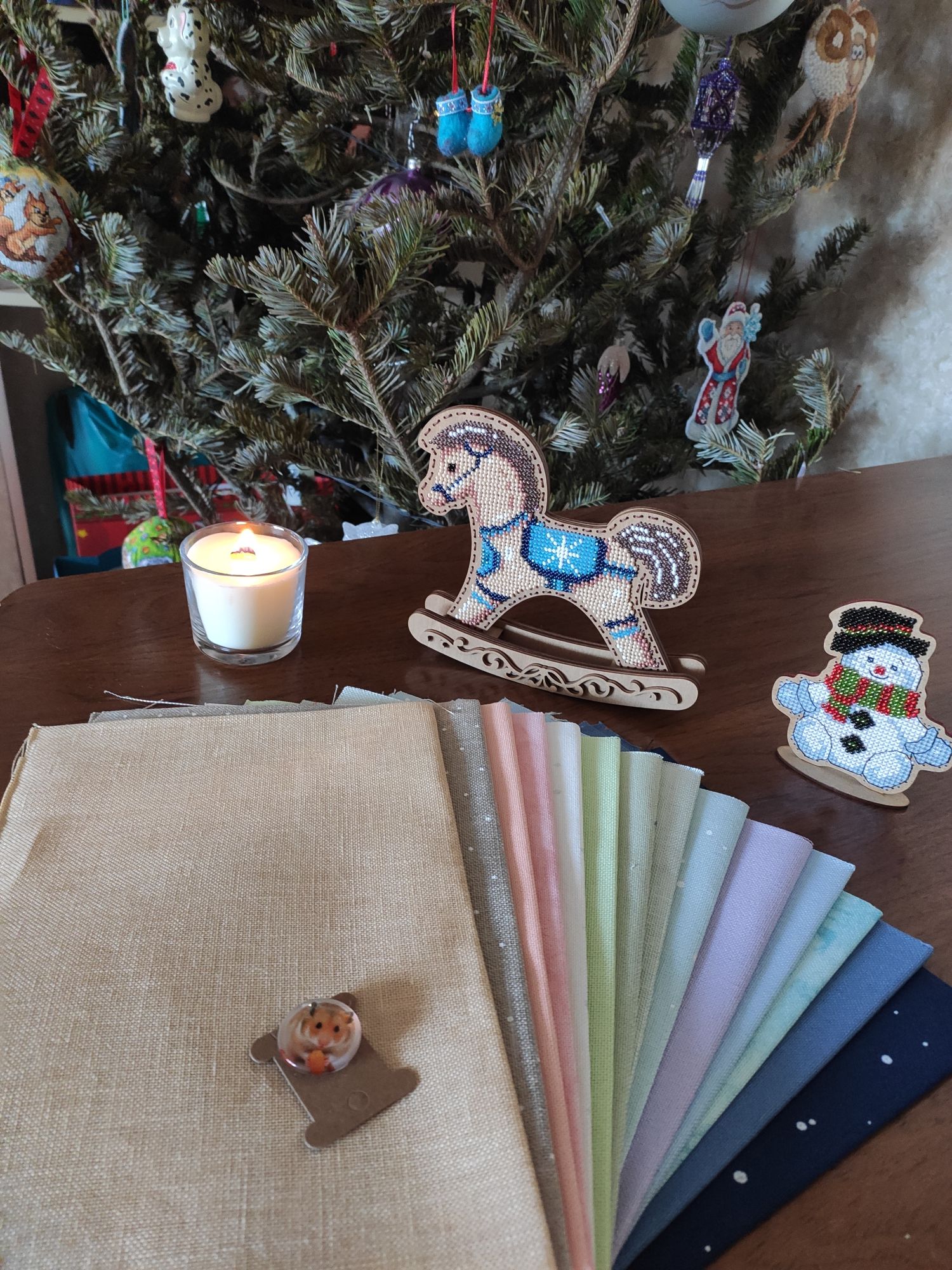 29 января 2022 Всем привет! Я пришла с обещанным отчетом! Последние пару месяцев можно назвать очень вышивальными. Вернулся активный интерес, и, разумеется, сразу появилось время для вышивки. Январские каникулы на работе позволили наконец-то закончить небольшой процесс, начатый летом 2020 Итак, первое завершение 2022 года - Алиса, Октябрь в городе завершающее фото процесса и очаровательный результат С оформлением пока подожду. Не смогли с Женей прийти к согласию насчет места дислокации этого пейзажа в условиях уже изрядно завешеной вышивками квартиры Завершение бисерной лошадки от Волшебной страны не смогло унять бисерный зуд и следом за ней был извлечен из закромов роскошный Дед Мороз (Волшебная страна FLK-302) Так как в "елочной фотосессии" приняла участие только лицевая сторона, сегодня Дед Мороз был выгулян на свежий снежок под настоящие елки. Фотосессия прошла под девизом: "Мороз-воевода дозором обходит владенья свои..." И покажу с какими сложностями мне приходилось сталкиваться при вышивке такого интересного процесса: "Сложность" громоздился на стол и накрывал своей тушкой схему. Приходилось дожидаться, когда его кошачья бессовестность захочет сменить жесткий стол на мягкую подушечку Ну и чтобы мне окончательно насладиться удовольствием от общения с Волшебной страной, следом за Дедушкой в дело пошла Феечка (Волшебная страна FLK-282), украсившая собой подушечку для иголок. Феечка оказалась настолько милой девочкой, что мне захотелось украсить процесс ее появления на свет цветами (благо "оранжерея" позволяет ) Процесс оказался не просто быстрым, а буквально стремительным и теперь это очарование украшает мое вышивальное место: На этом "бисерный шторм" можно считать закрытым Но на волне пылкой любви к бисеру, крестики не остались обделены вниманием. На работу отправился один из моих "старейших" процессов - Окнеас Алиса #12812, Осеннее настроение. В процессах он "числится" с 2016 года, но за это время нисколько не разонравился, а значит, необходимо дать ему шанс завершиться. Чтобы напомнить, что имелось на момент забвения, выкладываю фото было/стало (свежее фото темновато, но это реалии вышивки в ночную смену ) Возобновление вышивки и получение удовольствия от процесса стало возможно во многом благодаря Саге. Не уверена, что смогла бы победить столь многоцветную вышивку со своим нынешним зрением, а электронный формат - ура! - вернул очень красивый процесс из забвения. И конечно, как же без нового процесса! Ну-да, ну-да, начатых не хватает... Я очень люблю котов на картинах Татьяны Хазовой. На глаза довольно давно попала схема по одной из таких картин, созданная дизайнером Инной Байденко (cabrin) Останавливал только весьма внушительный размер вышивки 215х269 крестиков. Но перед новым годом дизайнер в своей группе в ВК собрала совместник с весьма мягкими условиями. Устоять я не смогла, поэтому представляю вам новый процесс: Зимний кот. Зашивка полная, в схеме используются только крестики и бэк, поэтому за основу взята Аида 16 ct. нитки традиционно СХС. Думаю, что процесс будет очень не быстрый, но СО вносит определенные обязательства, которые, надеюсь, будут меня стимулировать. На этом вышивальную часть можно считать закрытой. А теперь поделюсь своими (и не только своими) приятностями. На Новый год от мужа был получен такой приятный сердцу вышивальщицы набор