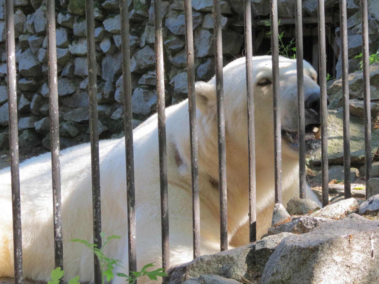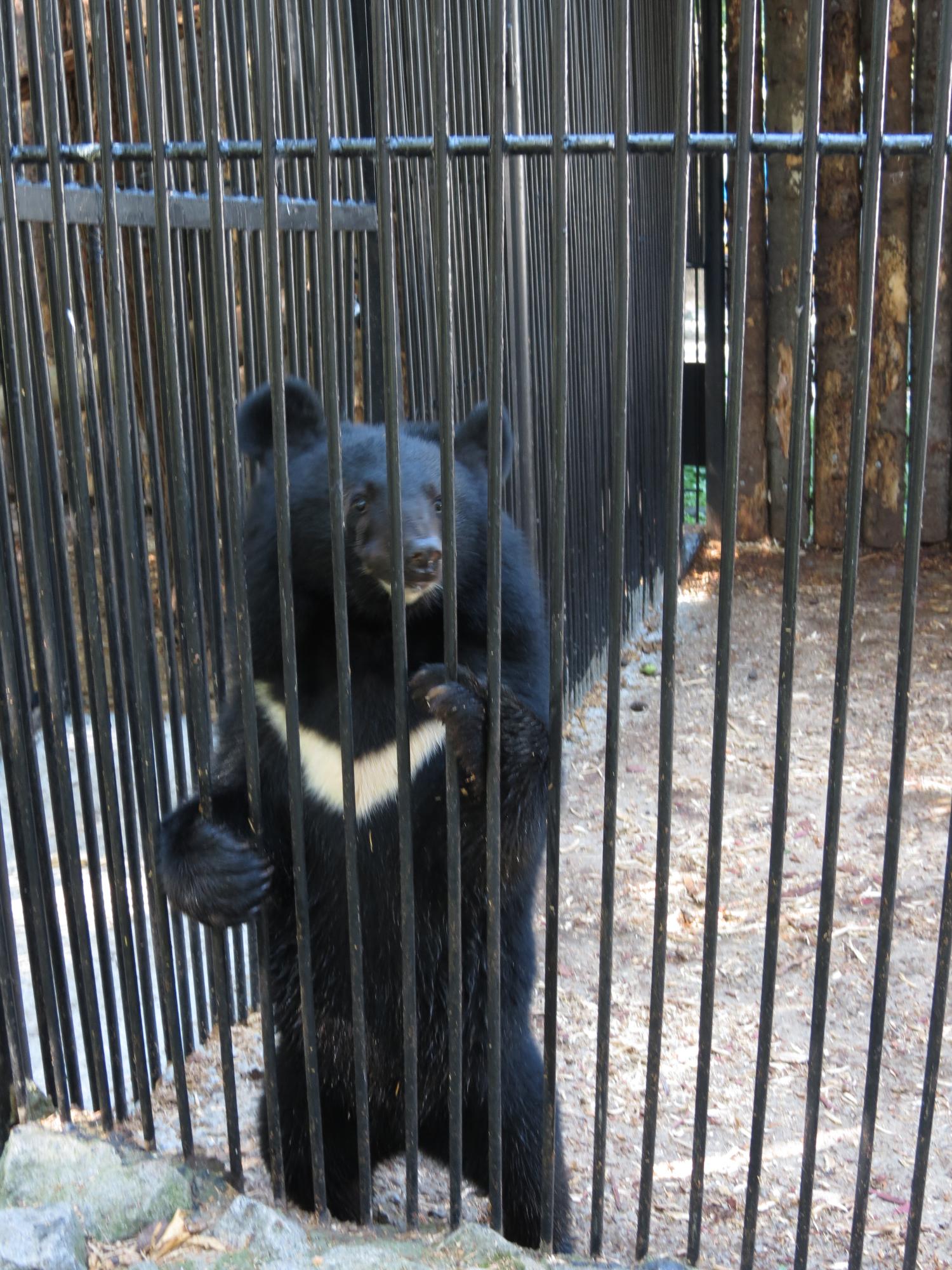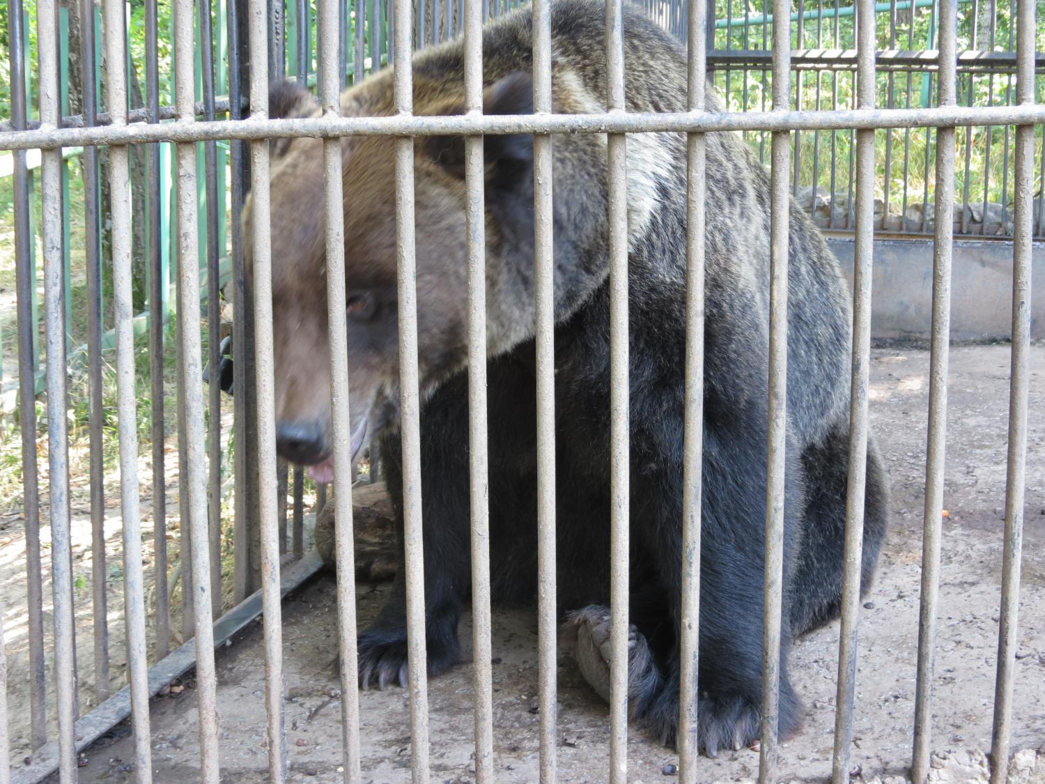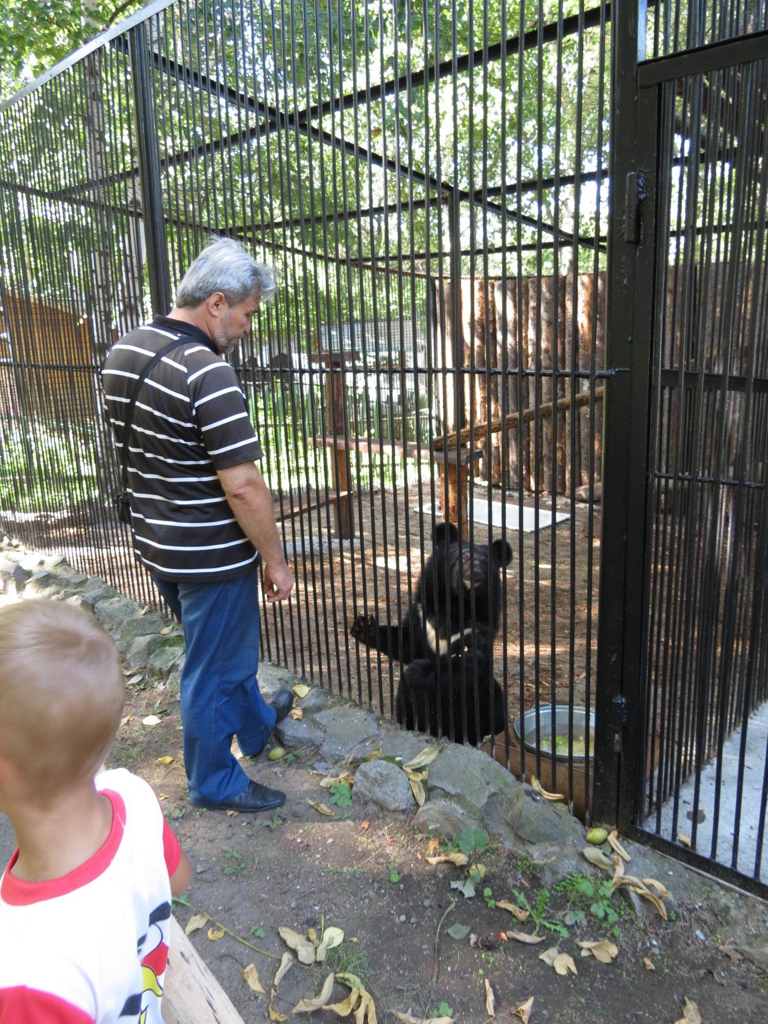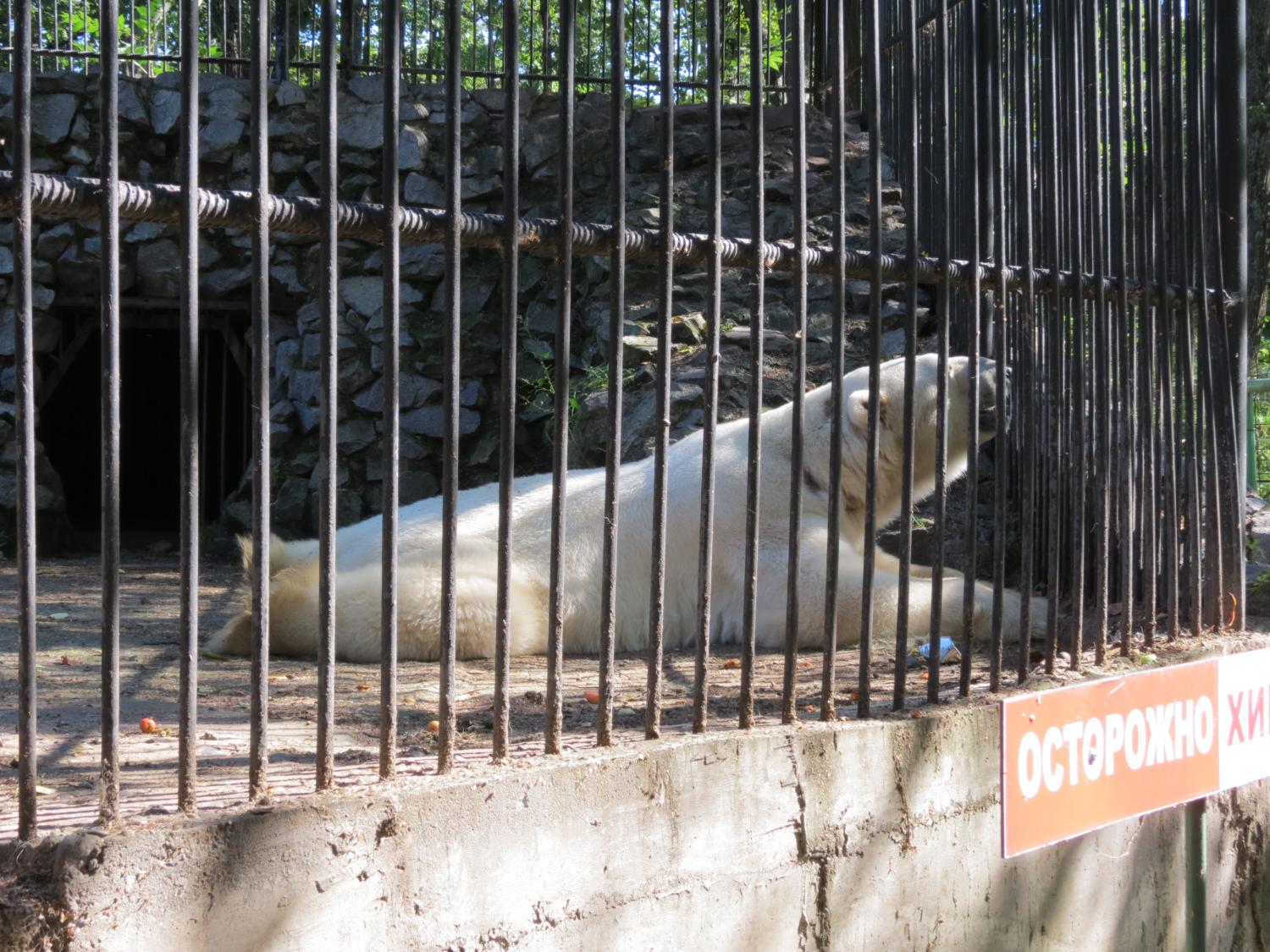 30 августа 2014 Дальше - медведи. Бурые толстяки Маша и Балу "батонились" в собственной кормушке и только лениво загребали лапой орехи, которые кидали им дети: Специально сфотографировала их вольер, чтобы не возникло впечатления, что мишки заперты в тесной клетке. У них есть собственный прудик, разные "лазилки" и две берлоги. Хотя спят они всегда в одной и весной после спячки каждый год выходят с одним-двумя детками. Вот одна из их деток, дашина тезка и любимица: А это чудо - маленькая гималайская мишка Слава. Малышку в этом году подарил зоосаду Грубернатор Хабаровского края, в честь которого ее и назвали. Пока мы любовались на это косолапое очарование, к нам подошел сотрудник зоосада, рассказал нам про нее и малышка с огромным удовольствием попозировала рядом со знакомым ей человеком: А это вольер с остальными гималайскими мишками, но они категорически отказались нам позировать. И просто кусочек дальневосточной красоты - лиственница, обвитая виноградом и неожиданный посетитель: niksi, Nat717, Человек и 16 других сказали спасибо Поделиться сообщением Ссылка на сообщение