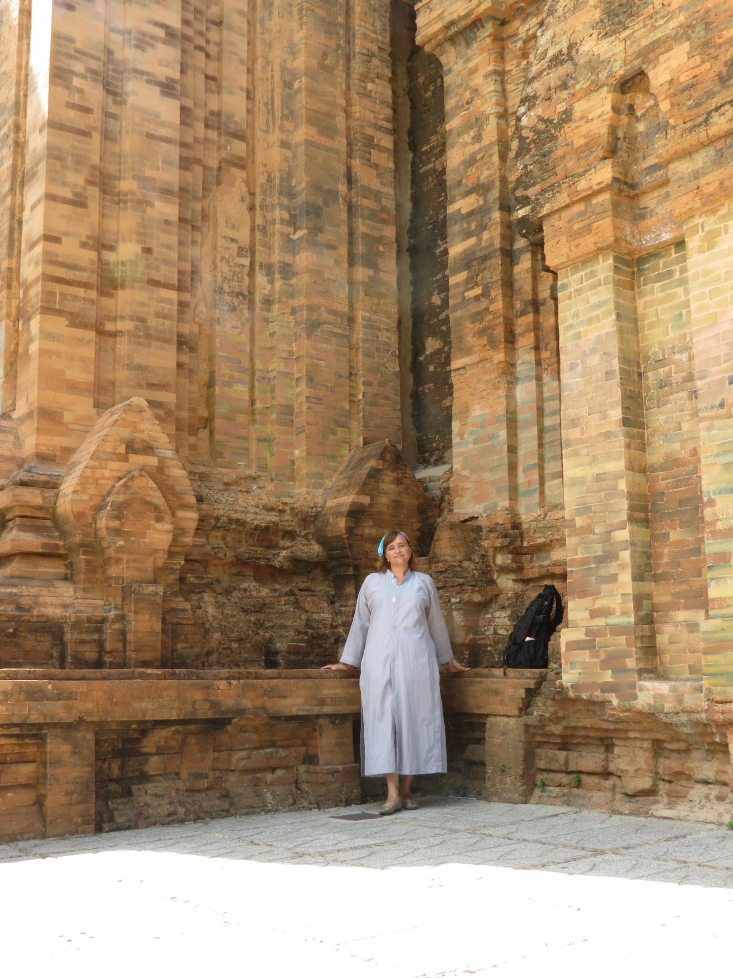 3 октября 2014 На следующий день, сориентировавшись на местности мы устроили себе частичную "обзорную экскурсию". Сели на местный автобус и поехали к нежно мною любимым древностям. Башни По Нагар в Нячанге - это индуистские и буддистские храмы, построенные во время существования княжества Чампа (7-12 века нашей эры). Именно поэтому башни еще называют чамскими или тямскими. Как религиозные объекты они действуют до сих пор, несмотря на то, что Вьетнам - социалистическая республика и более 80% населения здесь атеисты. Башни были построены в честь богини По Нагар. Ее имя переводится как «Мать страны». В настоящее время сохранились 4 башни. В двух башнях сохранились древние символы объединения мужского и женского начала, сиречь плодородия. Существует поверие, что если в соответствующей башне (мужская с воином и слоном, а женская с лотосом) потереть соответствующий символ, то богиня непременно одарит ребенком соответствующего пола. Башни - священное место, поэтому недопустимо посещать их с оголенными плечами и коленками. Конечно я была в чисто символических шортах, поэтому мне было предложено облачиться в специальную храмовую одежду. Территория храмового комплекса расположена на горе, с которой открывается потрясающий вид на город и на место впадения реки Кия в море. При моей любви к фикусам я увидела совершенно невероятный: И еще на территории проводятся мастер-классы по национальному ткачеству. Увы! Мастерицы на месте не оказалось. Путешественница, Лена1973, Каори и 17 других сказали спасибо Поделиться сообщением Ссылка на сообщение