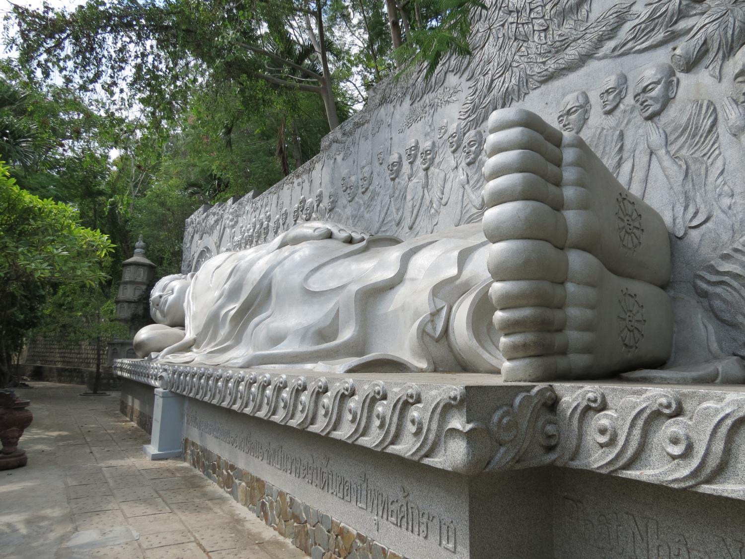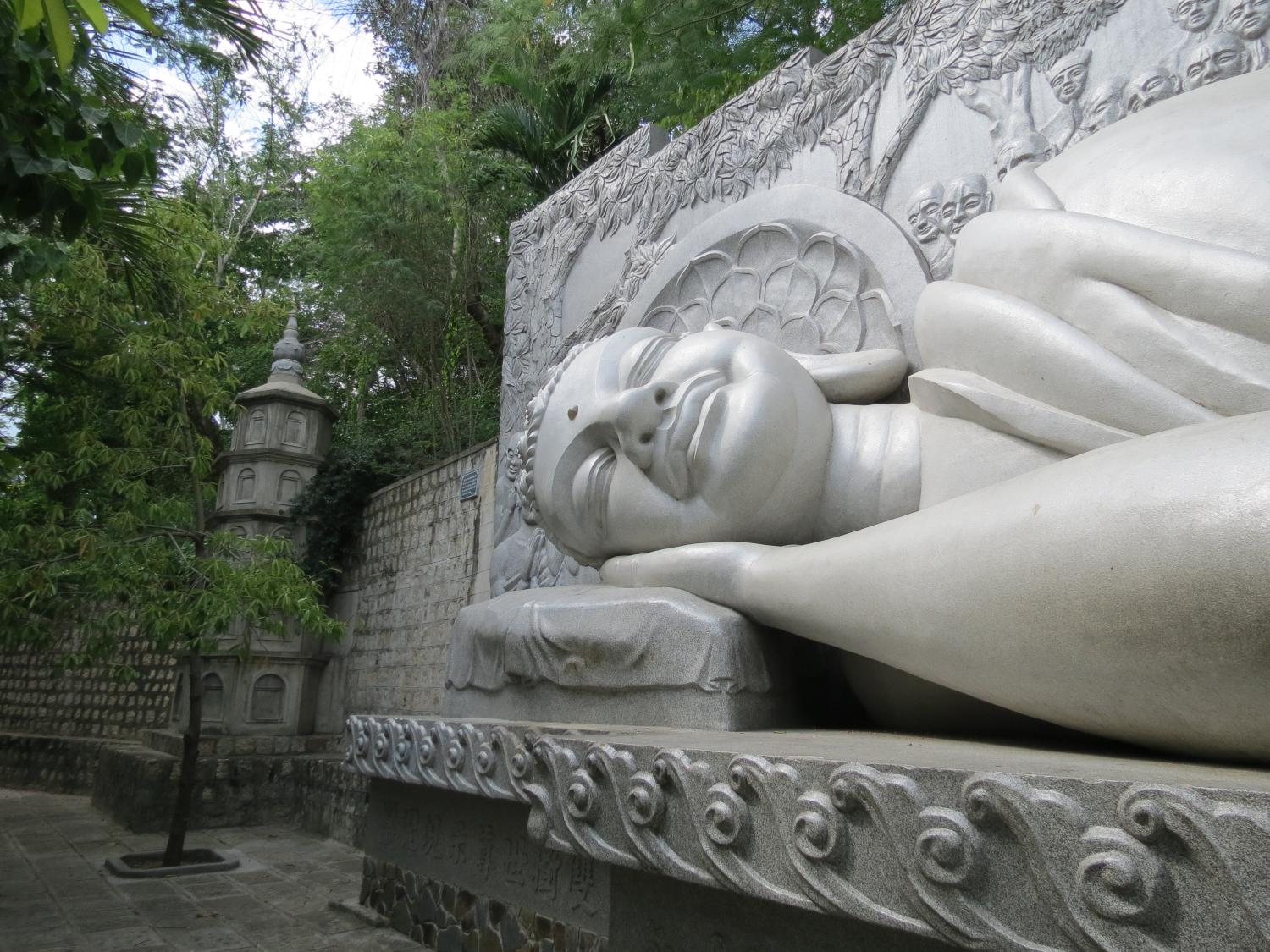 4 октября 2014 с нетерпением жду продолжения! а храмовый наряд очень даже тебе к лицу))) Спасибо, Наташ Ну да, "Красота - это стрррашная сила!..." Итак, продолжаю. Хоть официальная статистика и говорит, что 80% вьетнамцев атеисты, но на самом деле в стране великое множество религий, верований и конфессий. Это сообщений я посвящу третьему дню нашего пребывания в Ня Чанге. С утра, как и каждый день, до 11:00 провели на море. Куплена защита от солнца SPF 50, меньше нет смысла, так как солнце здесь, по отзывам, активнее тайского. И это еще при условии, что мы приехали с лета довольно темненькие, для белокожих продаются крема с SPF 70 и 90. Но это я отвлеклась. После моря мы опять сели на уже полюбившийся автобус и поехали далее на импровизированную "обзорную экскурсию". Сначала мы посетили Кафедральный собор Ня Чанга. Строительство собора было начато 3 сентября 1928 г. Архиепископ Луи Вале снес вершину скалы, взорвав на ней 500 мин, добившись тем самым плоской поверхности площадью в 4500 квадратным метров. Собор выдержан во французском готическом стиле с средневековыми витражами. Католицизм достался вьетнамцам вместе с колонизацией. Вьетнам был частью французской колонии Индокитай, в которую входили также Камбоджа, Лаос и южные провинции Китая. После Второй мировой войны в результате победы национально-освободительных движений на территории Французского Индокитая были образованы независимые государства Вьетнам, Камбоджа и Лаос. Но и сейчас во Вьетнаме видны очевидные следы пребывания французов, в чем еще нам предстоит убедиться. По ходу движения к Кафедральному собору мы увидели и сфотографировали еще один католический храм: После осмотра собора мы двинулись в сторону следующей религиозной святыни нерелигиозных вьетнамцев. Буддистская пагода Лонг Сон. Храм Лонг Сон построили еще в конце 19 века. Но стоял он совсем в другом месте, на другой горе. В 1900 году в Нячанге был грандиозный шторм, который разрушил самую большую пагоду в городе. Все, что осталось от Лонг Сона, перевезли на гору повыше и отстроили храм заново. Чтобы добраться до следующих реликвий поднимаемся по крутым лестницам. За одним из поворотов притаился, даже не слишком заметный вход к статуе лежащего Будды. veravas, Лена1973, niksi и 13 других сказали спасибо Поделиться сообщением Ссылка на сообщение