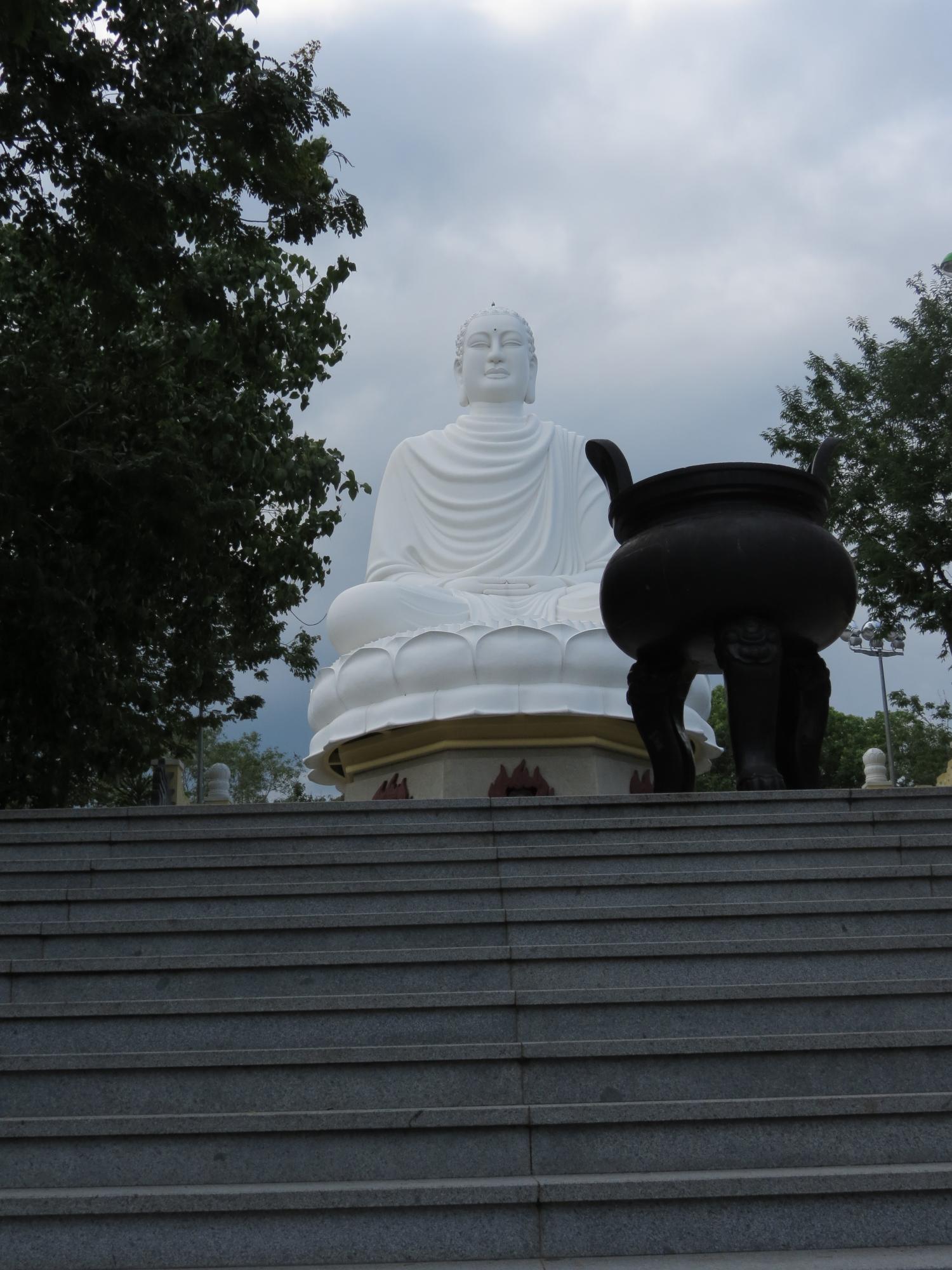 4 октября 2014 Еще небольшой рывок наверх и попадаем к колоколу. В буддистских традициях пишутся записочки с заветными желаниями, приклеиваются к внутренней стороне колокола и нужно ударить в колокол, чтобы привлечь внимание божества к вашим желаниям. Очень забавно наблюдать как наши "православные" наперегонки пишут желания и молотят по колоколу, искренне веря, что Будда именно их требованиям и окажет свою благосклонность. Еще ступеней 50 и мы на вершине горы у цели. Статуя Будды - 14 метров в высоту, плюс еще 24 метра - цветок лотоса, на котором сидит идол. После осмотра достопримечательностей, мокрые, как мыши, уставшие от всех восхождений, но довольные, опять же "макаемся" в море и двигаем на ужин. Немного о еде. Еда во Вьетнаме довольно простая, традиционный суп Фо - куриный или говяжий бульон, лапша, мясо, пророщенная соя и специи. Вкусненько, сытненько. Цена для туристов 40-50 тыс. донгов (80-100 руб.), а для местных в импровизированной столовке на улице 15-20 тыс. донгов - абсолютно идентичный суп, разница в условиях поедания: мы едим в кафе, за столом под вентилятором, а местные прямо на улице, на раскладной табуреточке, в тени раскидистого дерева. Для нелюбителей жидкого (это я), традиционно жареный рис или жареная лапша с курицей или мясом, для туристов - с морепродуктами. Опять же вкусно и сытно и цена такая же, как за суп. Так мы обедали, а вот на ужин предавались клинарному разврату: все возможные морепродукты, приготовленные, как правило, на гриле, со специями...мммм, необыкновенно вкусно! Здесь же упомяну фрукты. В принципе ничего для нас нового, все тоже любимое, как и в Таиланде. Масса удовольствия! И снова прервусь. Продолжение позже! Juliay, veravas, ГАЛИНА_С и 14 других сказали спасибо Поделиться сообщением Ссылка на сообщение