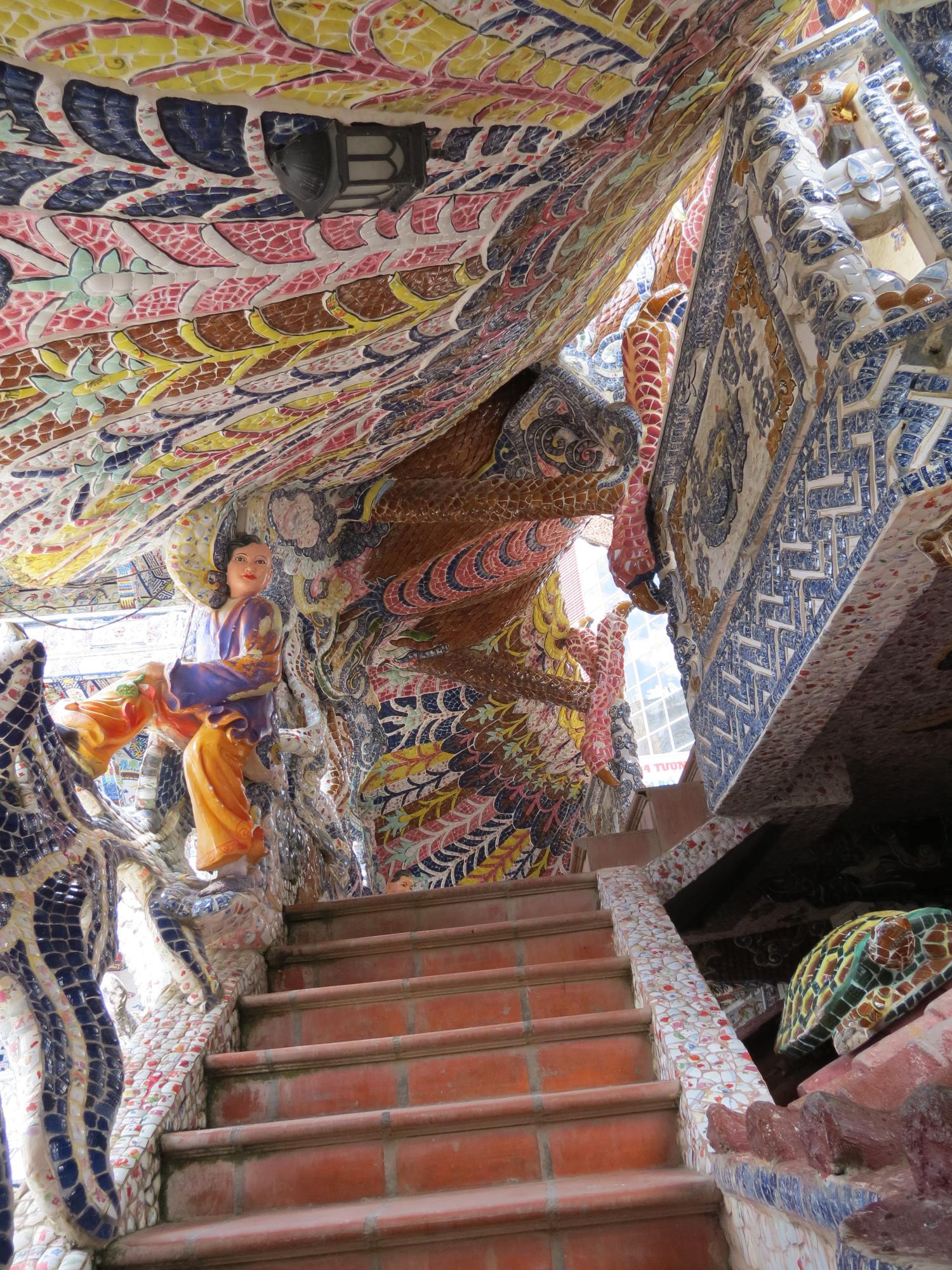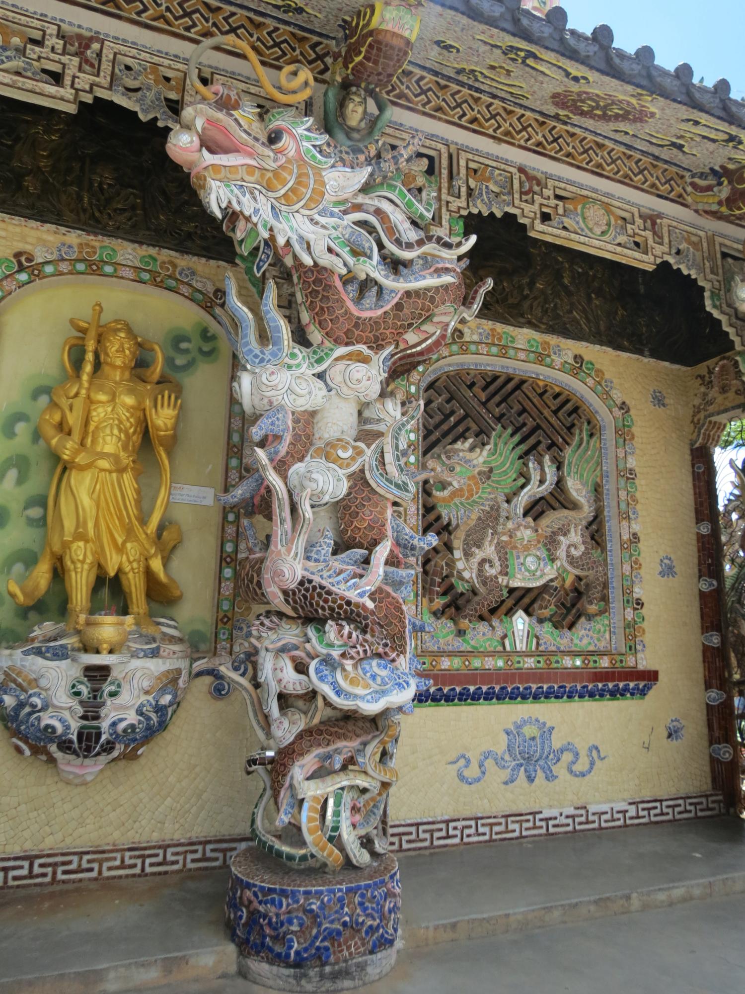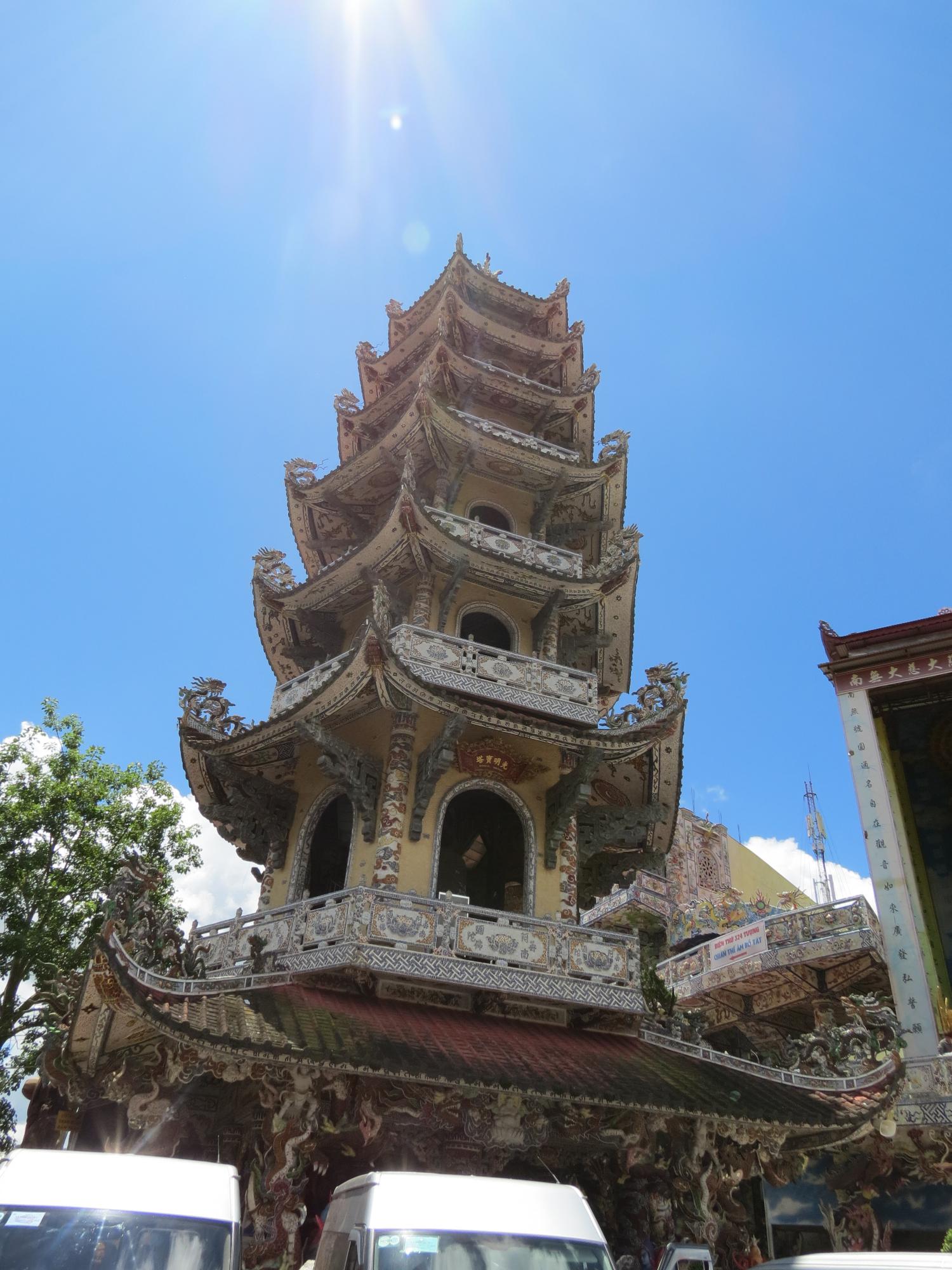 5 октября 2014 В 8-ми км от города нас привозят в очень интересную пагоду Линь Фуок. Пагода не старая, строительство начато в 1949 году и ведется поныне. Пагода особенно интересна тем, что она полностью облицована осколками стекла и фарфора. На территории пагоды в огромной нише установлена статуя какого-то божества (никак не могу вспомнить, какого именно ), высотой 12 метров, полностью покрытая цветками бессмертника. Разумеется мы с Женей полезли на самый верх самой верхней башни. И вот какой вид нам открылся. Лена1973, mrn1970, ГАЛИНА_С и 10 других сказали спасибо Поделиться сообщением Ссылка на сообщение