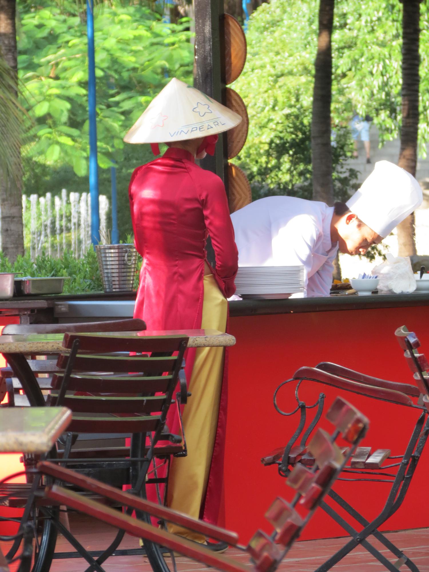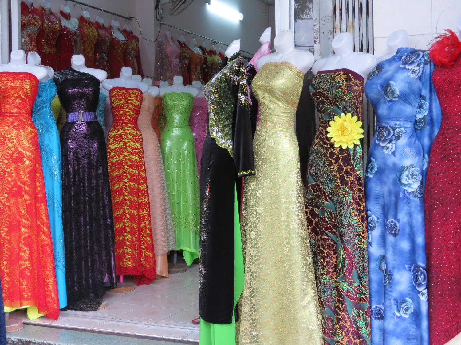 10 октября 2014 Аозай - традиционное вьетнамское одеяние, состоящее из брюк и длинной шелковой рубахи с разрезами от подмышек. Вот такое: Сейчас его носят в основном на разные официальные церемонии (свадьба, разные религиозные) и на работе, если требует дресс-код (ну, вот в отеле, например). У меня нашлись два фото вьетнамок в аозае: Кстати, девушки-женщины такие точеные, что на них эта одежда выглядит восхитительно! У меня была возможность примерить аозай в парке Пренн, когда ездили в Далат, но я как-то постеснялась пялить такую красоту на свою тушку . И, коли уж зашла речь об одежде, не могу не показать фото из лавки, типа, вечерних нарядов: niksi, Татуся, Человек и 11 других сказали спасибо Поделиться сообщением Ссылка на сообщение