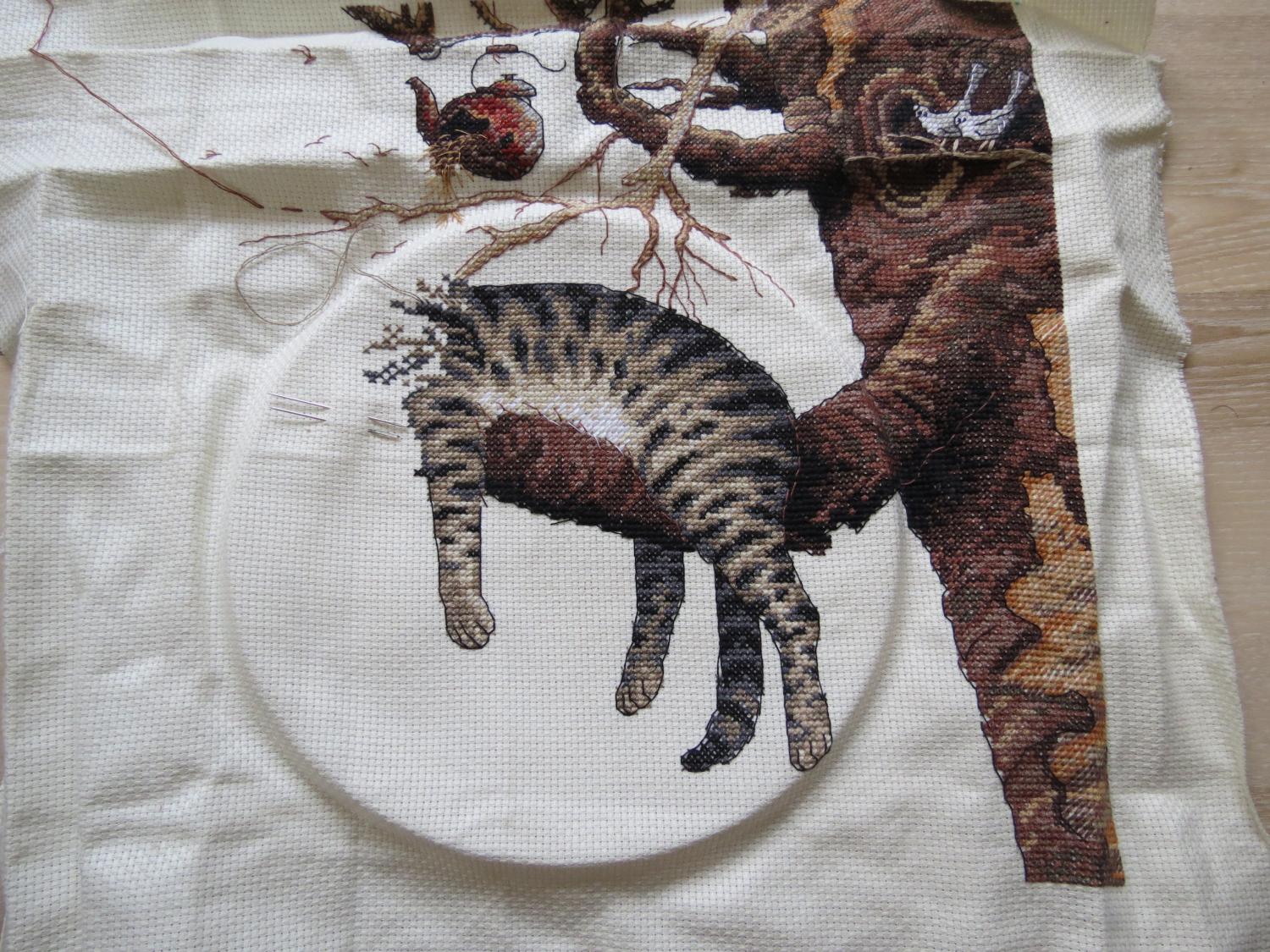 13 октября 2014 Всем привет! Коли уж наобещала, что не позднее понедельника отчитаюсь - надо выполнять. Отпуск непростительно быстро закончился и даже уже почти забылся. Начались трудовые будни, столь ненавистные уроки и прочая рутина, которая оставляет так мало времени на любимое занятие. Но какие-никакие подвижки есть, а значит надо их показать. У Уставшего котика выросла еще одна лапа, полосатая спинка и мягкое пузико. Пока он у меня "Всадник без головы", но уже такой милый! Вышиваю его и поглаживаю. Виноградная феечка пошла на работу. Времени на вышивку здесь у меня почти нету, даже не всякий обед можно посвятить рукоделию, поэтому здесь достижений совсем немного: появилось платьице, чуток подросли кудри, но пока все это великолепие без бэка, а поэтому только угадывается. Ковровая собака занимает мои руки во время процесса подготовки домашних заданий. Дааа, "нелегкая это работа...", не Собака, конечно, а необходимость запихивать в голову ребенка знания, которым она жестоко сопротивляется Зато это очень даже на пользу Собаке, у нее уже появилась морда. Собачина смотрит на меня печальными глазами и, судя по всему, очень сочувствует. Чтобы мое сообщение не показалось совсем уж тоскливым, похвастаюсь подаренным мне очередным ковровым наборчиком. Вот такие милые Снеговички будут "плестись" после Собаки. В них такие яркие, красивые ниточки! Но здесь вложена необработанная по краю сетка, так что все-таки мне придется освоить технологию отделки края. Пока не пугает, а дальше буду решать проблемы по мере возникновения. Татуся, Юла, Meri Poppins и 13 других сказали спасибо Поделиться сообщением Ссылка на сообщение