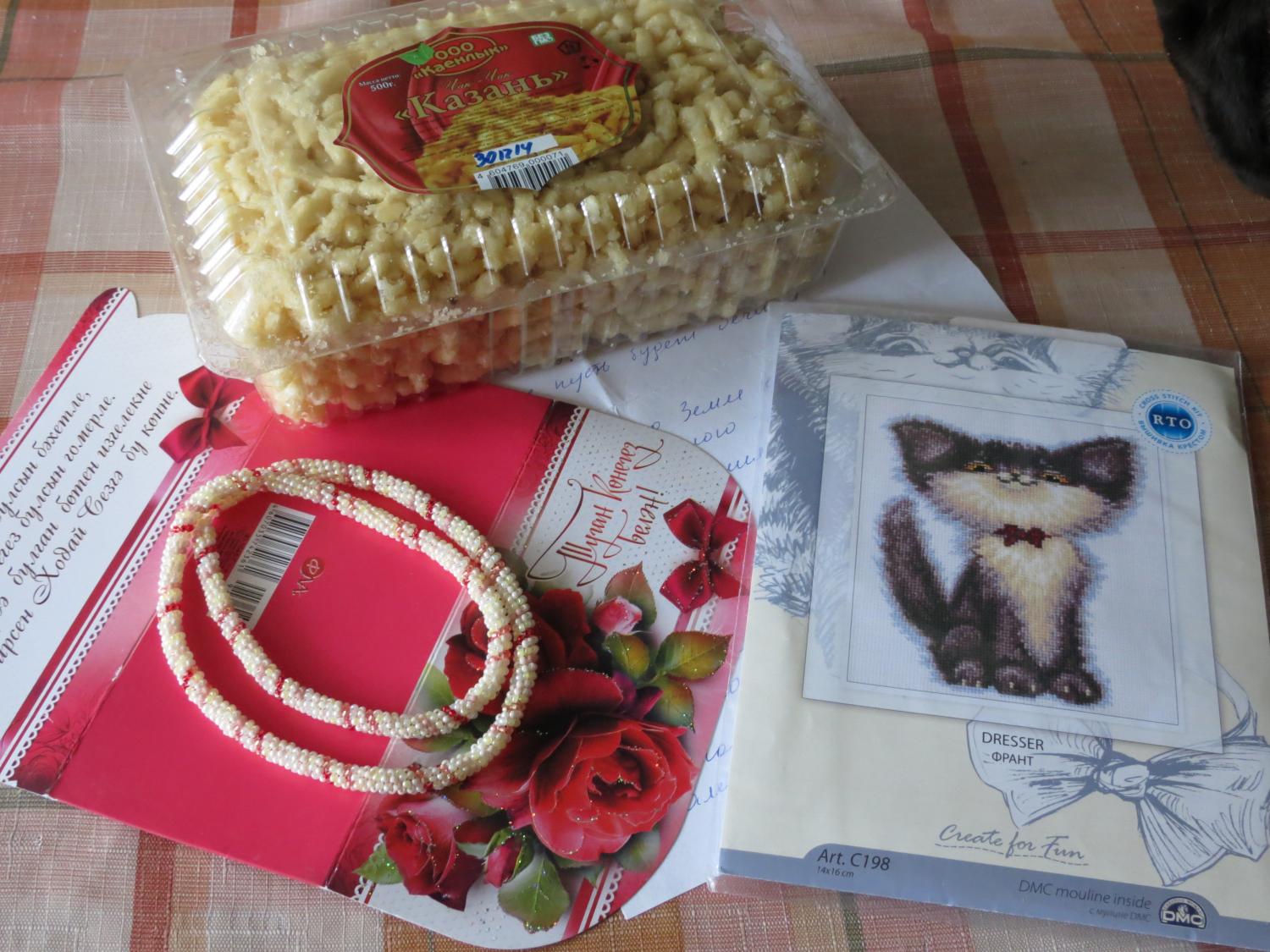 26 января 2015 Дорогие мои девочки, большое-большое-большое вам спасибо за поздравления и удивительно добрые слова и пожелания.Неужели это все про меня и для меня Все поздравления и открытки очень милые и очень красивые, это все, что я так люблю: цветы, кошки и сладости Рассматриваю с большим удовольствием весь день и улыбаюсь Эх, собраться бы нам и угоститься от всей души: А еще у меня случилась нечаянная радость в виде неожиданного и необыкновенно приятного подарка от МарСанны. Это просто чудо: восхитительное бисерное украшение (МарСанна сама делала!)из черного "бархата" у меня оказалась только подушка чудный казанский чак-чак и милый наборчик с котейкой. МарСанночка, спасибо еще и еще много раз, дорогая! А еще у меня есть совершенно волшебный подарок: Женя оплатил мне билеты в Москву, а родители подарили деньги на поездку из Москвы в Питер!Я еду в Питер!!! Случится это чудо в конце апреля - начале мая, так что искренне надеюсь на приятно проведенное время и новые чудесные встречи и общение!!! Nat717, Aries, Пикусёнок и 13 других сказали спасибо Поделиться сообщением Ссылка на сообщение