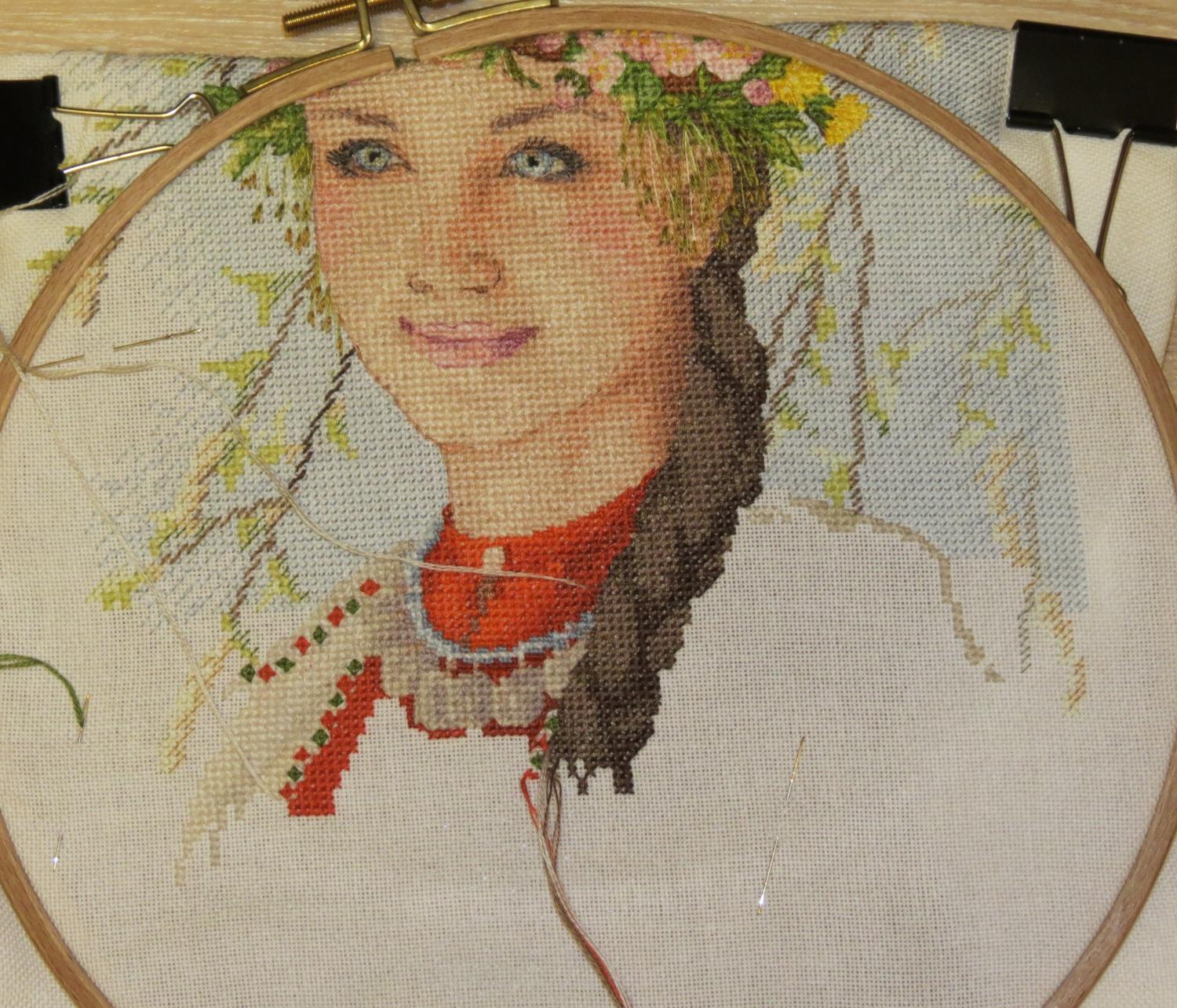 8 февраля 2015 Ну ничего себе, как же долго я здесь не появлялась Мха вроде еще нету, но пыль по углам клубится, пора разгонять За две недели своего отсутствия я успела переболеть, весьма напряженно поработать (из-за чего не было возможности пообщаться с вами с работы) и принять в гости друга, такого же прожженного танкиста как и мой муж. По вечерам все компьютеры в нашем доме были заняты танковыми баталиями и, конечно, мне через это "поле боя" было не прорваться . Ну вот, все устаканилось и я снова с вами Готова показать, что же я натворила и вытворила за это время. Прежде всего, мой основной сейчас процесс - астры. Фотографироваться они по-прежнему не хотят, красавицам положено покапризничать. Верхняя астра почти вся белая - верьте мне на слово, что она почти закончена. С астрами произошла почти детективная история, которая для меня весьма показательна . Когда я готовила комнату к нашествию детей на Дарьин день рождения, то, естественно, все свои драгоценные вышивки и все, что с ними связано убрала подальше от детских глаз-рук-ног и пр. Мой станочек крепится к столу струбцинами, убирая которые я подумала, что надо их положить так, чтобы сразу быстро найти. Угадайте, сколько я их искала после ДР? Правильно... НЕДЕЛЮ! Был объявлен практически всесоюзный-общесемейный розыск, перевернуты все близлежащие шкафы-шкафчики-полочки-тумбочки... В субботу, с психу, я уже купила новые и... конечно, почти сразу мне на глаза попались старые Ну, думаю, все уже поняли, с кем вы имеете дело Во время розыска, чтобы не скучали руки и голова не лопнула от мыслей: "Где же они?!", на свет божий была вытащена заброшенная, но не забытая Весна. Напомню, что было на 30.06.2014: Поскольку я все-таки надеялась прорваться через танковые атаки к компу, то сфотографировала промежуточный этап: И вот, что имеется на сегодняшний день: Когда я победила венок и глаза, то наивно думала, что все самое страшное уже позади, но впереди меня ожидало монисто... чтобы не расслаблялась! Рабочий котик тоже подрос и обзавелся сначала полосатой тушкой: А затем и нежными розовыми цветуечками и бодренькими зелеными листиками: Вроде кажется, что вышито совсем немного, но фактически это почти 1500 крестиков Наверное, неплохо для рабочего процесса. Как я уже упоминала, в основные планы должны были вклиниться пара подарочных небольших работ. Одна из них. У любимой коллеги-приятельницы 22 января родилась вторая доченька, по этому поводу были вышиты в подарок такие тапули-лапули. Сплошной поток умиления в результате и насмерть исколотые руки в процессе. Шить пришлось в два прокола, так как башмачки уже полностью готовые и конструкция довольно жесткая. Весь мой подарочек выглядел так (открытка, в ожидании события, была куплена еще во Вьетнаме) На этом вышивальная часть моего обширного повествования завершена, перехожу к приятностям и красивостям невышивального характера. Дарья Евгеньевна принесла очередную работу. Роспись витражными красками по стеклу. Фея Осени с Птицей. Художница своей работой категорически недовольна, а мне это творение понравилось. Так что теперь эта красота украшает полочку у меня возле кровати. И, для релакса, очередные "тяжелые" трудовые будни Тихона Дорофеевича. Каори, Whiskers, Анютка-незабудка и 29 других сказали спасибо Поделиться сообщением Ссылка на сообщение