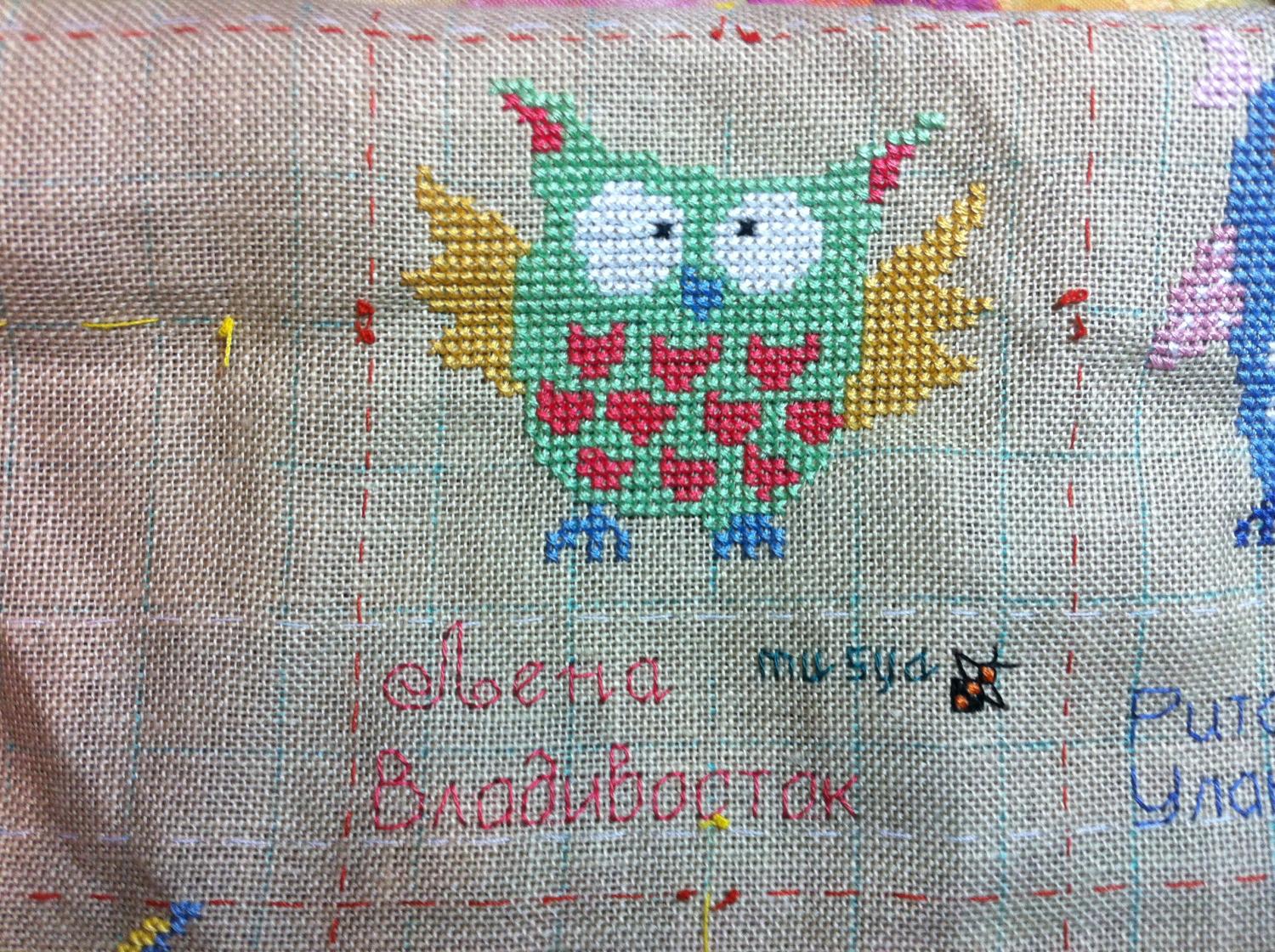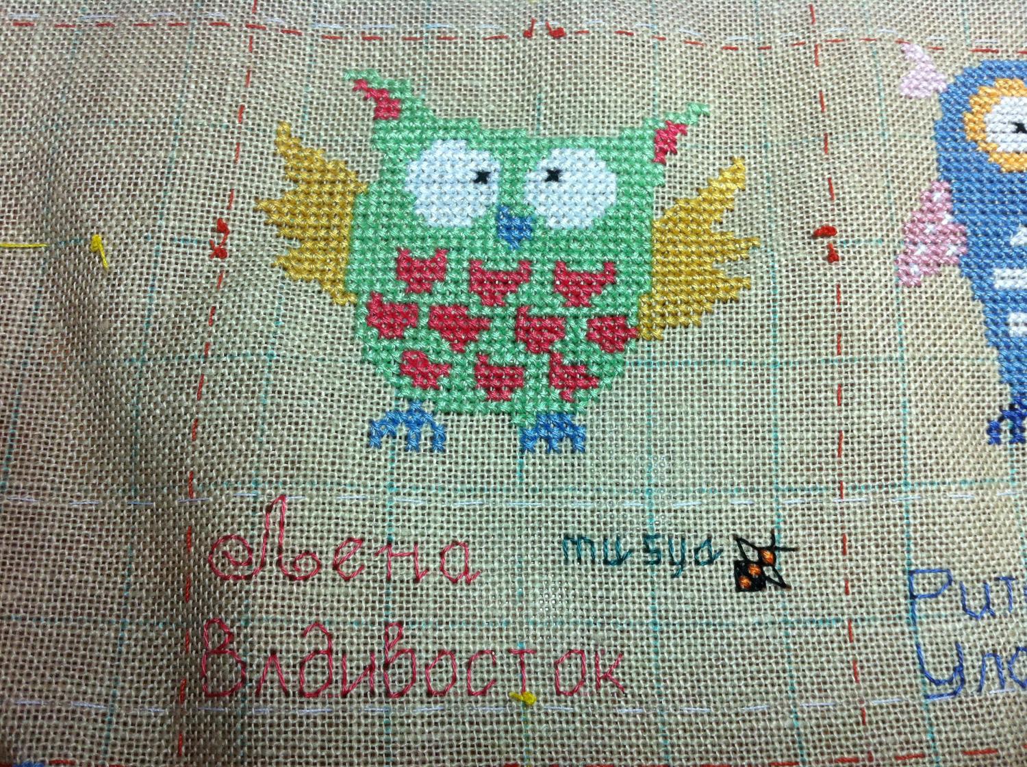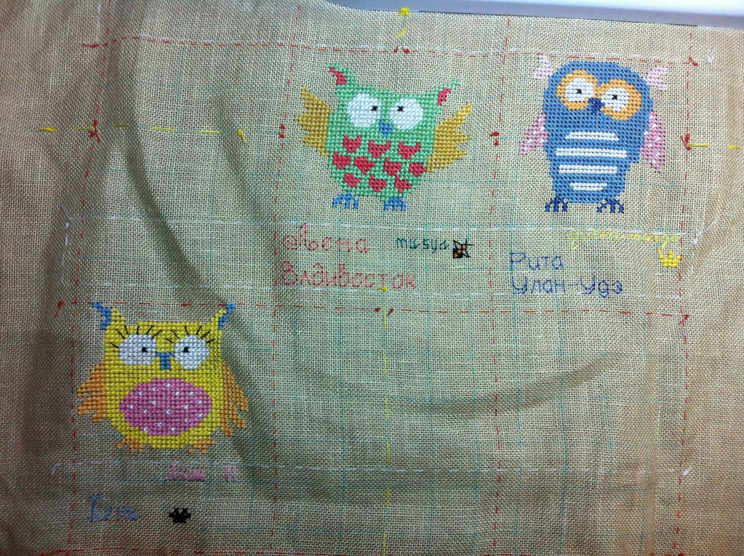 16 июня 2014 Девочки, мы с Машей дошили совушек. Маша сегодня доделала свою подпись и ускакала к подружке с ночевкой, поэтому отпишусь и за нее. Моя сова: Машина: И все три совы вместе: Рита, у меня возник вопрос. Так как Маша полностью сама занималась своей подписью (что-то рисовала, чертила, искала в инете шрифты), и сама потом воплощала ее на вышивке, то у нее получилось немного корявенько. Когда я присмотрелась, то поняла, что она не совсем правильно рассчитала ширину букв и расстояние между ними, видимо запуталась в равномерке. И подпись получилась как бы зауженная. И все это я увидела, только когда она уже уехала. Если это переделывать, то она сможет только завтра вечером (днем у нее практика и репетиция). А отправить посылку я смогу тогда только в среду, т.к. на почте во вторник у нас выходной. Или уже оставить так как есть? Мне нравится - девочки, здОрово!! \Лена - только в твоей надписи буква пропущена?? или так задумано? \ Поделиться сообщением Ссылка на сообщение