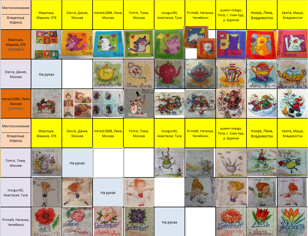 26 июня 2015 Девочки, привет! Совсем я форум позабыла Дипломную работу в Курске защитила, все хорошо) Сейчас в Питере с гостями, показываю-рассказываю, совсем времени ни на что не остается( Но я на связи, если что! Итак, по порядку. - Снеговичков дошивала в поезде, отправила, уже получены, как я поняла) Процесс очень понравился, ниточки яркие, сюжетик позитивный! И чего там только не было: крест, полукрест, фрузелки, шов петелькой (не знаю, как правильно называется), бэк. Ух, не соскучишься)) - Свой робин я получила, моему счастью нет предела) Стоооооолько всяких приятных нужностей и нужных приятностей!!! Каждый пакетик разворачивала трясущимися руками, и хлопала в ладошки)) Спасибо, девочки, большое-прибольшое!! Даже было пару рукоделочек Ну и сами мои котейки выше всяких похвал! Нужно скорее их дошить и оформить) Фоточки такие, пока все девочки не получили свои посылочки. - Мой должок - чайнички! Данечка, прости, пожалуйста, что заставляю тебя волноваться, я вот-вот уже закончу и сразу же все отправлю. Очень мало времени сейчас на любимое занятие Пикусёнок, musya, queen-margo и 3 других сказали спасибо Поделиться сообщением Ссылка на сообщение