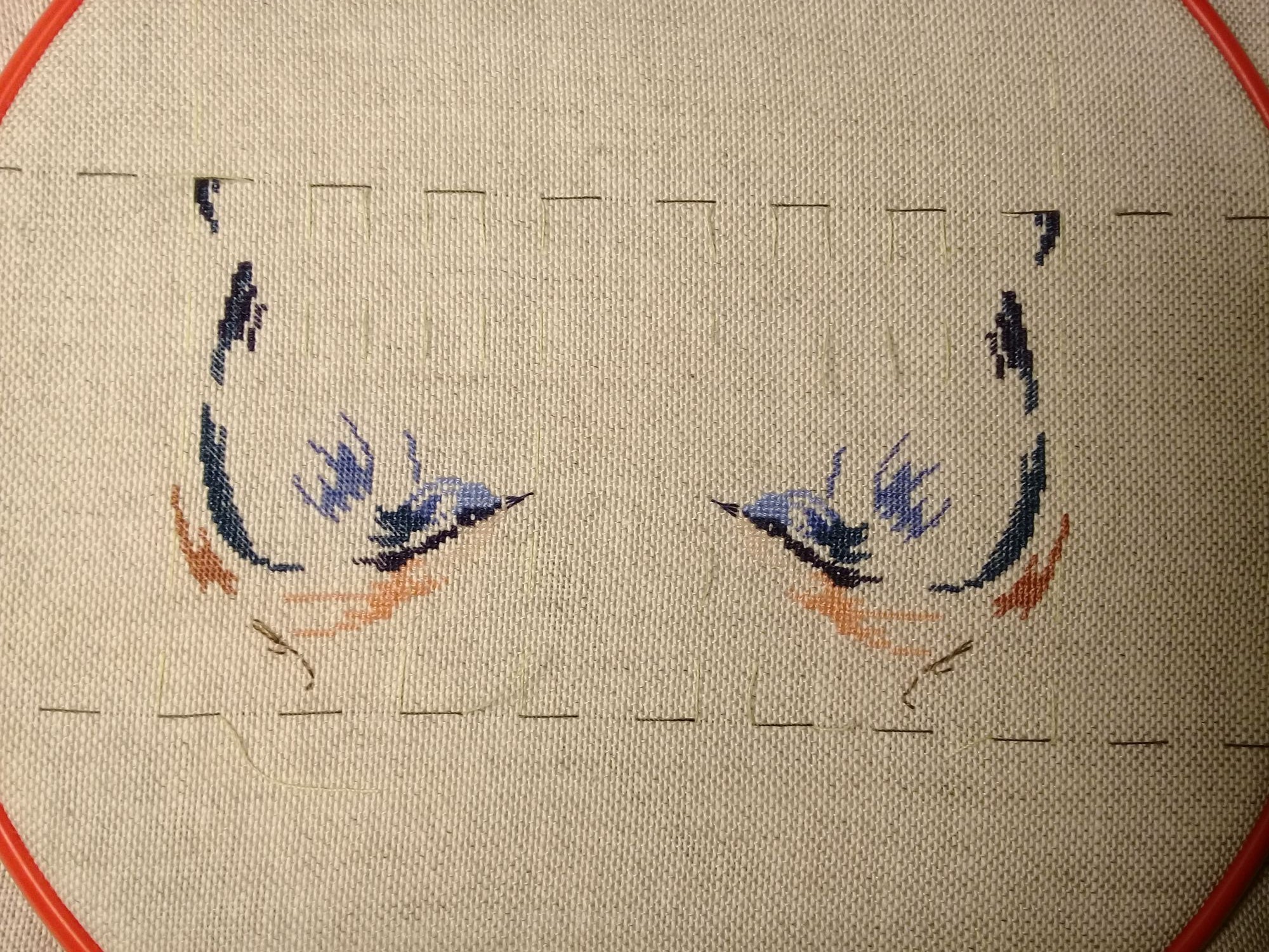 4 ноября 2018 Доброго всем праздничного утра! Вышивать (по крайней мере в первой половине дня) мне сегодня некомфортно, праздник большой все таки, а вот писать не возбраняется. А потому решила я вам сегодня принести "последствия" моего посещения мастер класса. Затягивают эти сюжеты изящностью и быстротой исполнения. Вот над чем маялась в прошлые выходные. Взяла за основу очередную схемку Marie-Therese Saint-Aubin с птичкой Sittelle Torchepot (поползень не поняла какой) . В принципе не знаю как насчет цветопередачи (картинка с инета) выглядеть должен был так. Нитки взяла по ключу, и решила что вышью пару пташек в зеркальном отражении. Вот что получилось показалось, что если убрать разметку будет пустовато. начала искать подходящую подпись, ну и в принципе просто обозначила кто это и где это... Целый день убила на то чтобы решить где и каким цветом сделать надпись: утяжелить низ и взять что-то из коричневатых оттенков или заполнить пустоту вверху серо-голубыми оттенками. Так как места и вверху и внизу было не совсем достаточно, победил верх. Оттенок надписи из светло серого при дневном освещении переходит в достаточно темный серый с намеком на отлив в какой то синевато-фиолетовый оттенок при искусственном освещении. В принципе за такую свою неоднозначность и был выбран. Вот что получилось в итоге не знаю где цветопередача лучше (лучше конечно такие вещи в живую разглядывать) На этом дурная голова не успокоилась, посетив в пятницу багетку (ну согласитесь, чего тряпочки то собирать?) будет законченный вид можно и презентовать кому-нибудь. Выбирая по принципу дешево недорого и сердито поколдовали с вариантами. (Сразу извиняюсь за качество слабенькая камера +плохое освещение, но смысл понятен) Вот такие варианты рассматривались для красногрудки остановились на тонком пластике с двойным паспарту-второе фото низ и вот такие для поползней тут правда тонкая деревяшка верх серо-голубая неоднородная низ розовато-коричневая с примесью голубого (слишком много розового несмотря на яркие брюшки) да и цветопередача тут ушла в розовый. Вот это фото больше похоже на правду, конечный вариант В планах полноценный сюжет, но сначала закончу то, что у меня в работе, тем более что за уверенную половину уже ушла, но отвлеклась на миниатюрки... nogres, Oksana7, lenning и 4 других сказали спасибо Поделиться сообщением Ссылка на сообщение