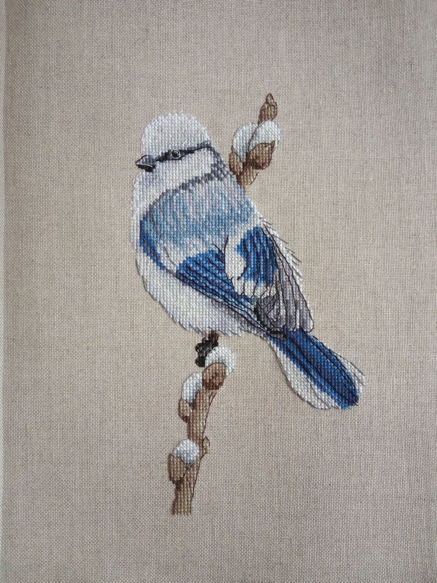 2 апреля 2020 Доброго времени суток! Внеплановые преждевременные каникулы, больничный, подготовка к работе на удаленке ... и о чудо! появилось время на вышивку). Устав от цветов а ля "вырви глаз" в розочке набрела ненароком на бесплатную схему Лазоревки от Евгении Колесниковой. Симпатичная птичка, неброские цвета, а главное большая их часть дублируется в лошадке от КК. Быстренько докупив необходимые (буквально за несколько дней до поголовного закрытия ТЦ) приступила к выбору основы. Выбирала между молочной Аидой 18 ct-в реальности слишком желтая Линдой ... не люблю белый цвет и каунт великоват и равномеркой Ubelhor Лейнен цвет 7100, 30 ct и хоть рекомендован был 16 каунт на ней и остановилась. И это еще не попались мне остатки от канвы голубой лошадиной))) Были правда сомнения, что веточка сольется, но в надежде на бэк всемогущий начала работу. И потом в приоритете птах Процесс пошел достаточно шустро и интересно есть пока еще сомнения, но вроде нежненько.. появилась уверенность, что пташечка не останется незамеченной прошлась немного бэком, нарастила тушку, оставив мордашку "на сладкое" появилась грудка, смотрите какая пёстренькая! А вот и практически готовый птах Сегодня с утреца делала ему макияж и оставшуюся шишечку вербы Довольна как слон, красивый результат, правда глазик потребовал предельной аккуратности... ну как смогла) шила бисерной иглой. PS. если опять что-то задвоится не добавляйте дубли в процесс пожалуйста, а то в предыдущем процессе так и висят 2 дубля... ОльгаТольна, irinka-mandarinka, Oksana7 и 7 других сказали спасибо Поделиться сообщением Ссылка на сообщение