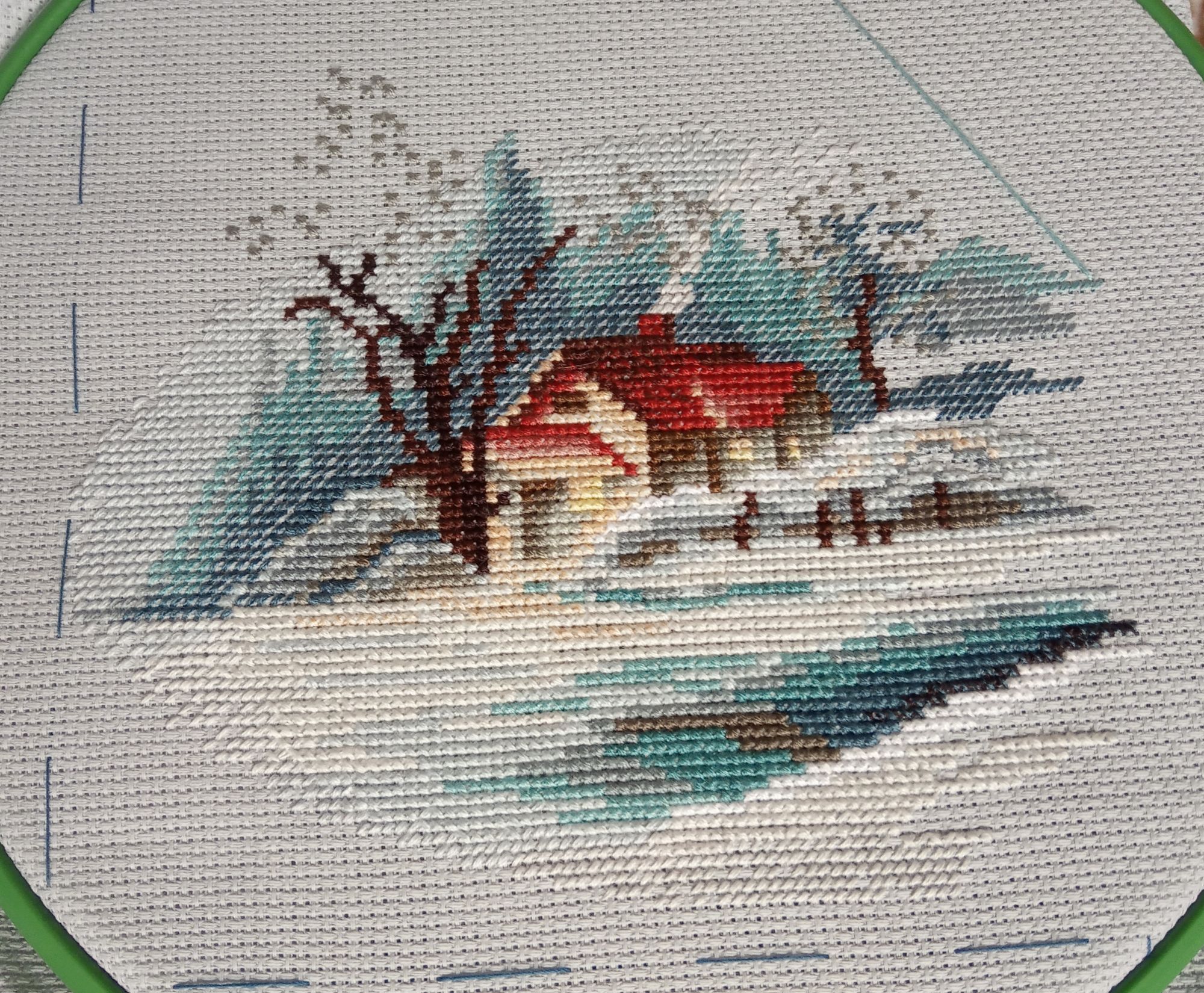 13 марта 2022 Доброго всем вечера. Продвигаю пейзаж потихоньку. Нарисовала первый бэк и домик приобрел четкость. Фото при естественном освещении Дорисовала плетень, подпираю границы пялец, искусственное освещение. Ну и наконец то сдвинула пяльцы, пытаюсь переползти за границу первого листа Вверху при заполнении фона бледно голубым полукрестом заметила, что нитки стали ярче. Спутать не с чем, выгореть первые отшитые участки пока не могли. Было желание распороть, но горячиться не стала, там сейчас пойдет вкрапление других цветов одиночками, а- ля оставшаяся засохшая листва, а потом бэк веточками и думаю вертикальная граница уйдет 19199707770, solnishko-ym, Путешественница и 2 других сказали спасибо Поделиться сообщением Ссылка на сообщение