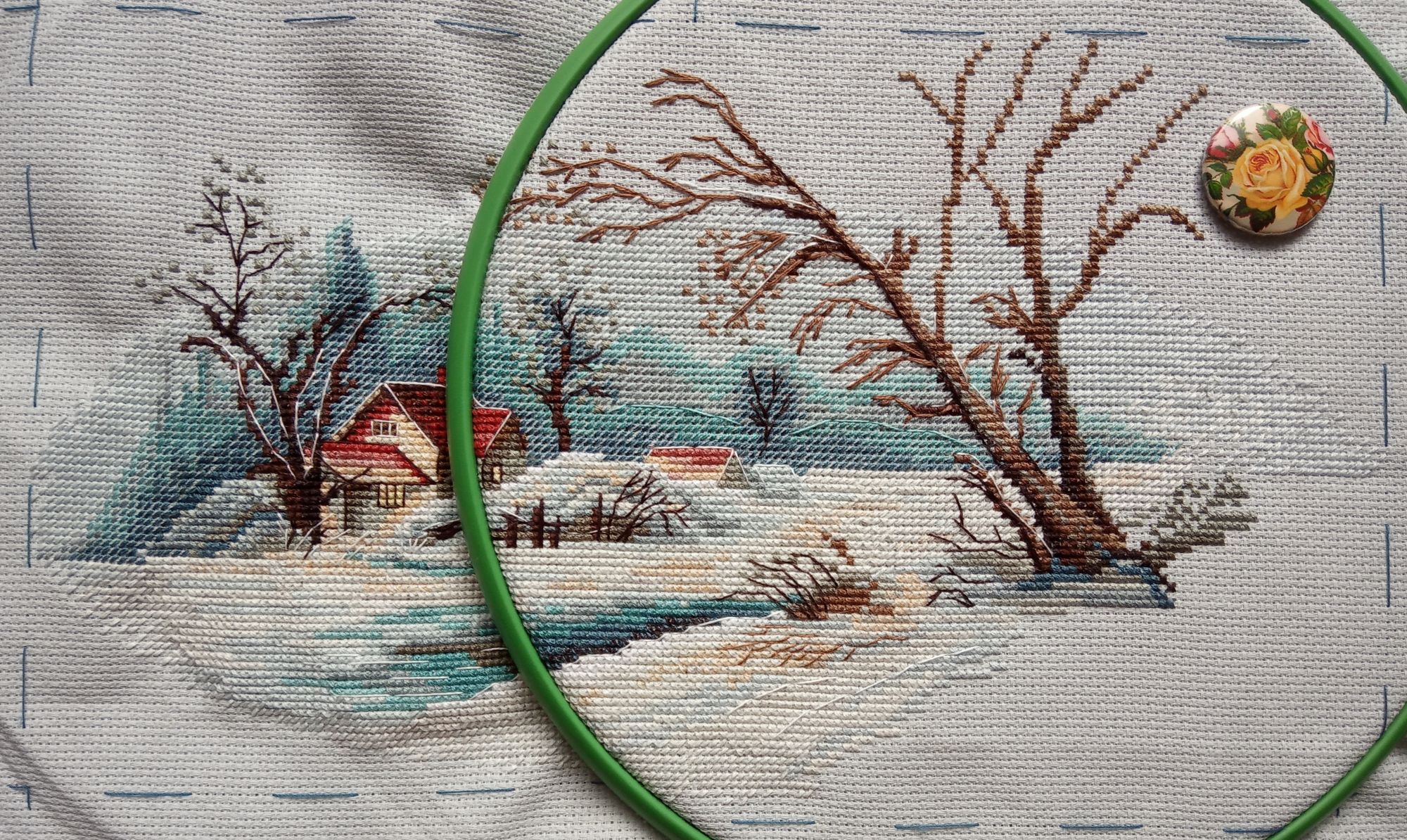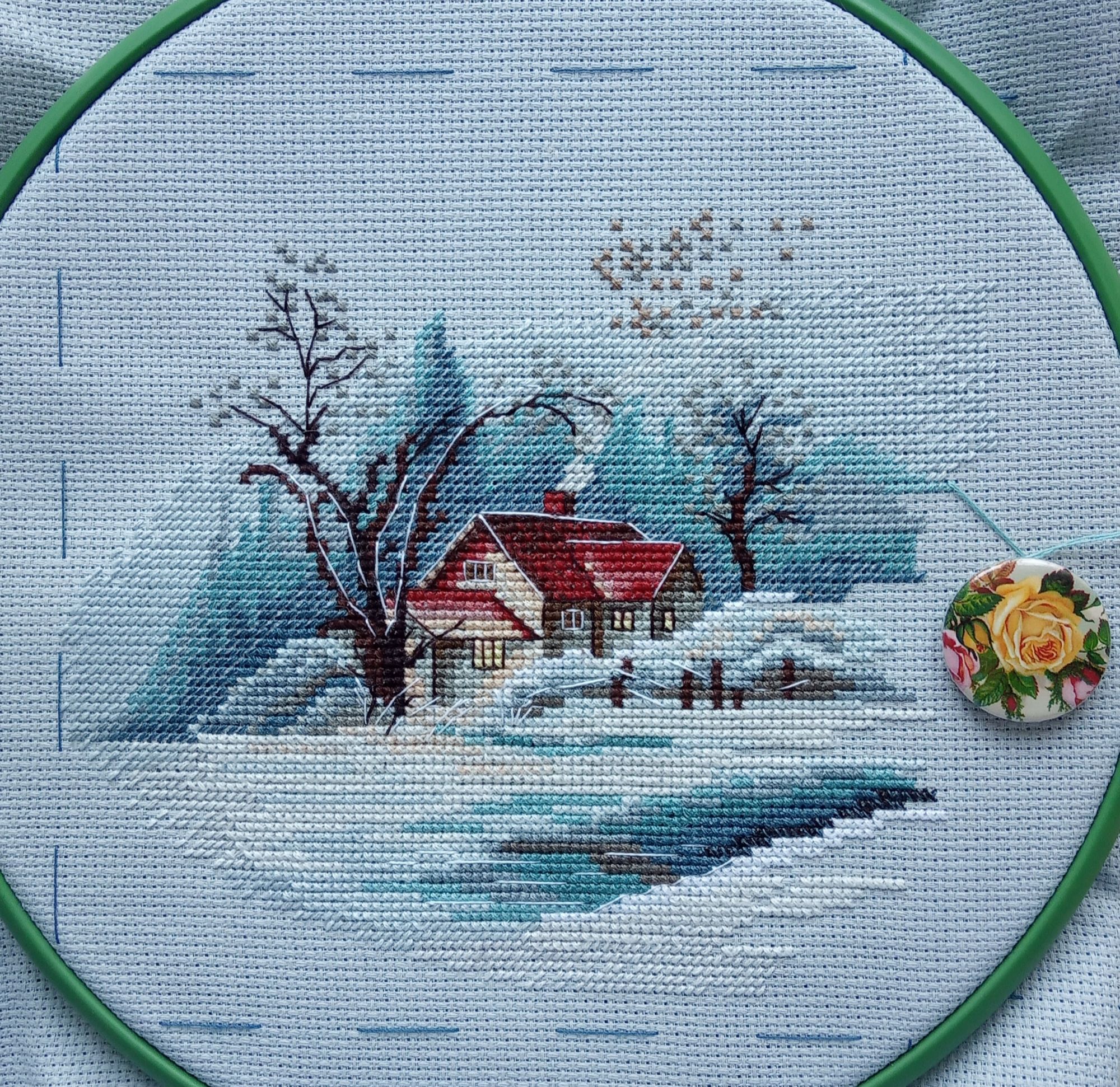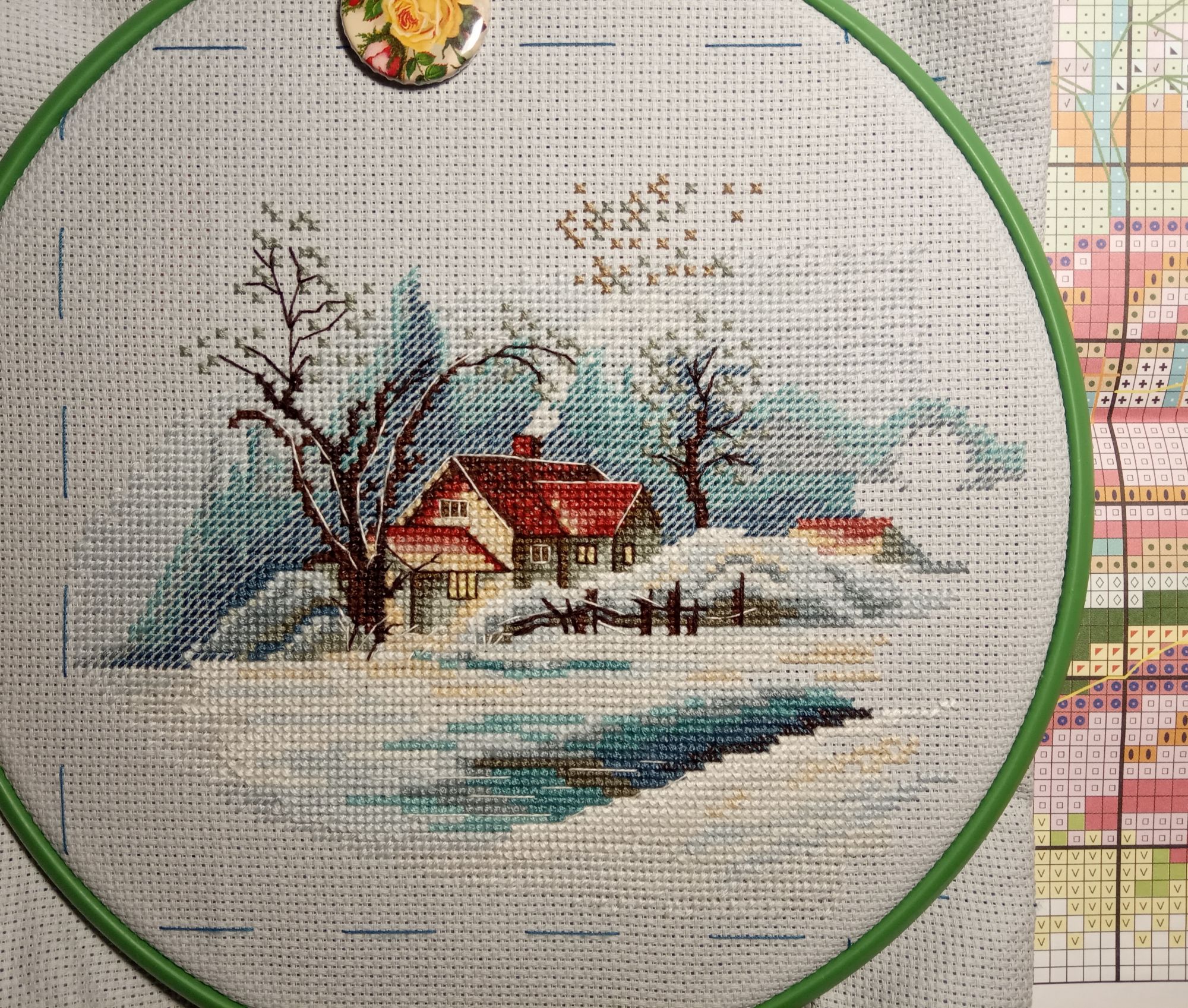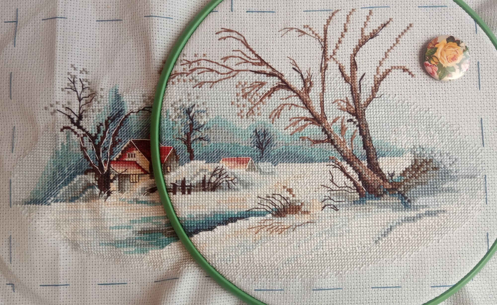 14 апреля 2022 Доброго времени суток! Что то я как то потерялась)), но у меня есть уважительная причина- жизнь бьёт ключом, причем в хорошем смысле, как это ни странно Но сначала о вышивальном. Пейзаж мой продвигается потихоньку. Начала рисовать дерево, добавила веточек Осталось совсем немного крестиков и небольшой вагончик бэка))) Казалось бы уже пора дошить, но я сбилась с курса, увидев в одном из интернет магазинов новинку от Нова Слобода "Первый иней". Немного посомневавшись и сравнив цены, заказала и уже в весенние каникулы надкусила. Распаковала набор, как только принесла домой. Смутила упаковка- прозрачный ЗИП пакет, который можно открыть и без проблем закрыть обратно, поэтому содержимое подверглось тщательному досмотру. Тем не менее вроде всё норм на первый взгляд По впечатлениям от самого процесса- тяжеловато, много темных цветов коричневые, коричневато- серые, коричневато- зелёные, ниточки тоненькие, очень играют на свету меняя оттенки. Правда порадовала абсолютно одинаковая длина нарезки, при составлении блендов, а их достаточно, никаких излишков не срезается. И конечно первые стежки сделаны, но вот как то оттенки на двух фото отличаются, не пойму, что точнее (вышито одинаковое количество, в процесс возьмите первое) Из невышивального сынок собрался жениться, осталось всего ничего. Пытаюсь скоренько закончить домик, может оформят мне его из наличия, хотя наверное уже не успею, значит преподнесу чуть позже с намеком на скорое решение жилищного вопроса) Путешественница, Egelia, Palex и 5 других сказали спасибо Поделиться сообщением Ссылка на сообщение