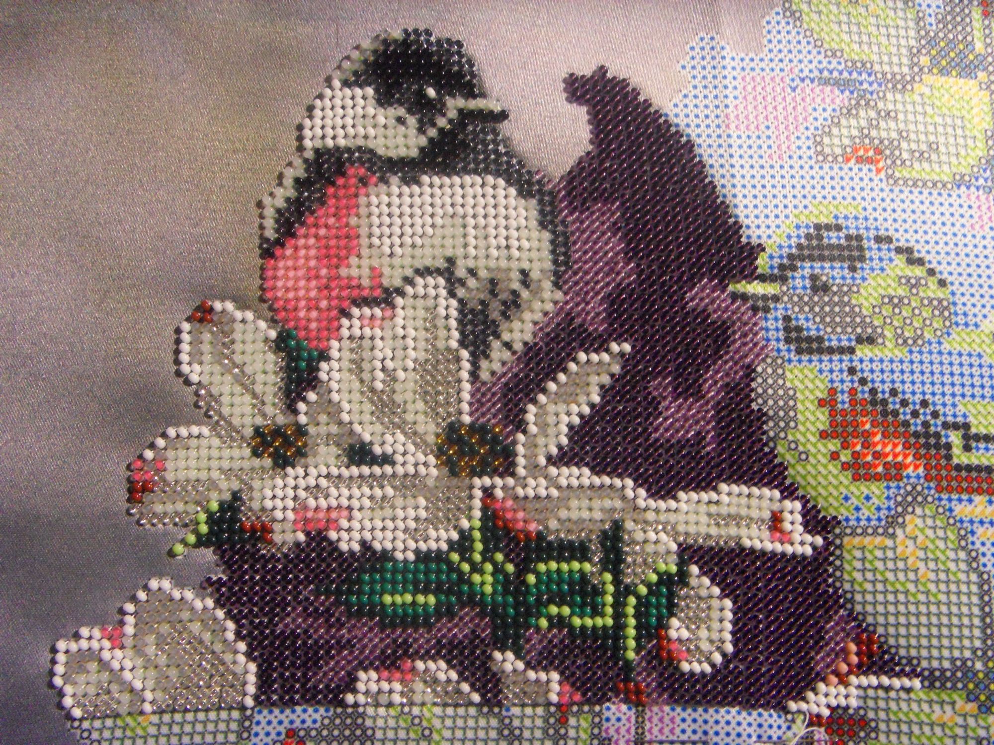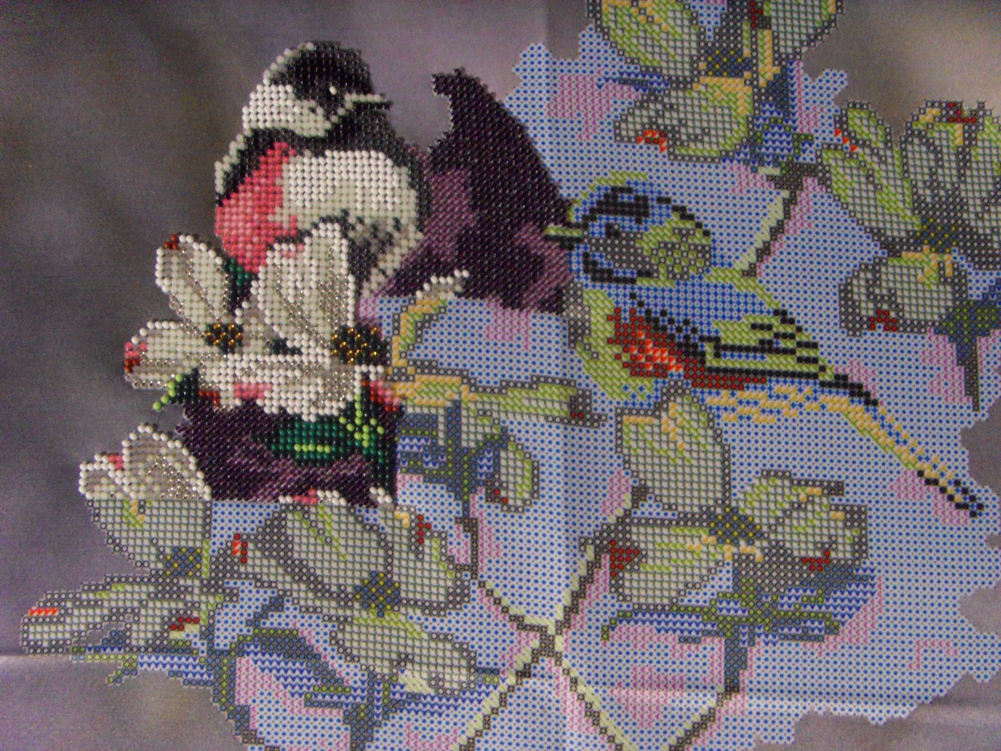 20 декабря 2015 Неожиданно, но дошился в этом году многострадальный котик. Не самая легкая работа, но результат обалденный. осталось еще приодеть цивильно. Кроме того, как-то между делом захотелось повозиться с бисером. Приобрела рисунок на ткани от фирмы "Вышиваем бисером" (птички-цветочки моя слабость) укомплектовала бисером, разумеется взяло любопытство что это такое будет. Правда фон кажется темноватым, но скорее всего оставлю как есть, разве что рамкой потом высветлить можно будет solnishko-ym, marysolga и Nadinka-Blondinka сказали спасибо Поделиться сообщением Ссылка на сообщение