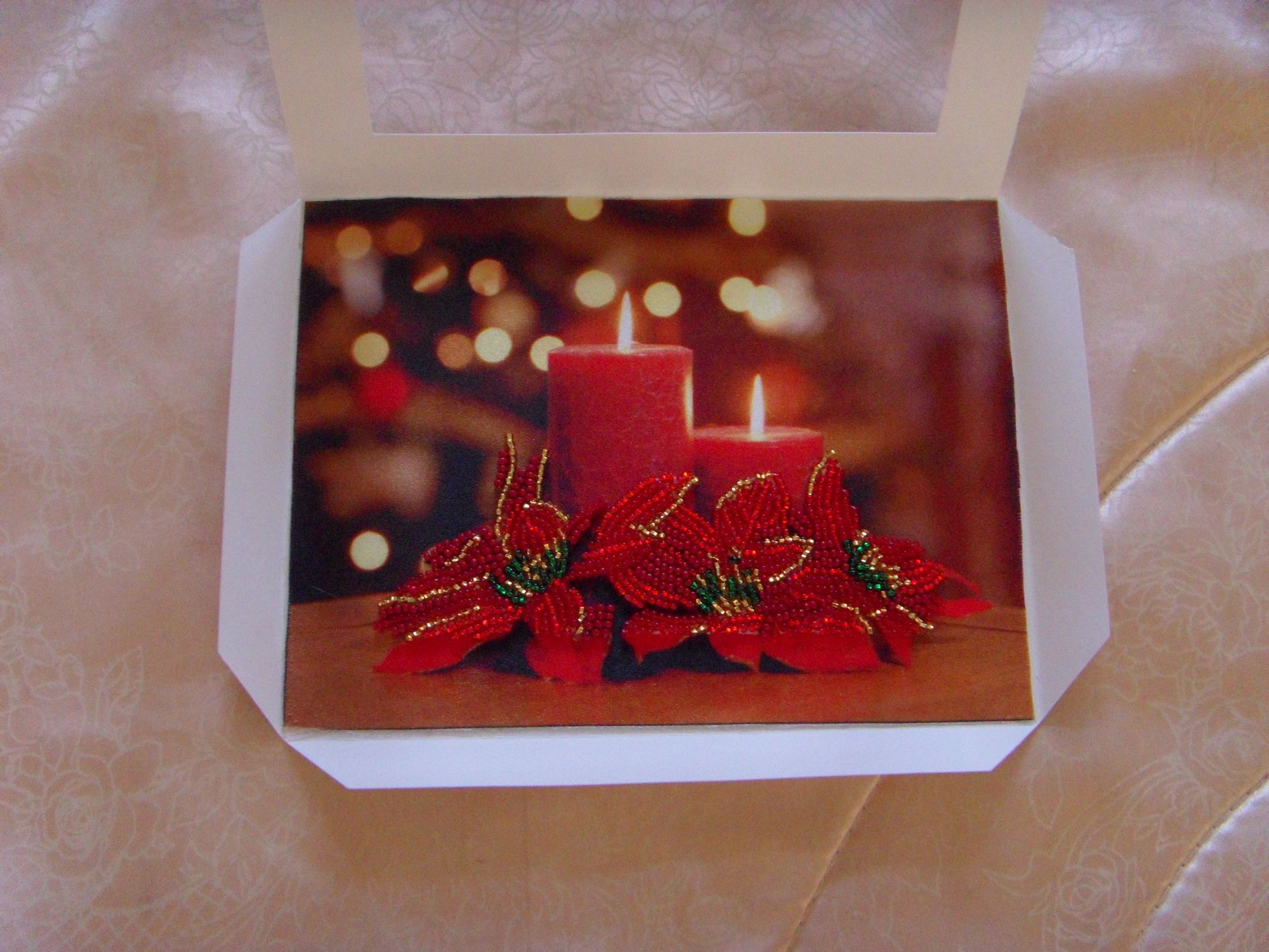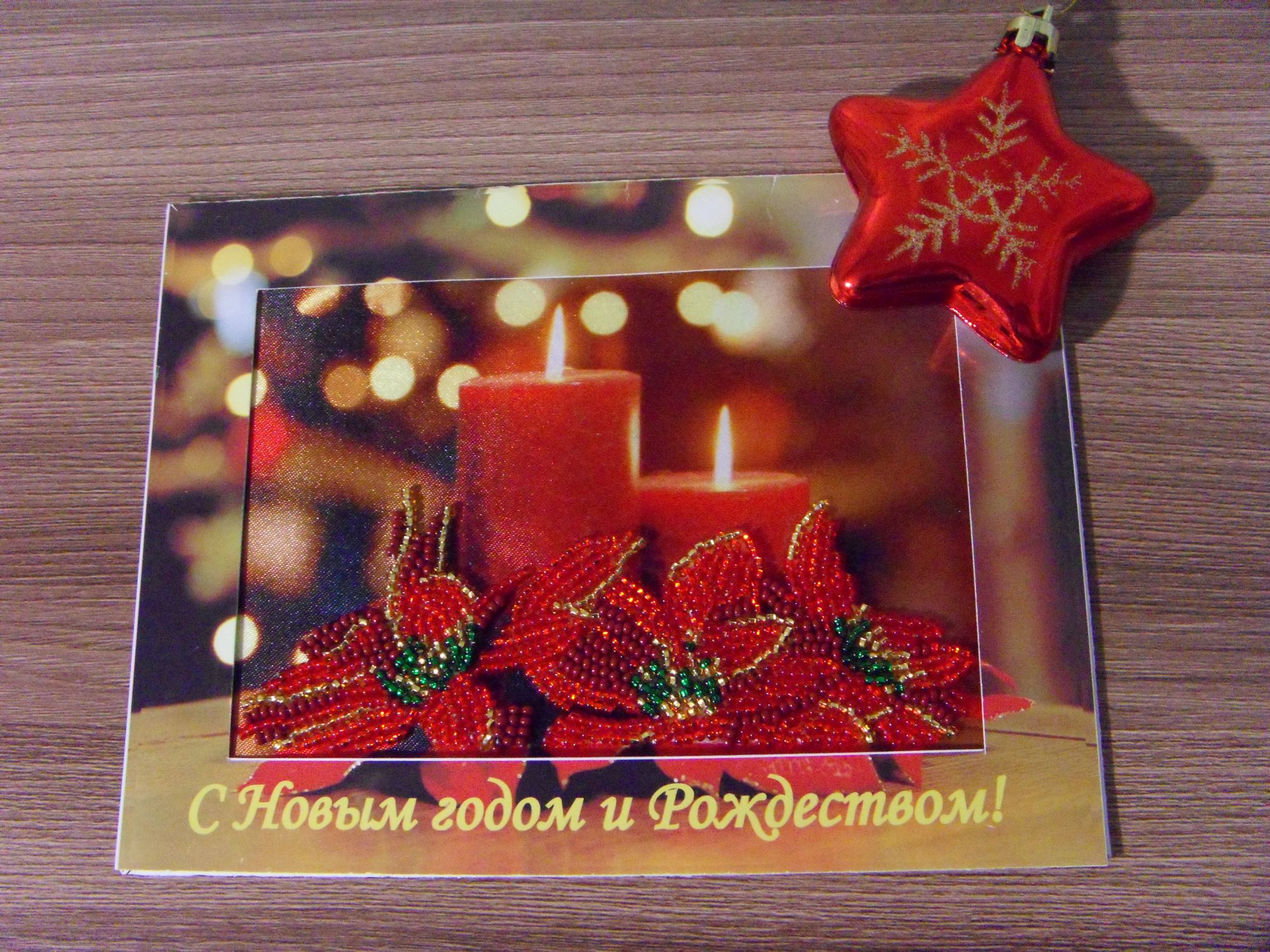 2 января 2016 Всем привет! Девочки, поздравляю всех с Новым годом! Пусть обезьянка принесет в ваш дом уют и благополучие, щедро наградив обитающих в нем здоровьем и творческим энтузиазмом. Желаю вам удачи, достатка, мира и семейного тепла! С праздником! Ну а я в предновогоднюю неделю развлекалась созданием открытки от фирмы Butterfly. арт 703 "Новогодние свечи". Отличная комплектация, превосходный результат. Ткань укреплена флизелином. По мне единственный недостаток - значки. Когда рядом отсвечивает бисер разобрать красный на ткани кружочек или оранжевый требовало усилий. А цвета бисера этим значком отмечены принципиально разные - красный матовый и золотой. В общем, поворчала немного в процессе отшива. Зато сама открытка сложилась без проблем. Клеем пользоваться не стала, использовала тонкий двусторонний скотч. irinka-mandarinka, M@rgarita и Веселинка сказали спасибо Поделиться сообщением Ссылка на сообщение
