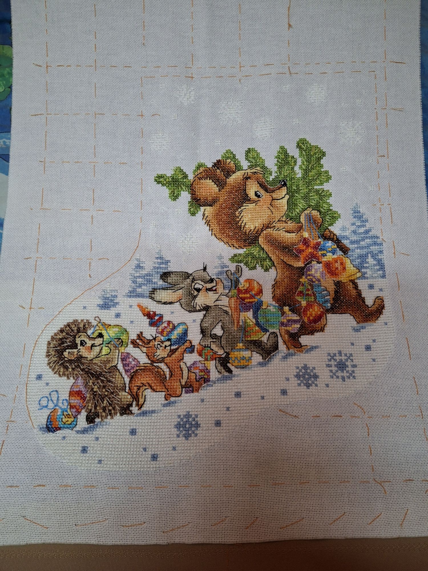 11 октября Начала новый процесс Носок новогоднийот Немшиловой по мотивам рисунка В.И.Зарубина. Снова Линда 27. Нитки ДМС по ключу 61 цвет. В этот раз шью через 2 нити переплетения. Размер схемы133х151 крестиков (24х27см) Раньше не заморачивалась, теперь после ростомера уже пунктик. Разметила квадратами по 20 крестиков Всего поле 140х160крестиков. Сейчас это 26х30см, но посмотрим как сядет после стирки. Будет как-то так Пока вот так nogres сказал(а) спасибо Поделиться сообщением Ссылка на сообщение